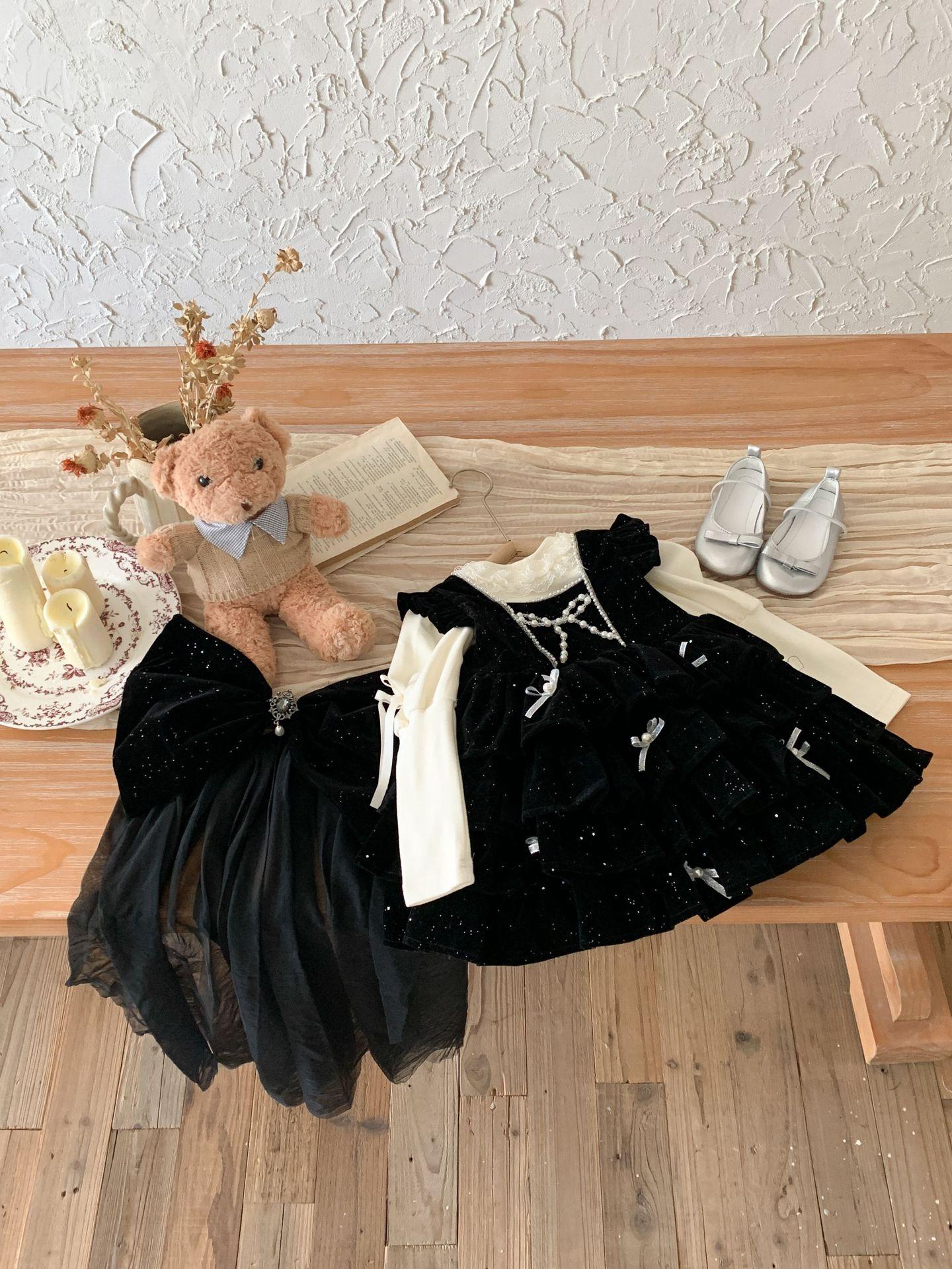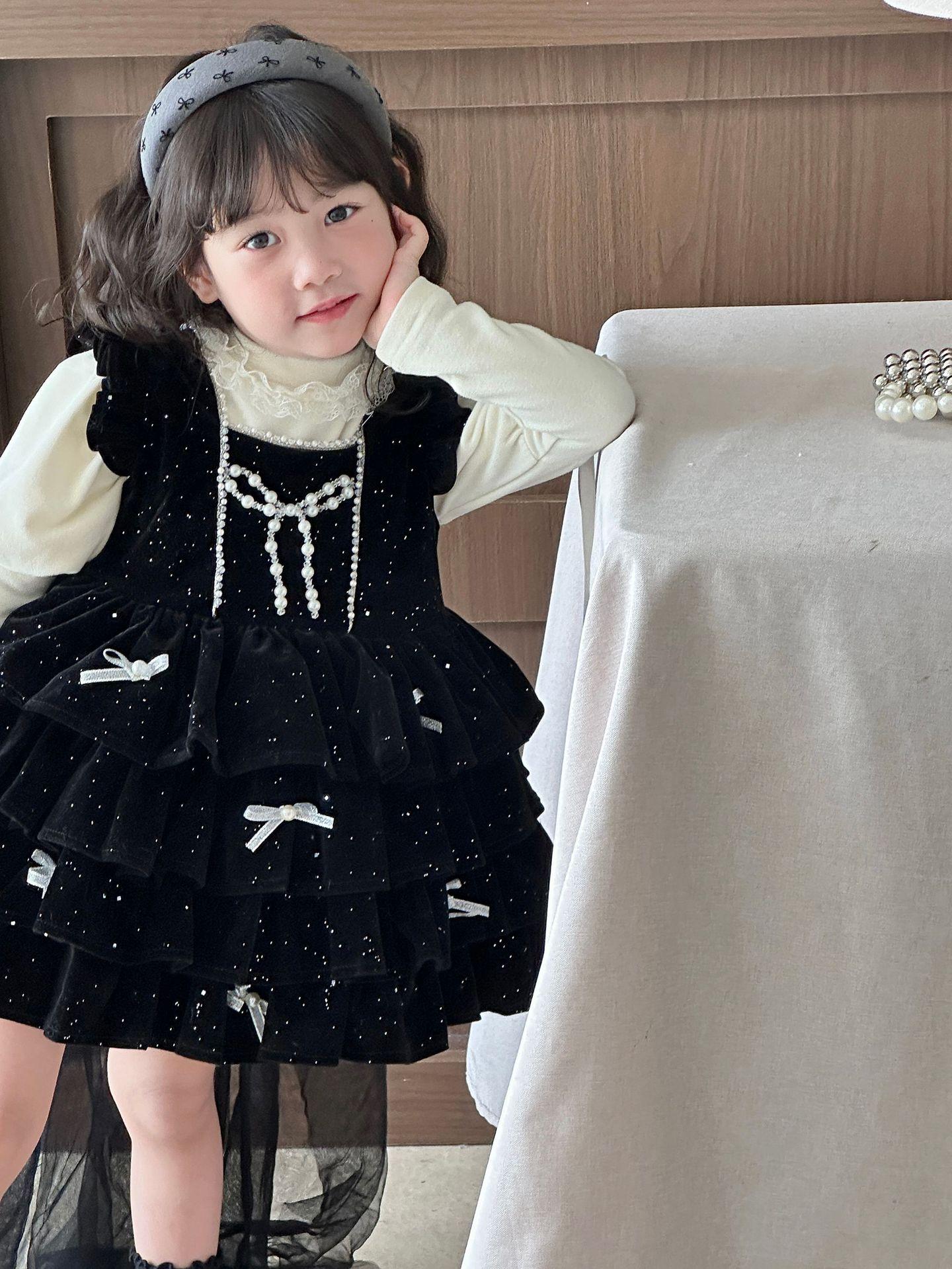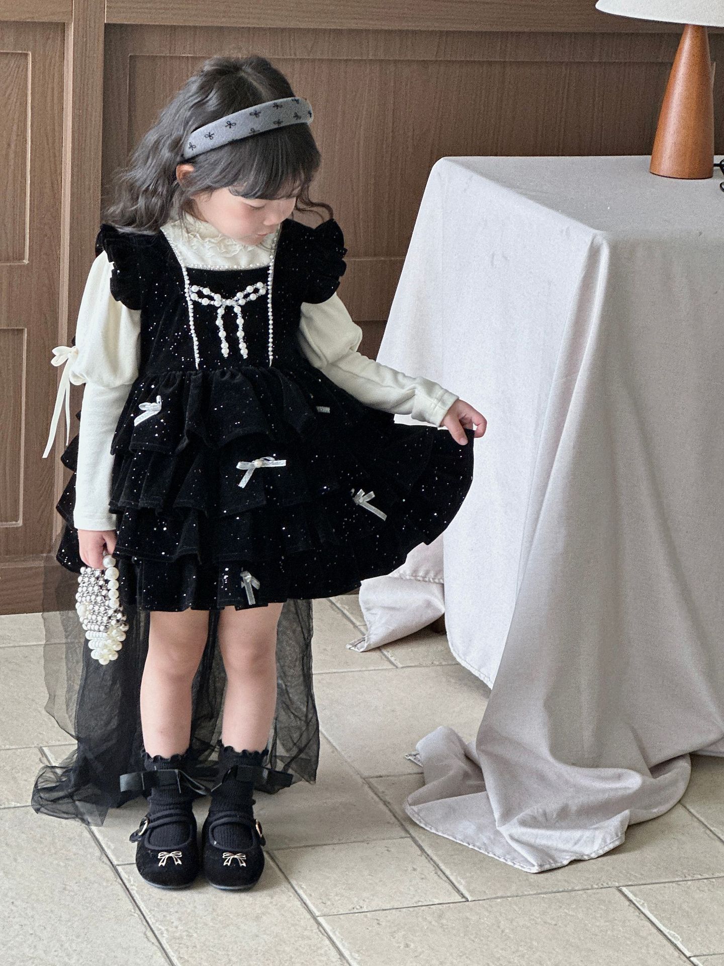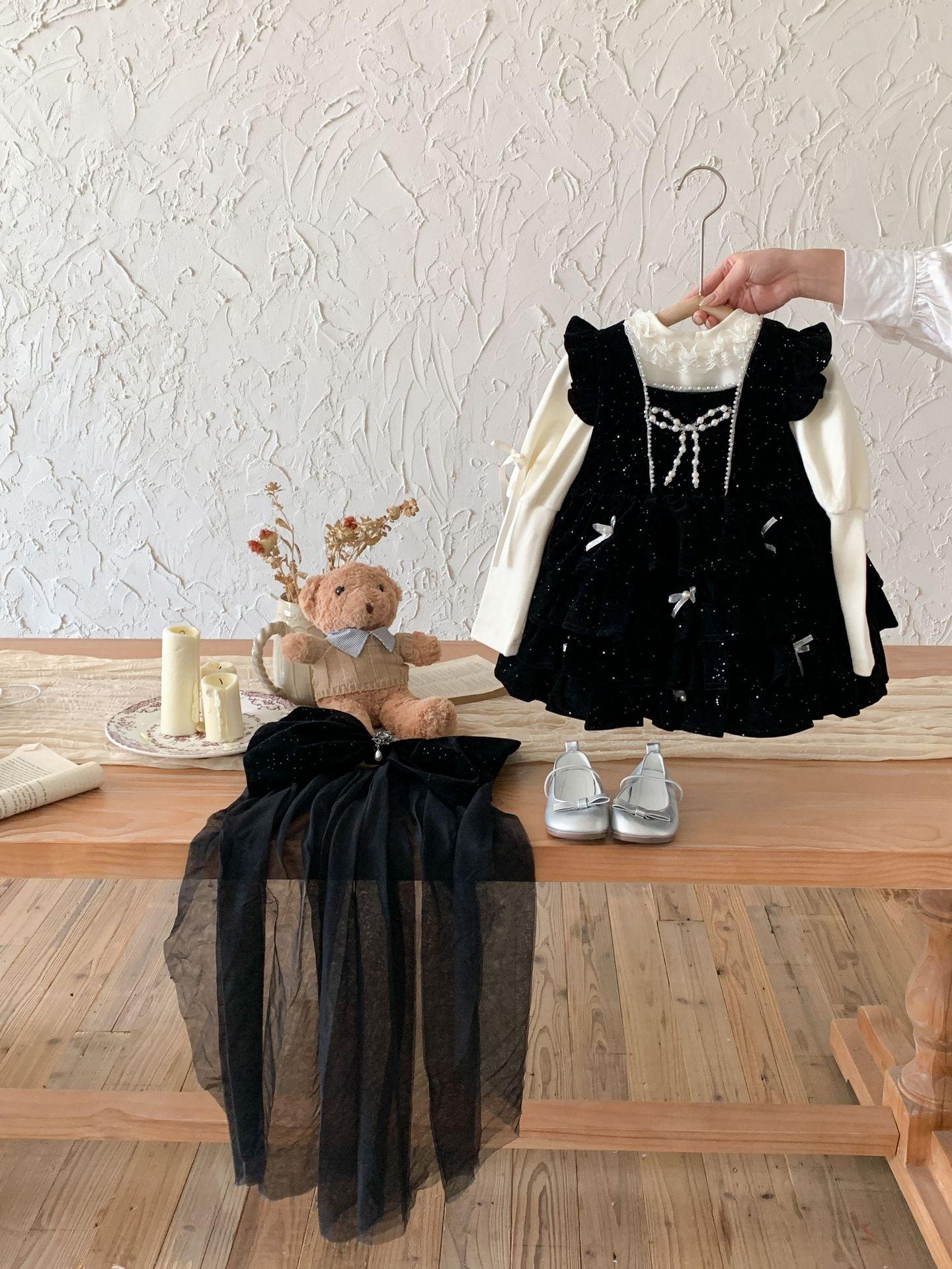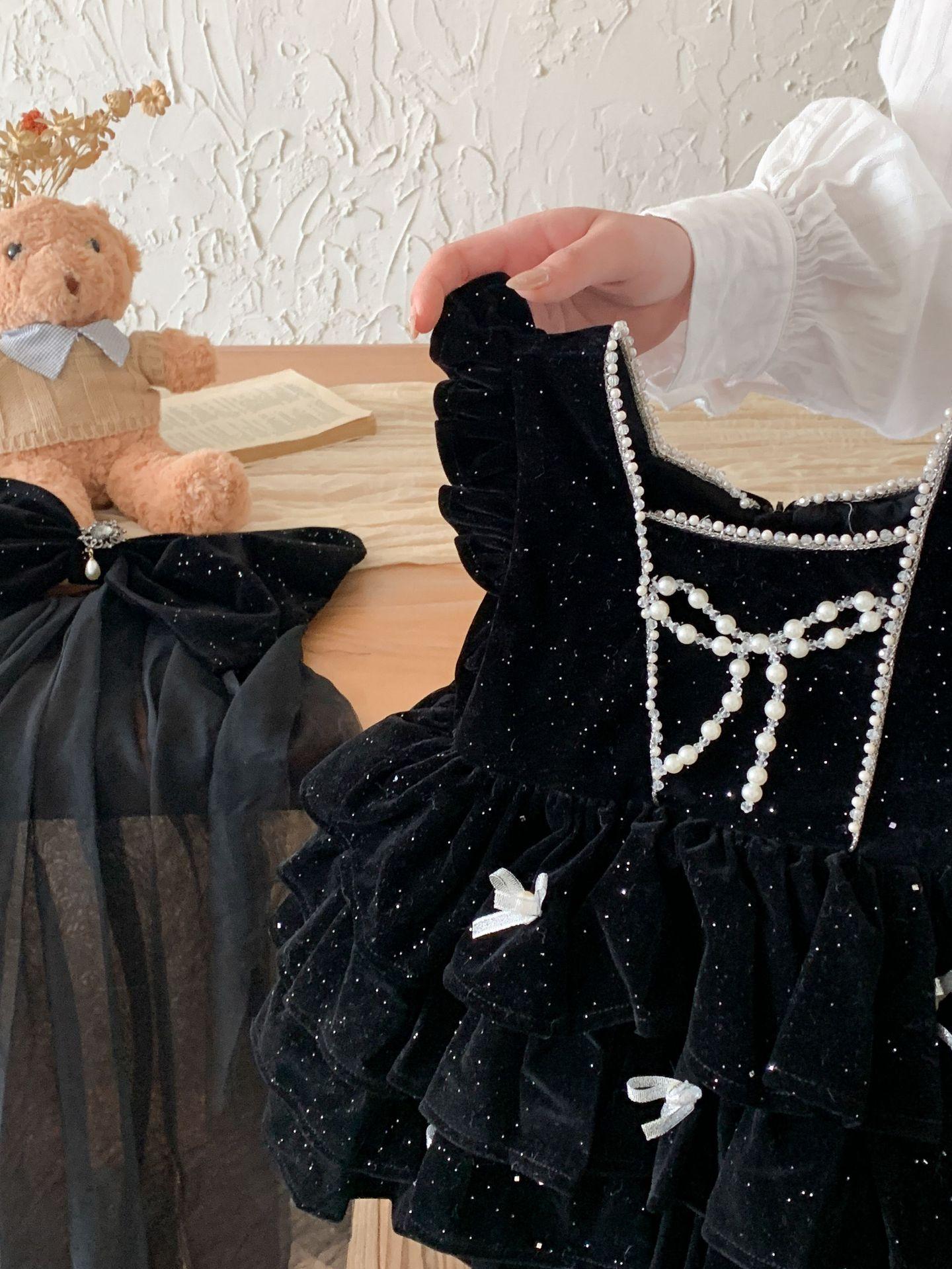 Vestido de Niña 24 Otoño/Invierno Nuevo Vestido de Princesa con Lazo y Cola Lolita Vestido Formal Infantil para Niñas Jóvenes y Pequeñas