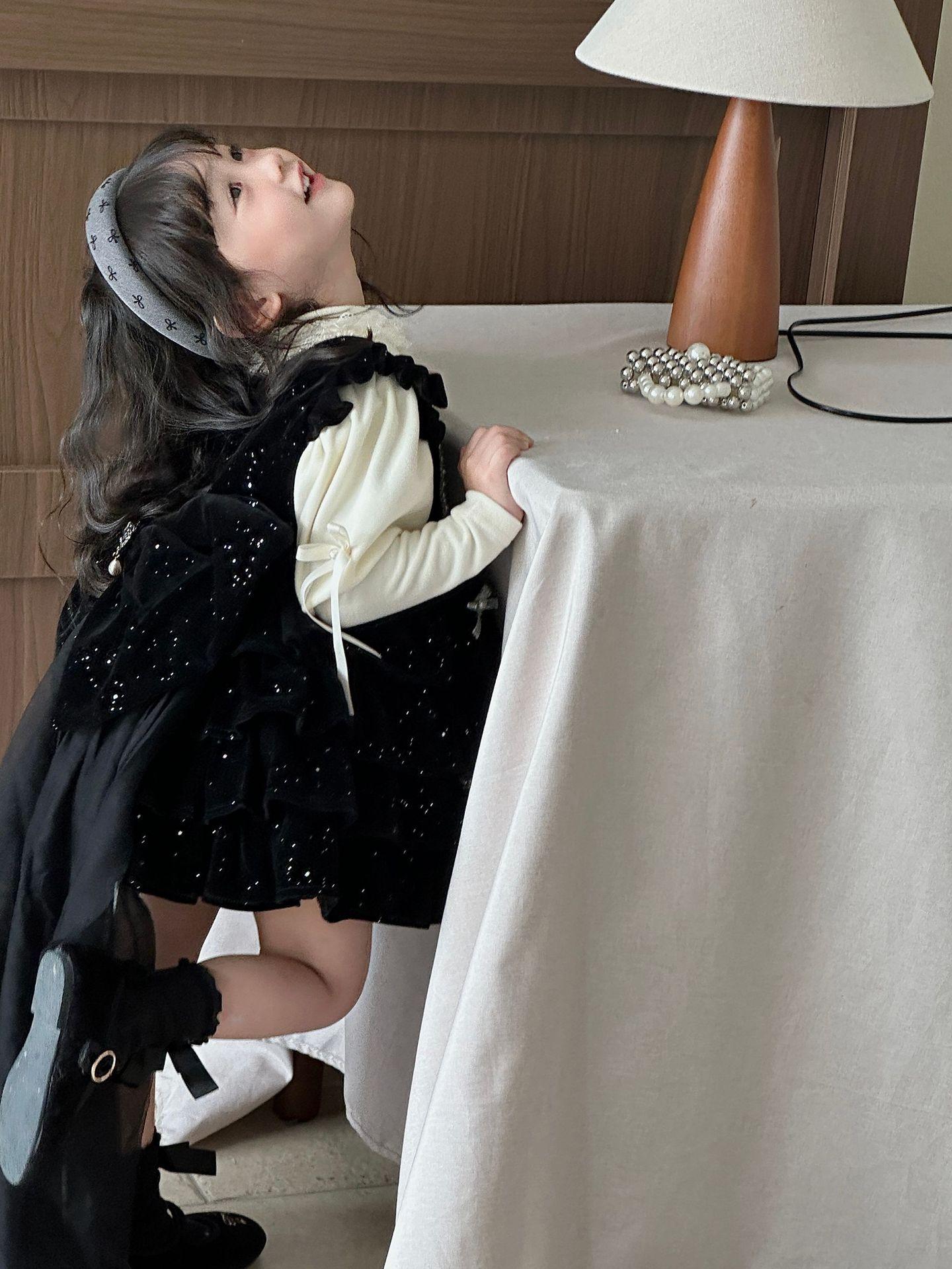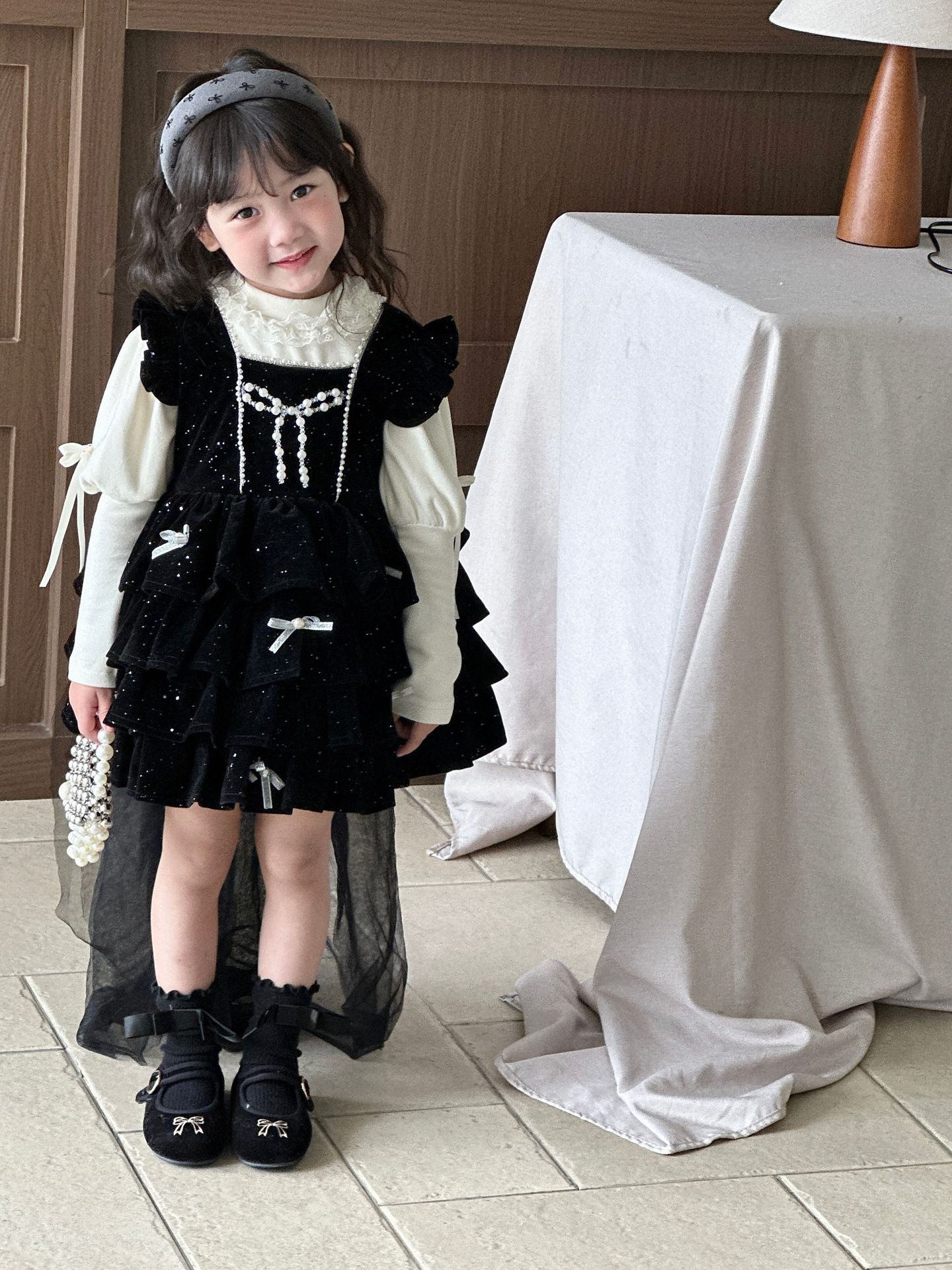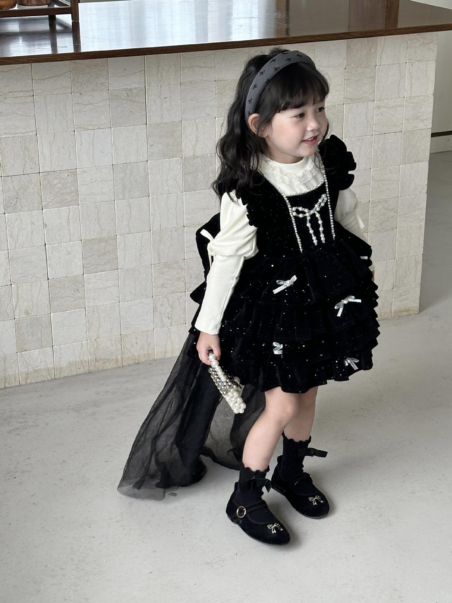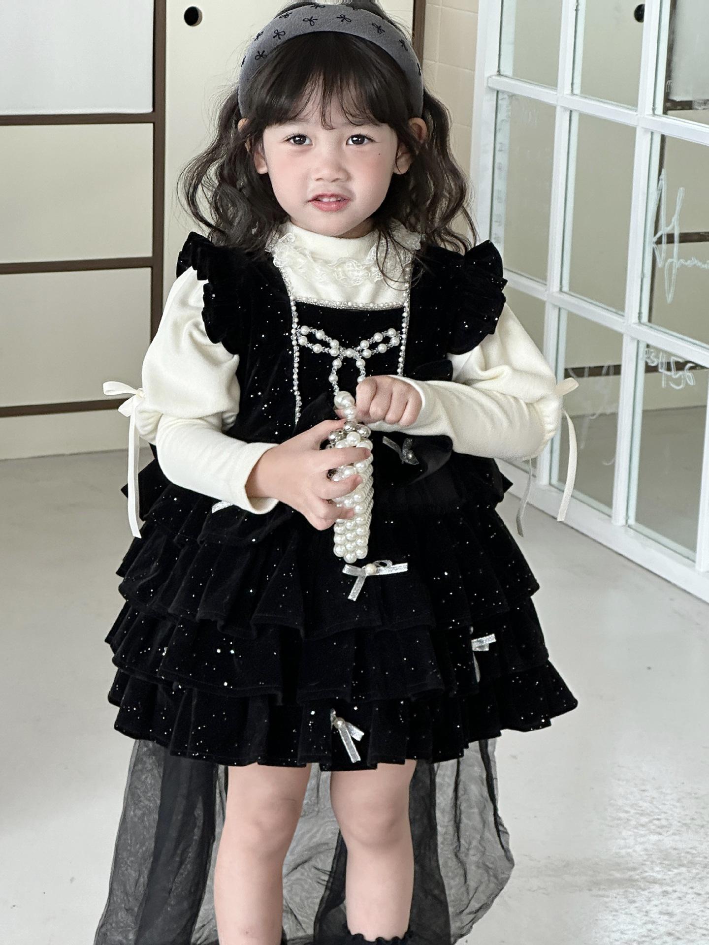 Vestido de Niña 24 Otoño/Invierno Nuevo Vestido de Princesa con Lazo y Cola Lolita Vestido Formal Infantil para Niñas Jóvenes y Pequeñas