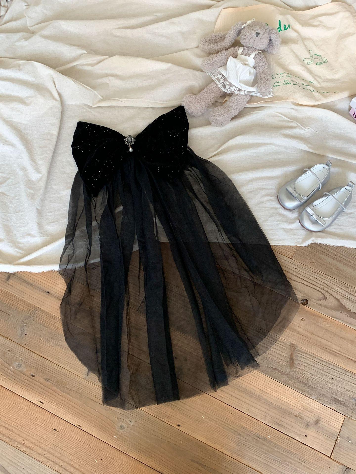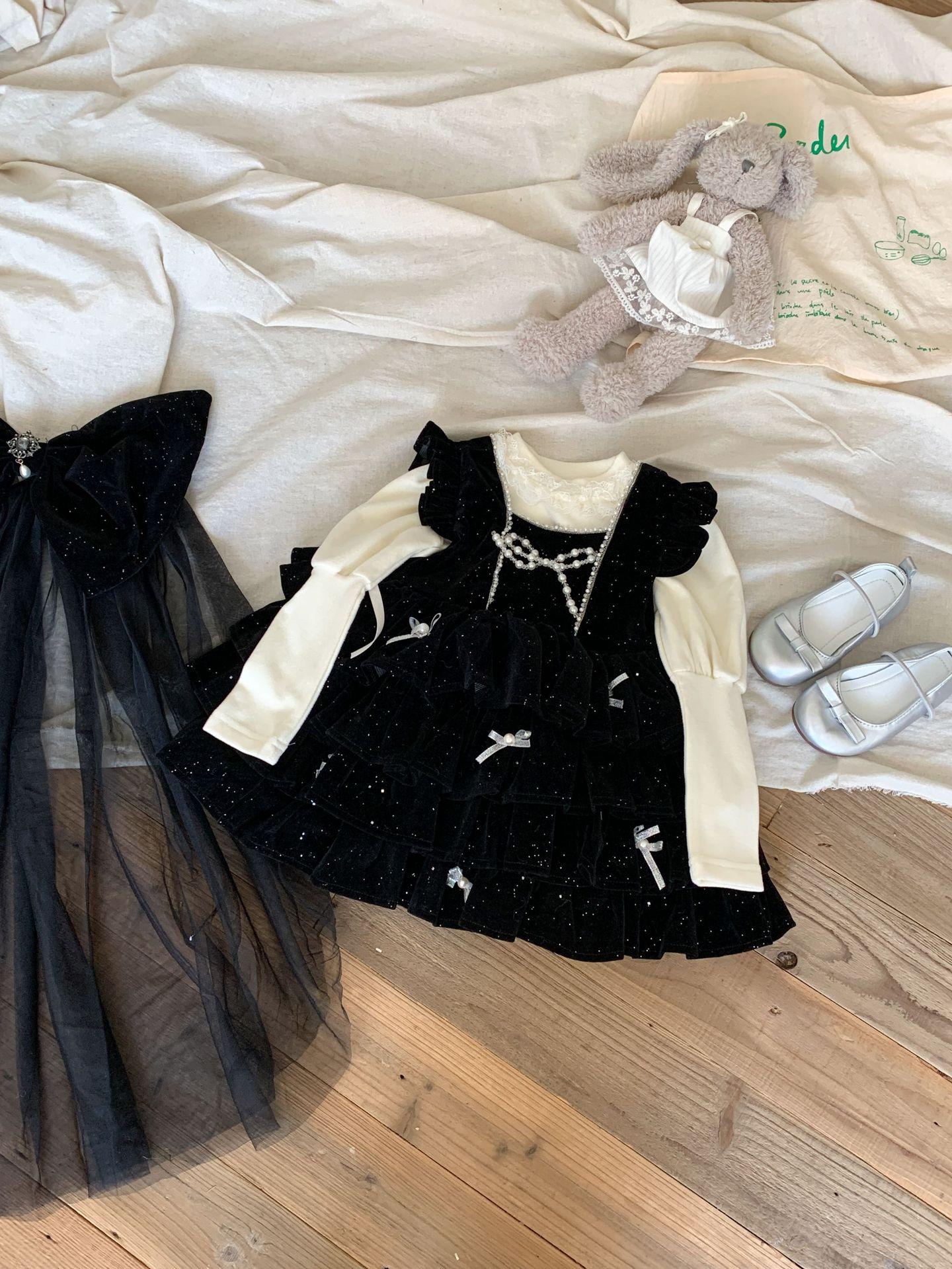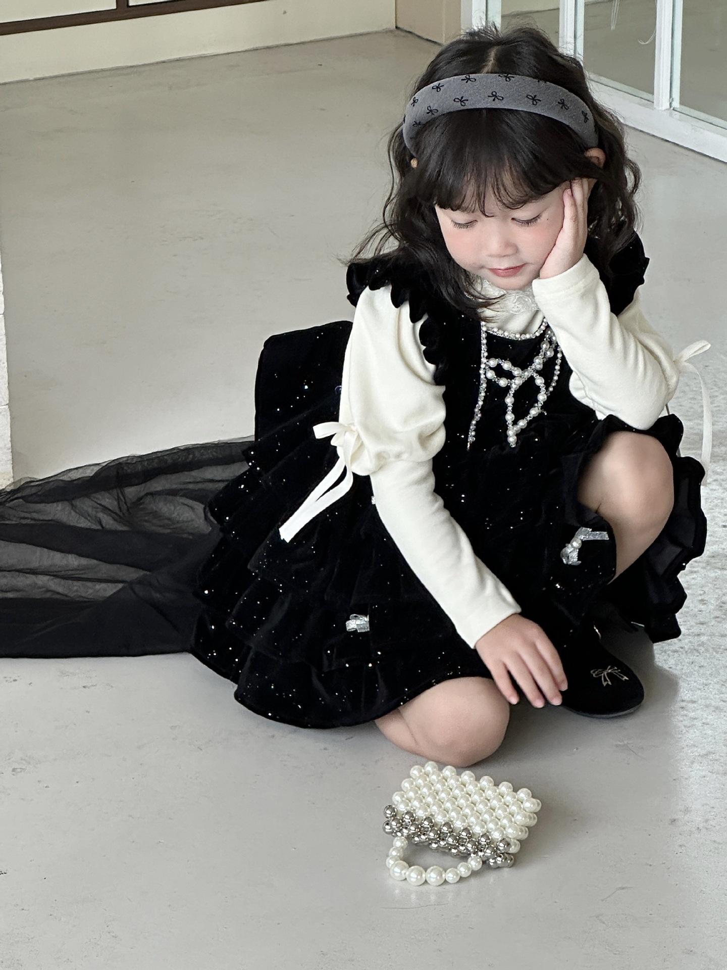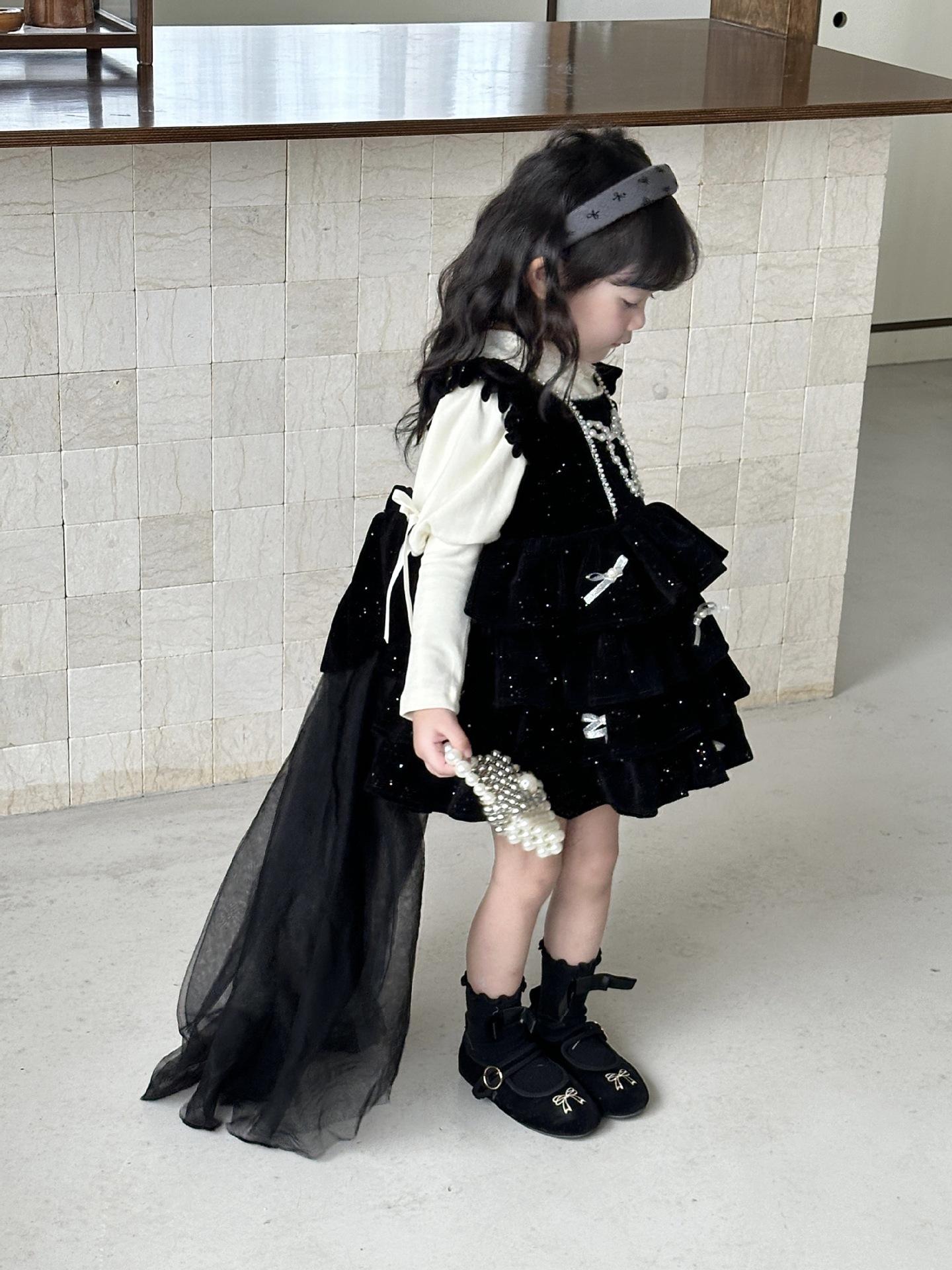 Vestido de Niña 24 Otoño/Invierno Nuevo Vestido de Princesa con Lazo y Cola Lolita Vestido Formal Infantil para Niñas Jóvenes y Pequeñas