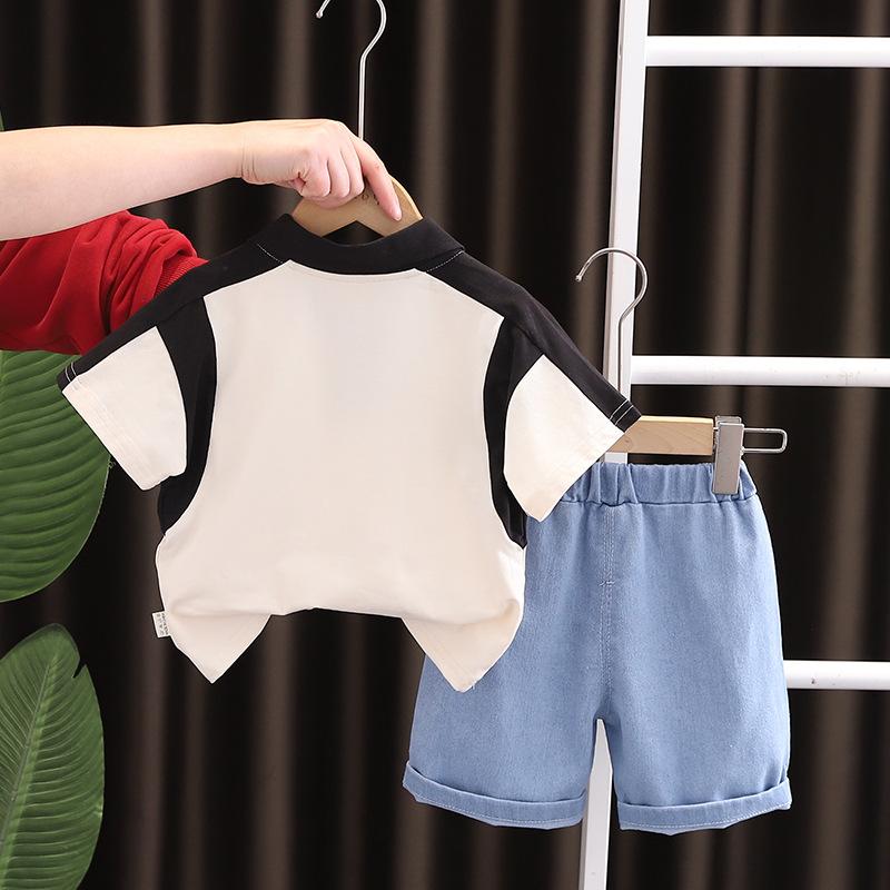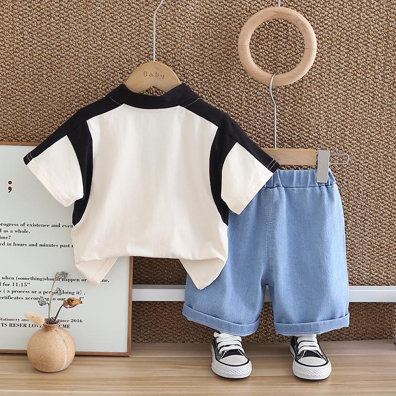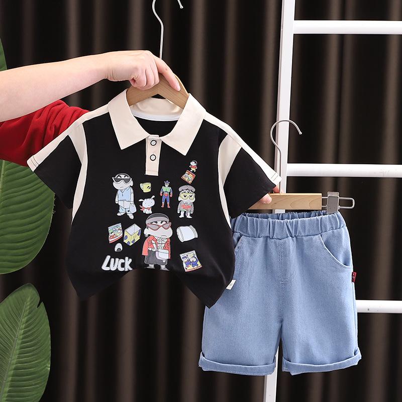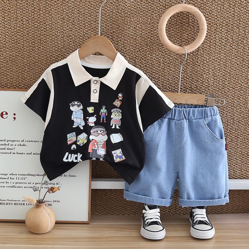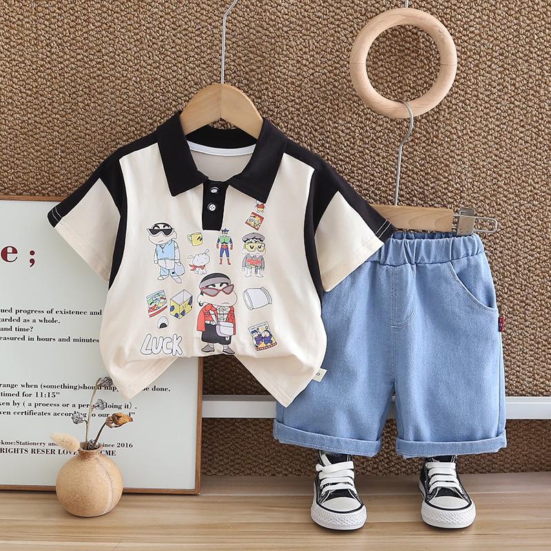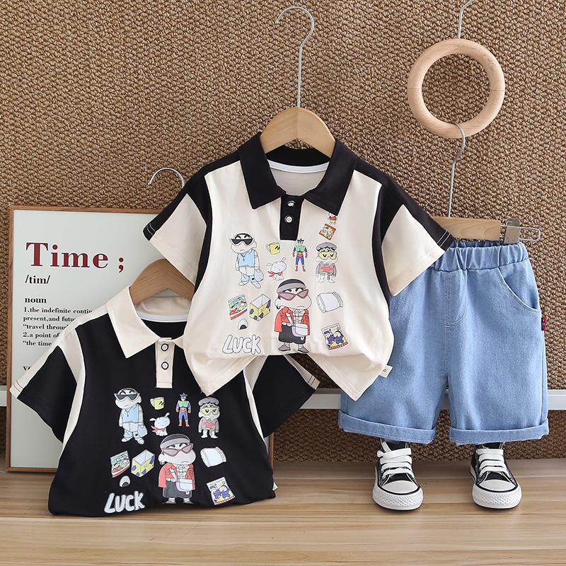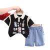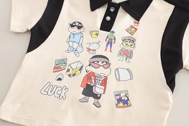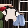 2025 Nuevo Traje de Verano para Niños de Manga Corta Estilo Occidental Casual de Dibujos Animados Lel Top Shorts Dos Piezas Moderno