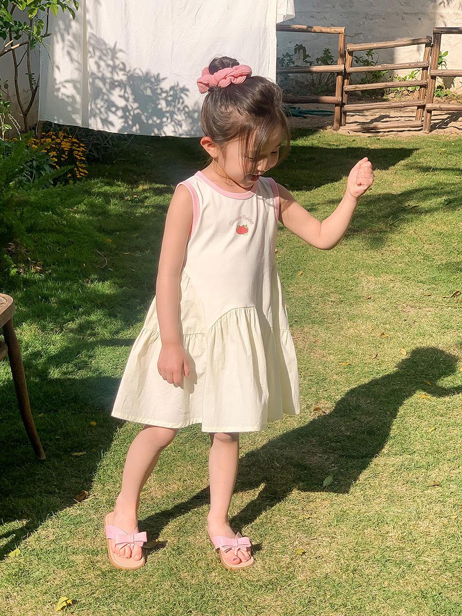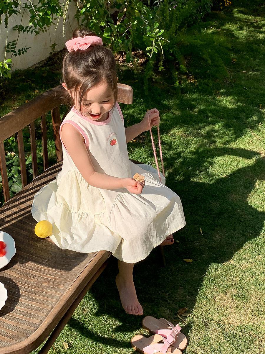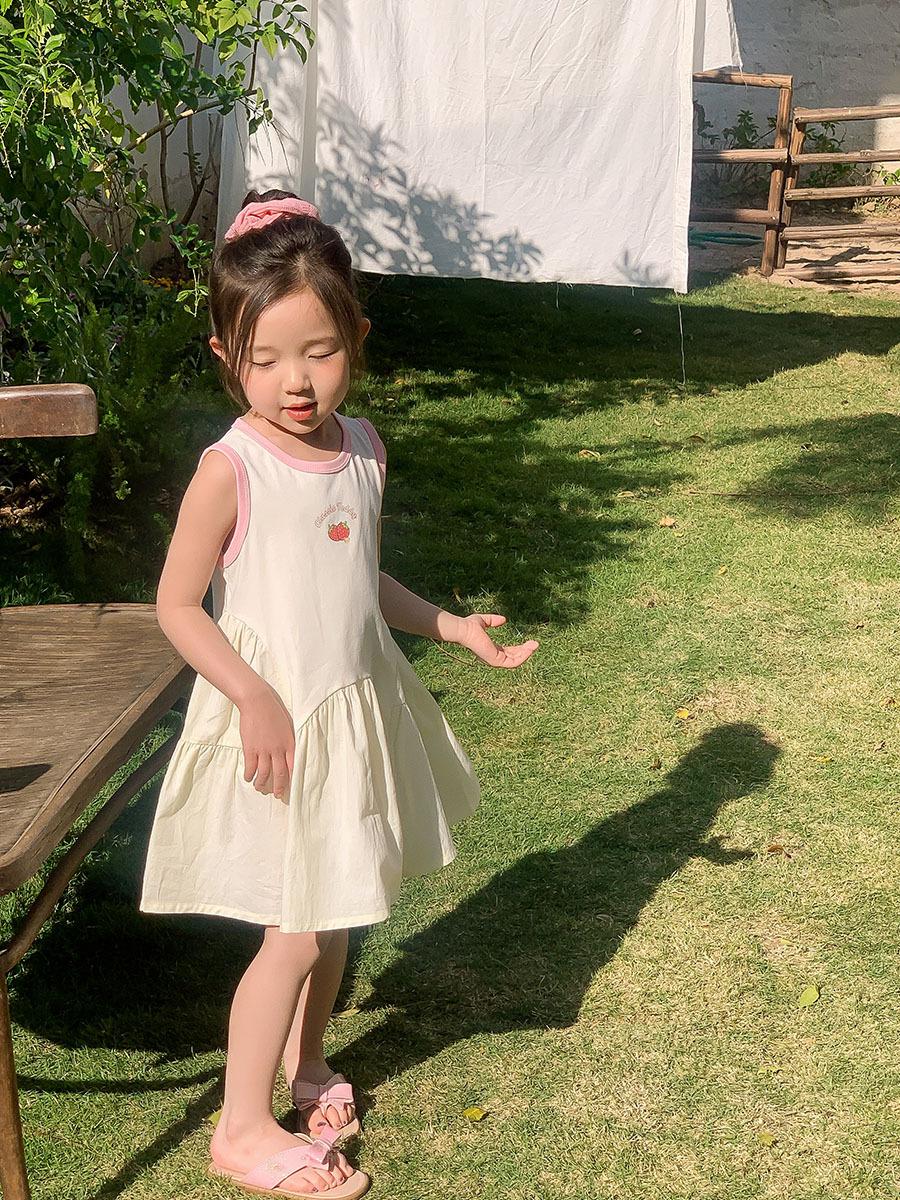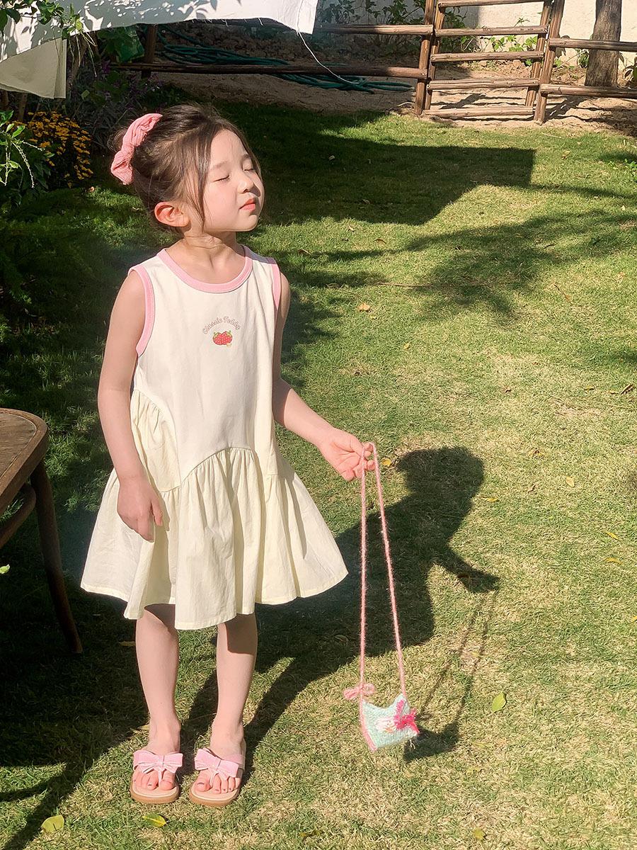 Vestido sin mangas de verano para niñas 2025, nueva ropa para niños, estilo coreano, estilo occidental, falda blanca con lazo, falda de algodón