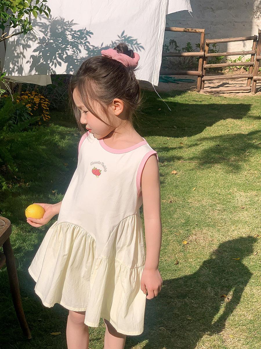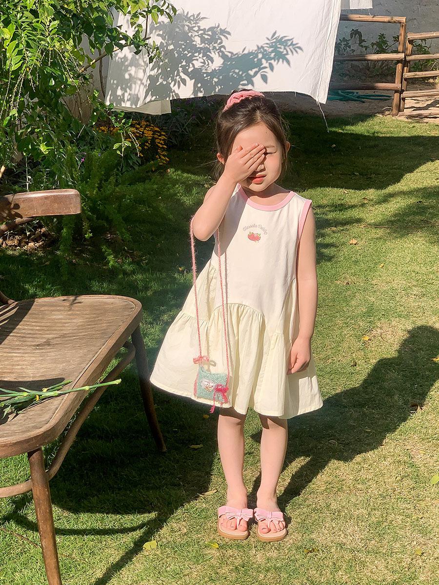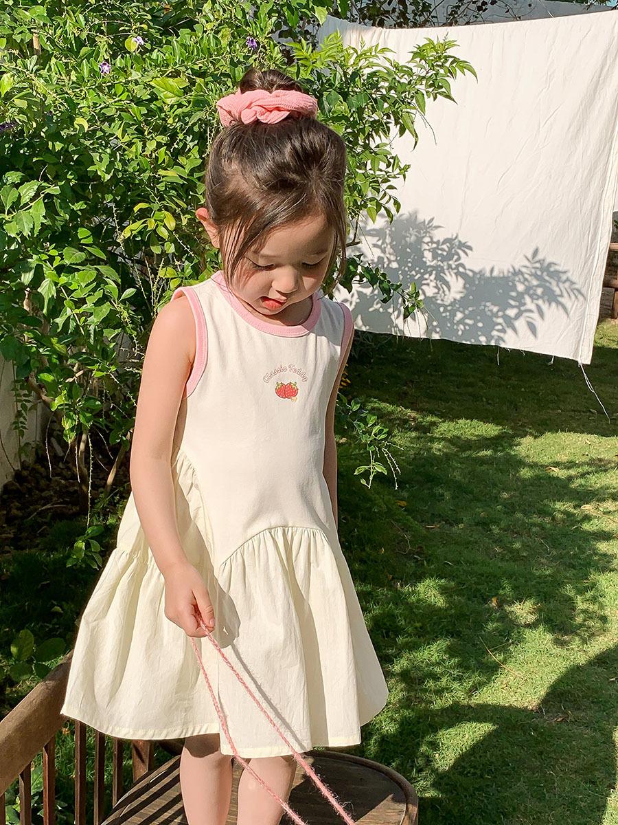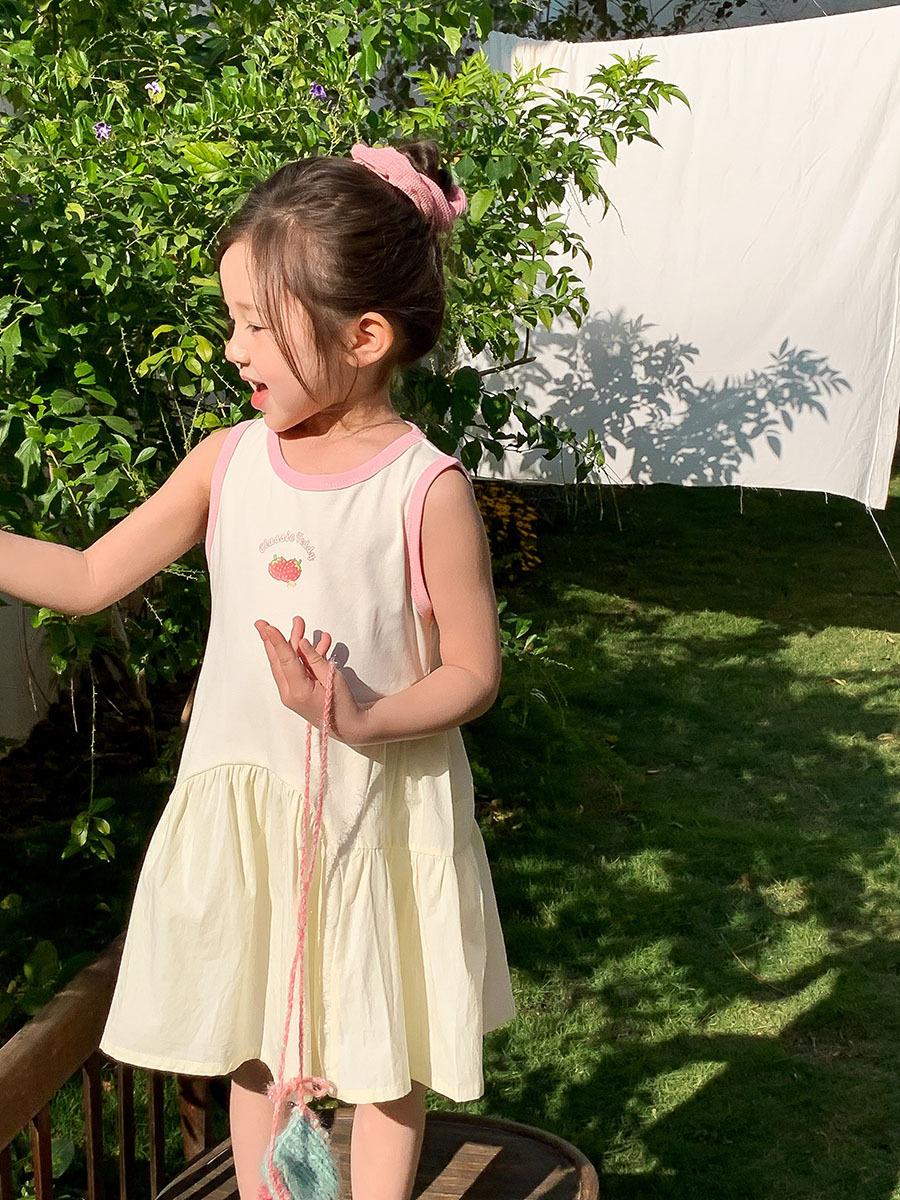 Vestido sin mangas de verano para niñas 2025, nueva ropa para niños, estilo coreano, estilo occidental, falda blanca con lazo, falda de algodón