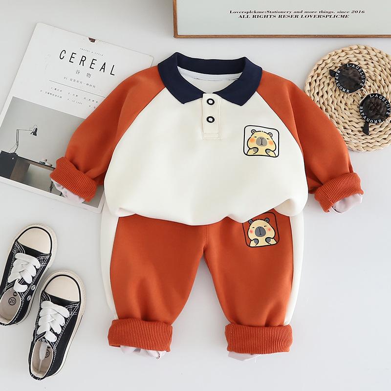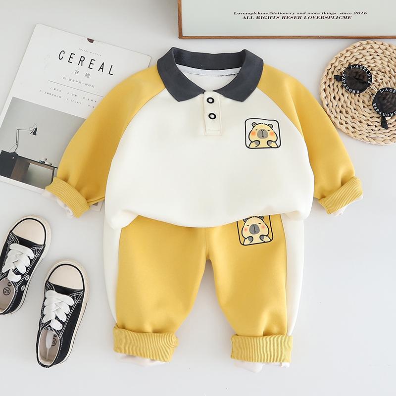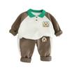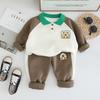 Children's lapel cartoon new arrival long sleeve two-piece set