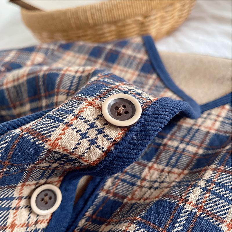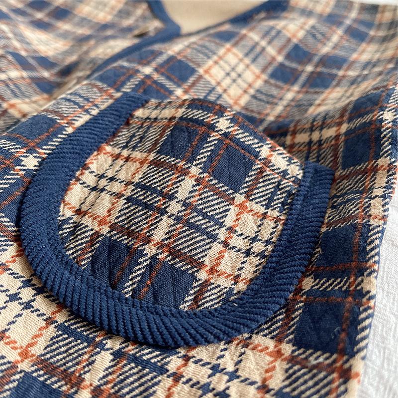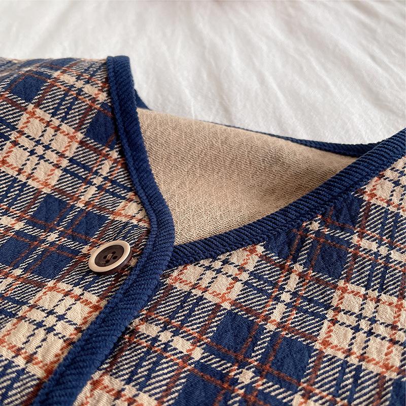 Navy blue plaid cardigan three-piece set, Brown plaid cardigan three-piece set