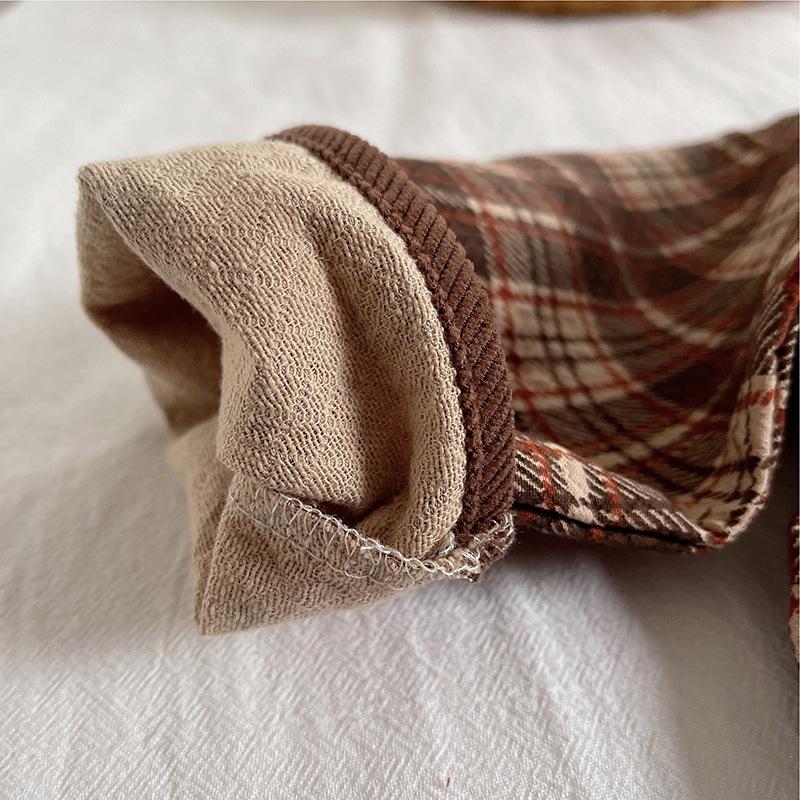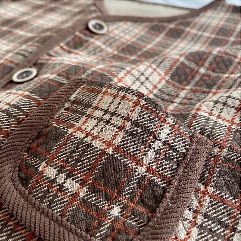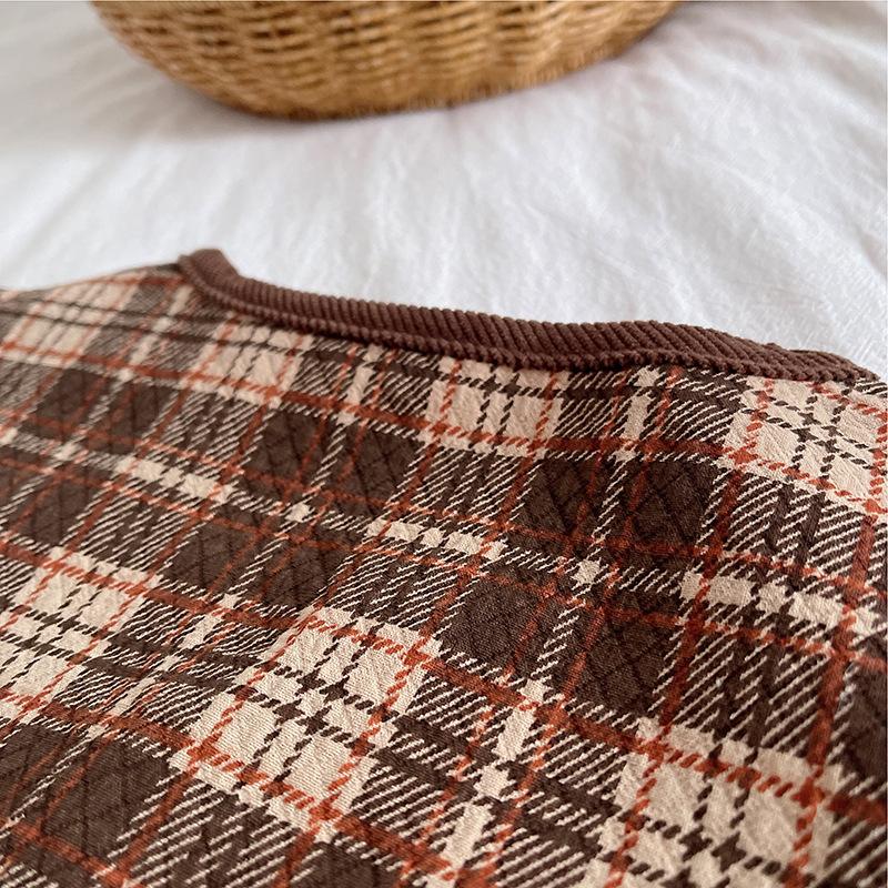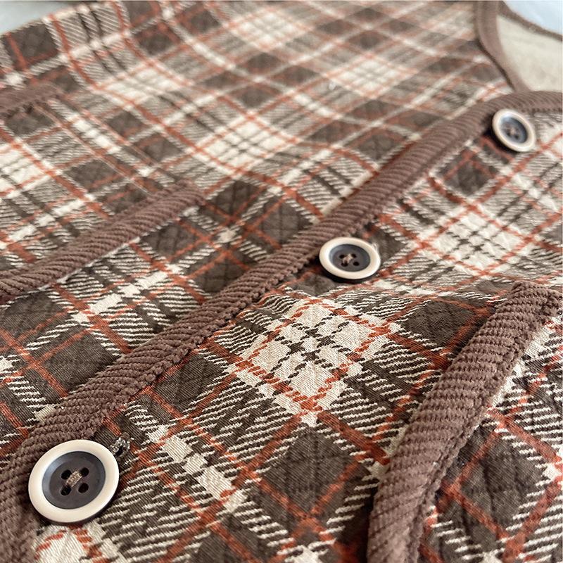 Brown plaid cardigan three-piece set