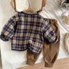Traje de Primavera y Otoño para Niño 2025 Primavera Nuevo Infantil Bebé Bebé Primavera y Otoño Cárdigan a Cuadros Elegante Conjunto de Tres Piezas