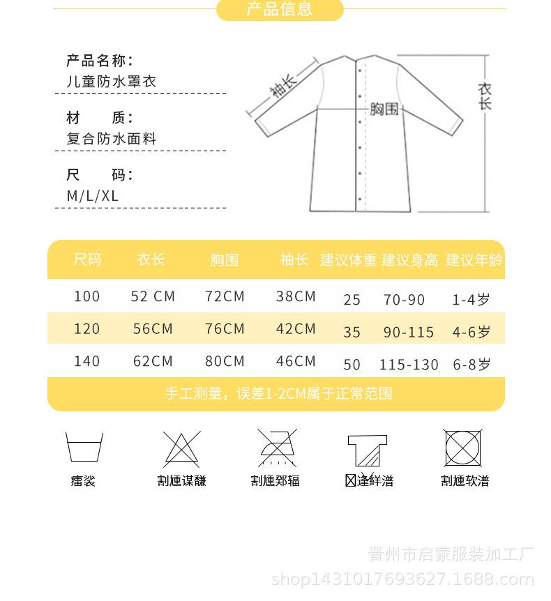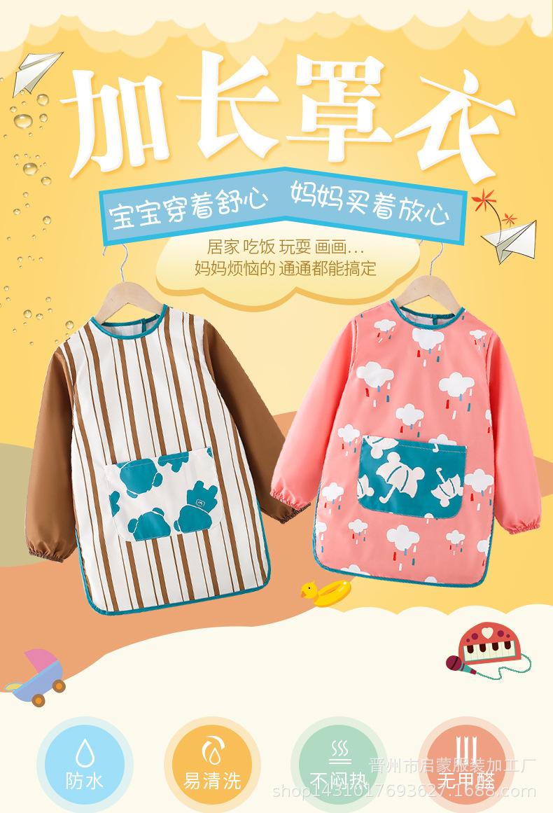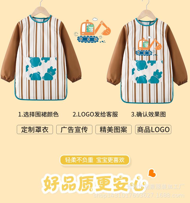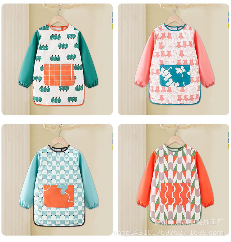 Mono infantil impermeable de cuerpo entero, babero para comer, delantal para pintar, ropa protectora antisuciedad y antiadherente para niños de jardín de infantes