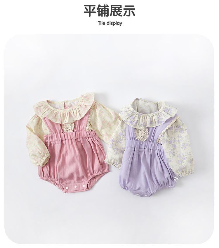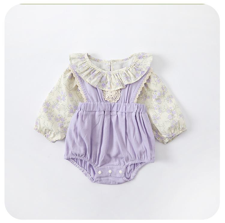 Otoño 2025 Ropa de Recién Nacido Traje de Bebé Niña Dulce Top Floral Peto Bolsa Ropa de Pedo Conjunto de Dos Piezas