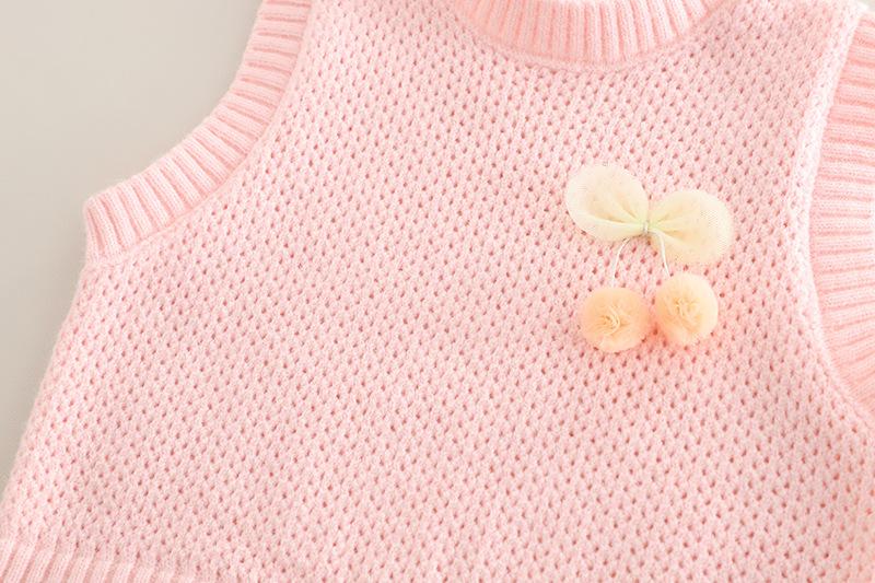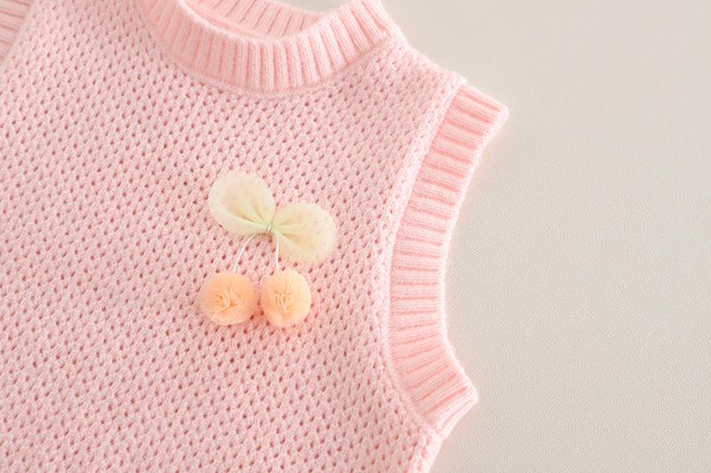 Pink korean cherry sweater three-piece set, Yellow korean cherry sweater three-piece set