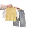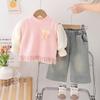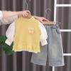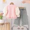 Traje de primavera y otoño para niñas, nuevo traje de moda para bebés de 2025, estilo occidental, suéter, chaleco, traje de tres piezas.