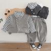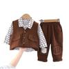 Chaleco Retro de Primavera para Niño Camisa Traje de Manga Larga Nuevo Conjunto de Tres Piezas Casual Guapo para Niños Moderno Estilo Coreano para Niños
