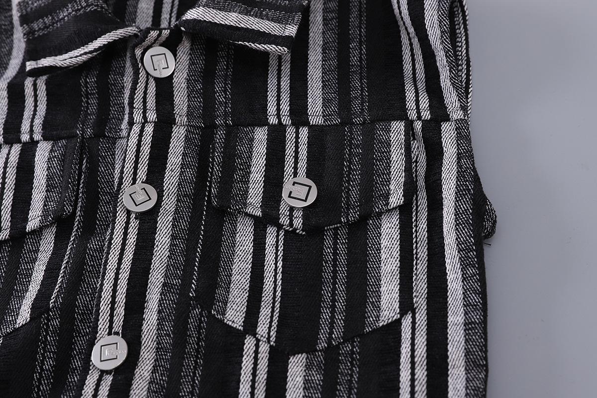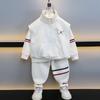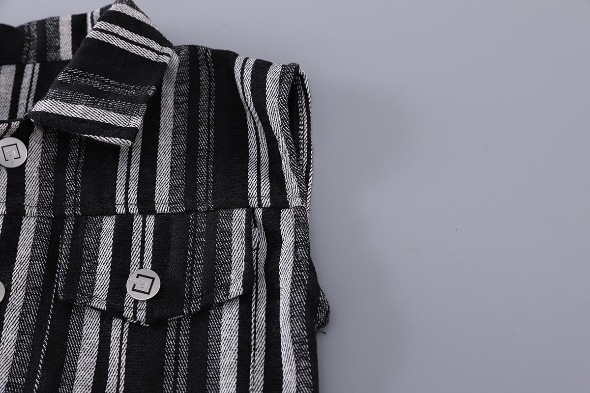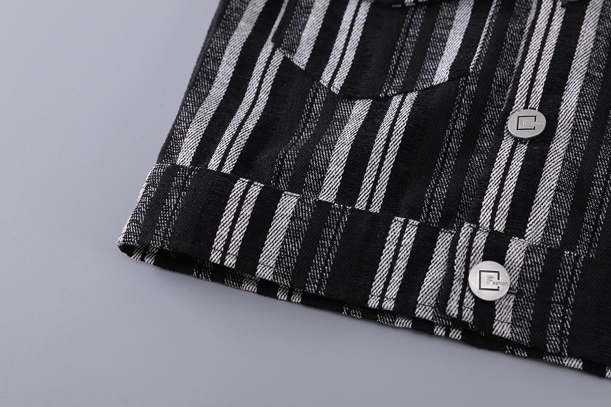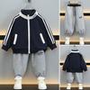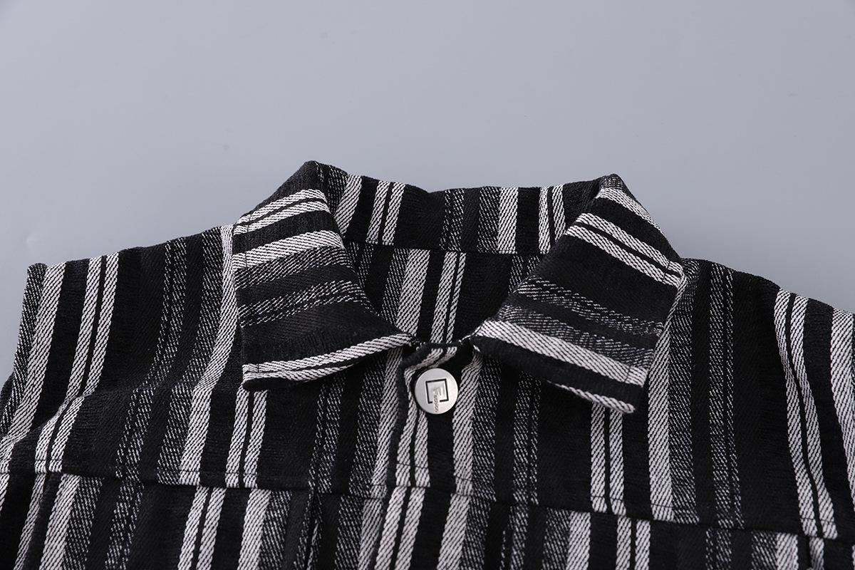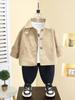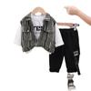 Traje de Otoño para Niño 2025 Nuevo Chaleco Rayado para Niños Top Chaqueta Guapa Combinable Set de Tres Piezas