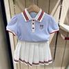 Traje de verano para niñas 2025, nuevo conjunto de dos piezas de dibujos animados de estilo coreano para bebés y niñas de manga corta de verano.