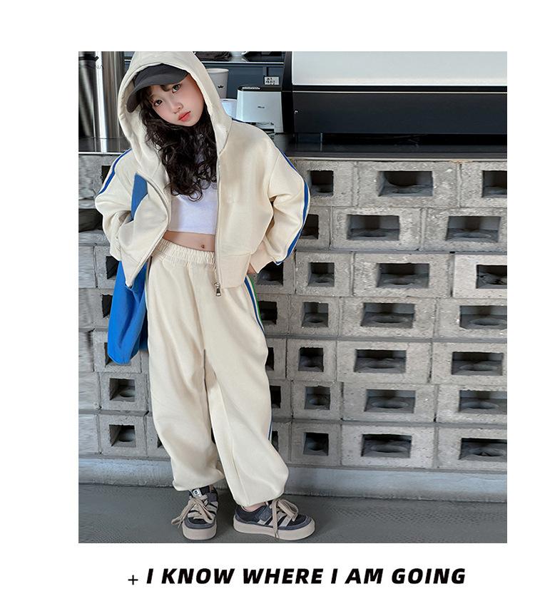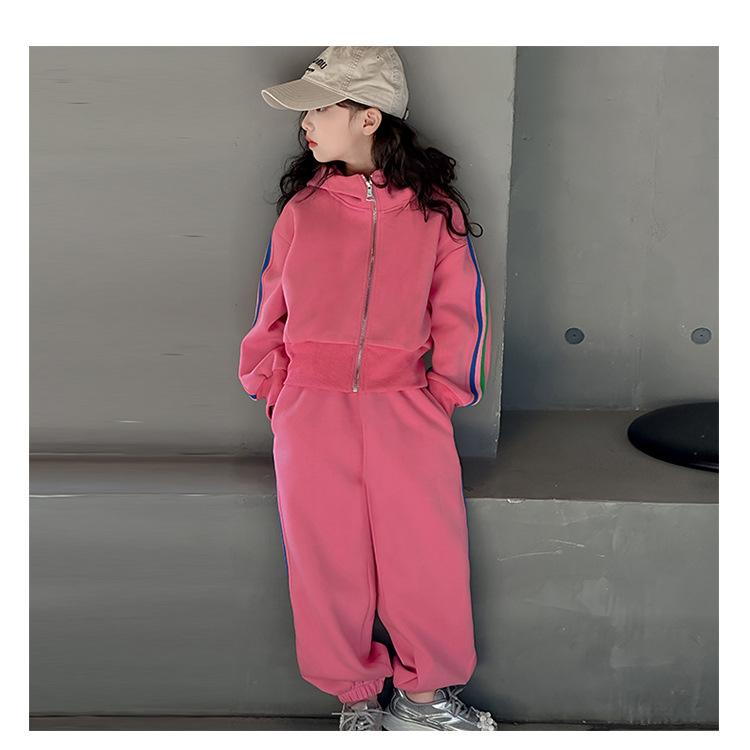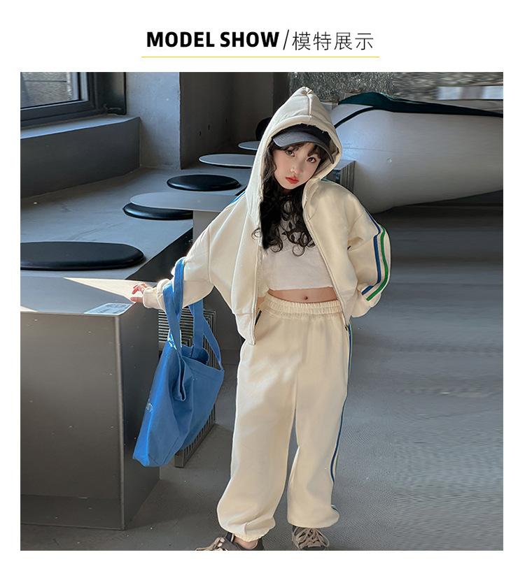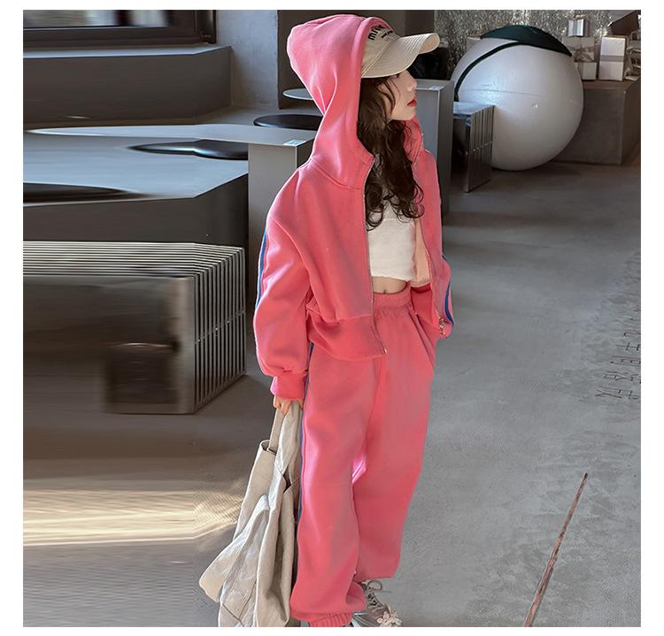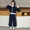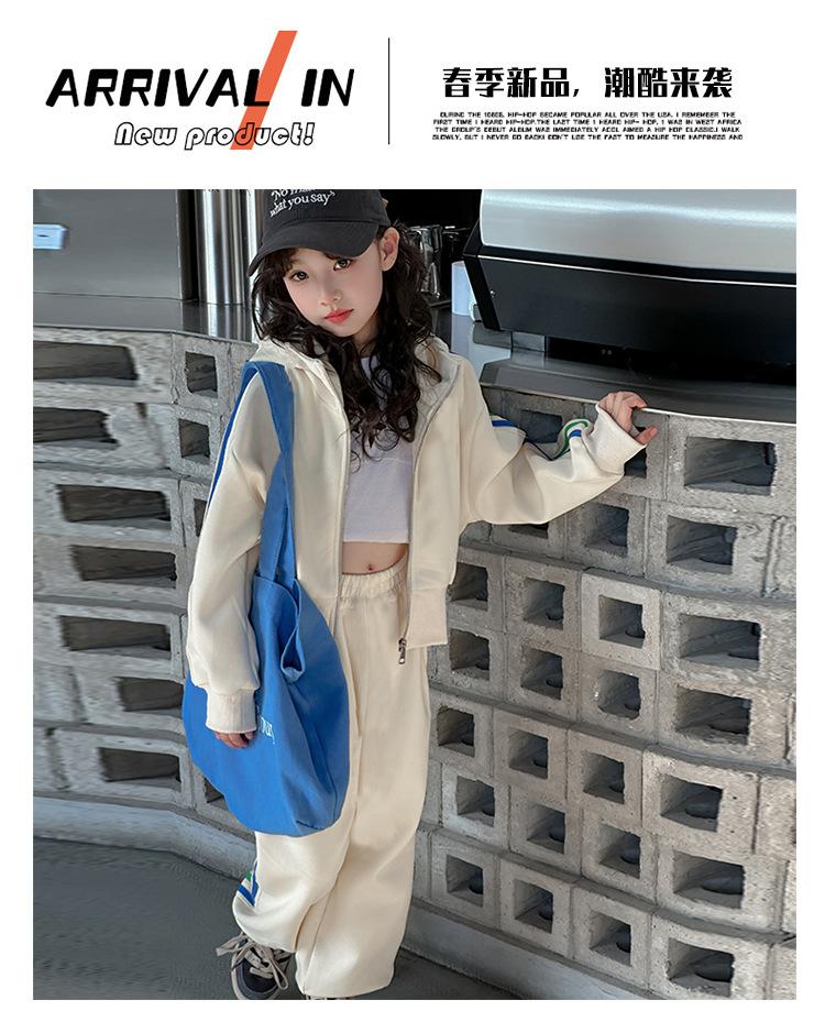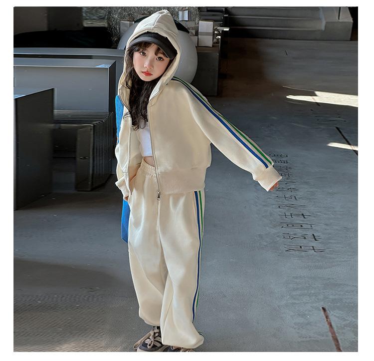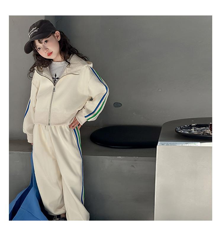 Traje para niña primavera 2025 nuevo estilo coreano para niños abrigo con capucha estilo extranjero niña pequeña pantalones deportivos conjunto de dos piezas moda