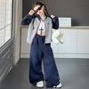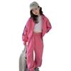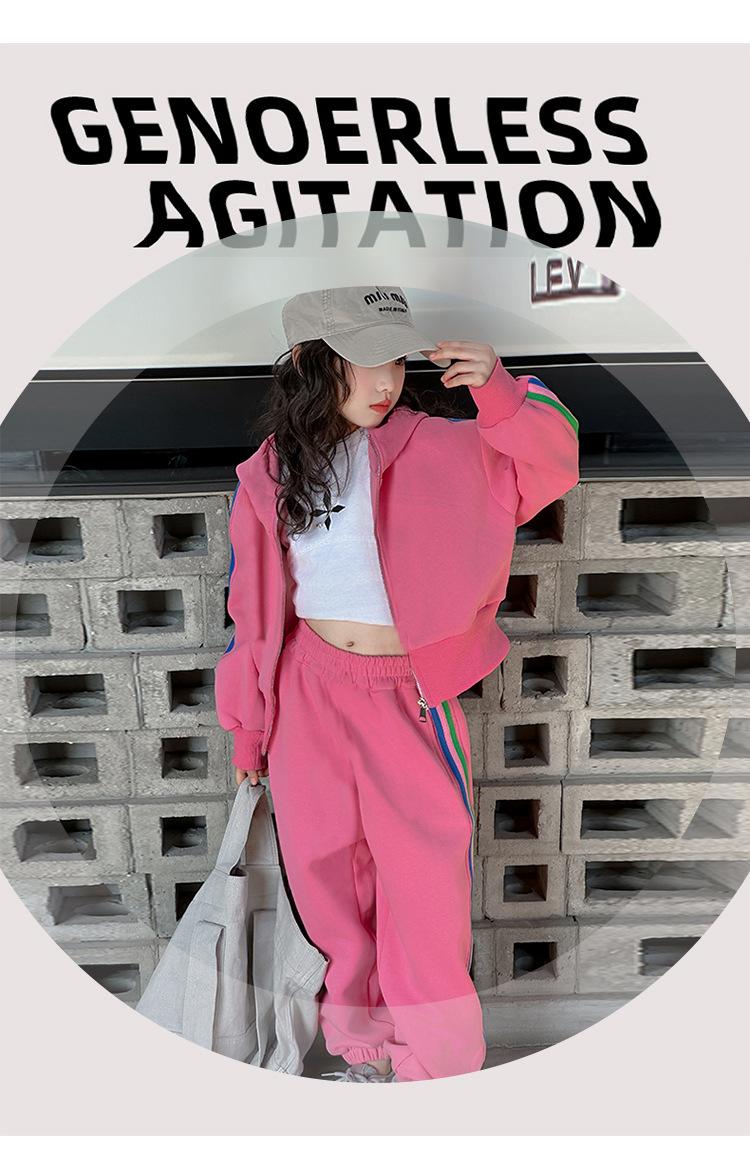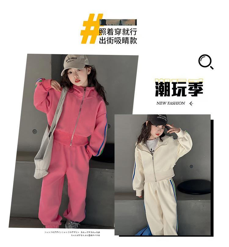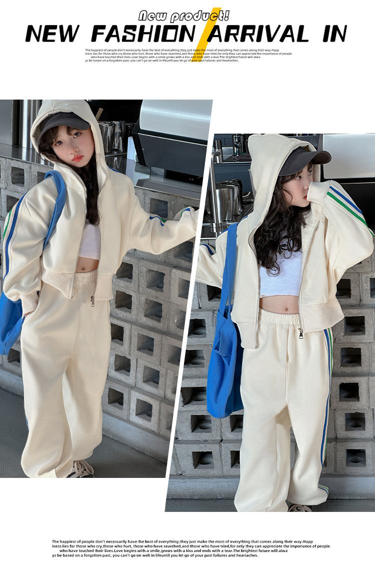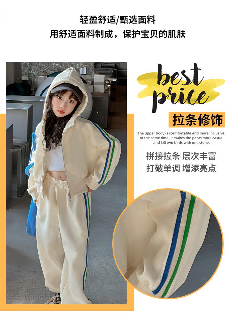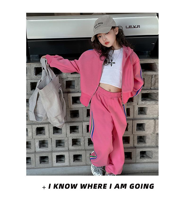 Traje para niña primavera 2025 nuevo estilo coreano para niños abrigo con capucha estilo extranjero niña pequeña pantalones deportivos conjunto de dos piezas moda