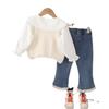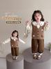 Conjunto de ropa de primavera para niñas 2025, nuevo estilo para bebés, ropa de primavera y otoño, suéter y chaleco para niños, conjunto de tres piezas
