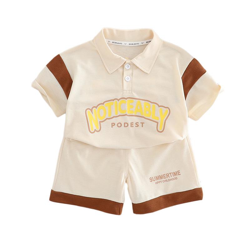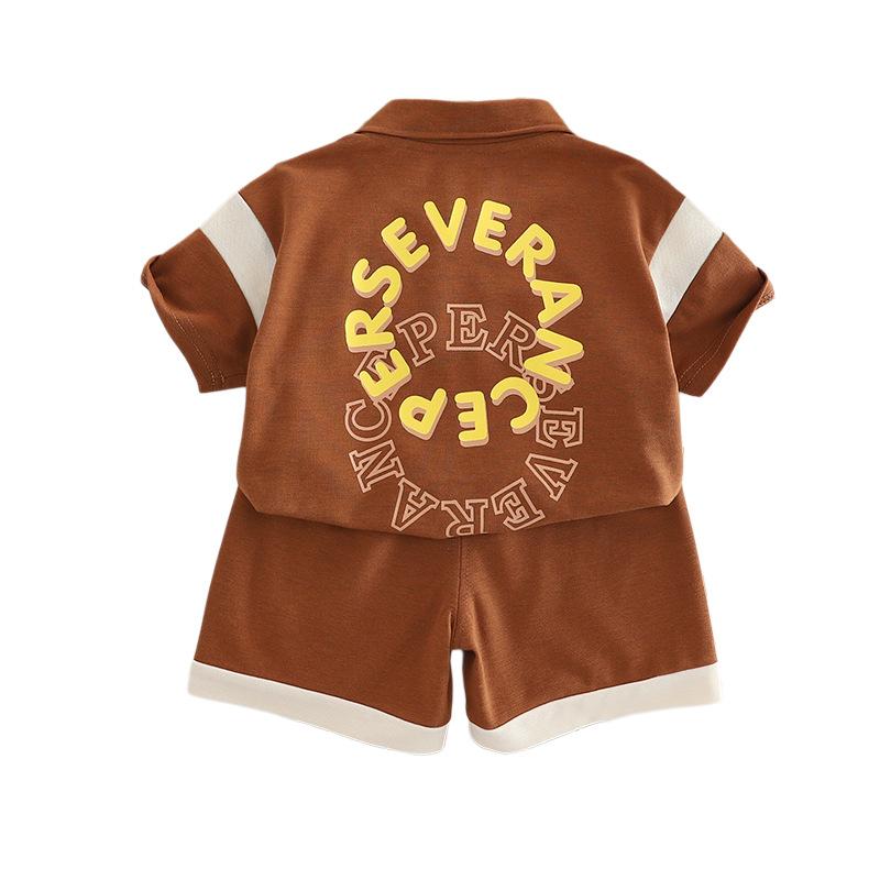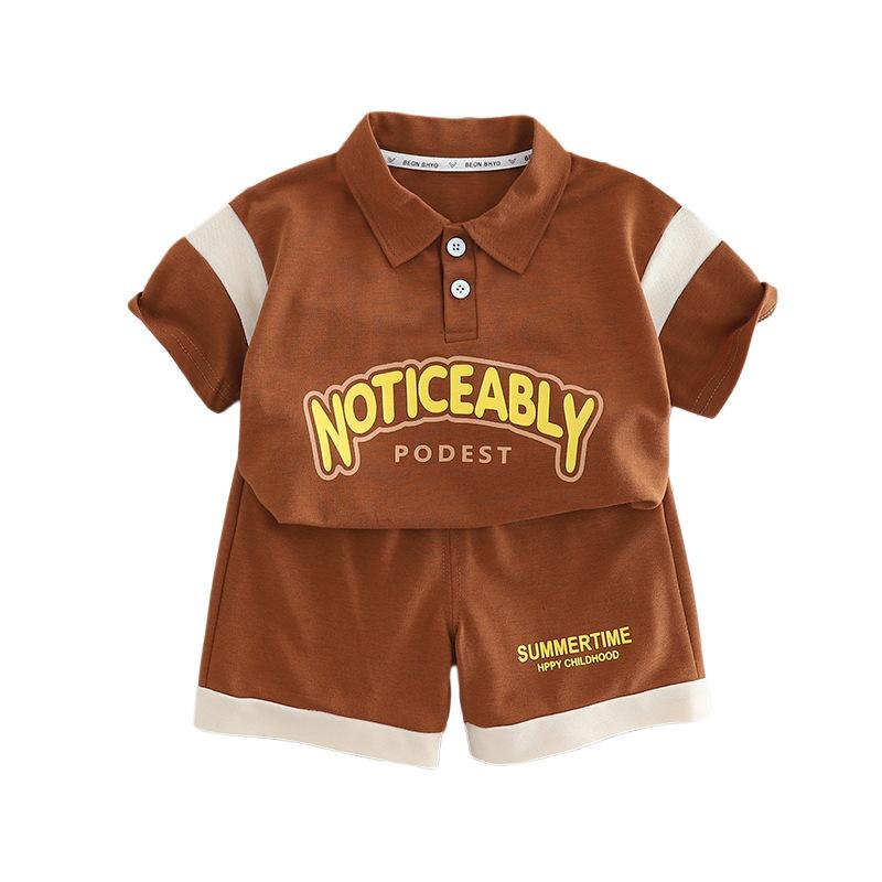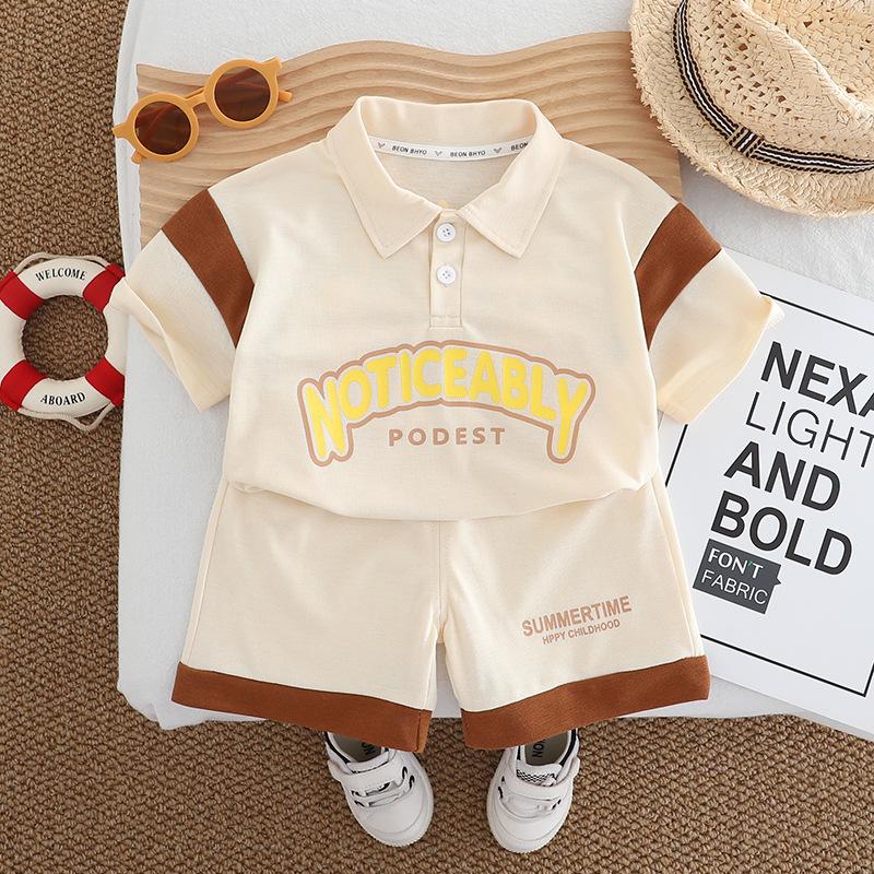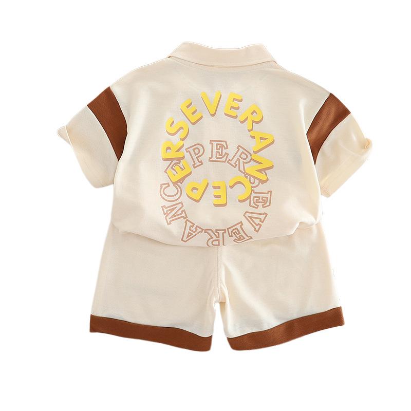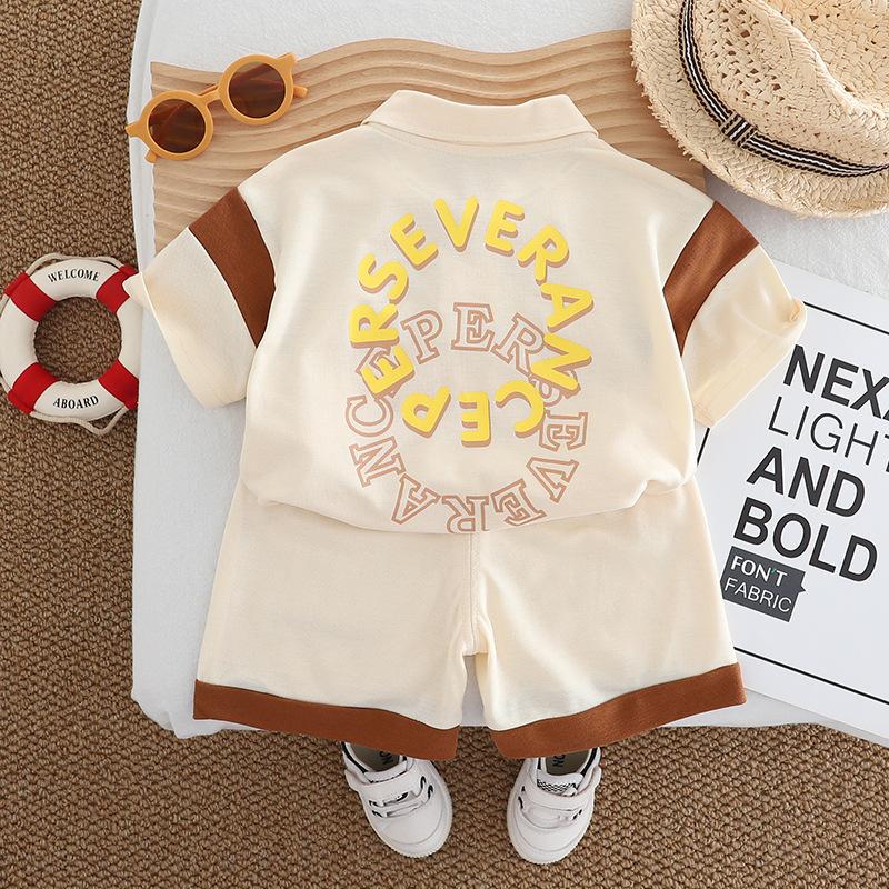 Traje de Verano de Manga Corta para Niño 2025 Verano Nuevo Conjunto Casual de Dos Piezas para Niños y Niños con Letras Camisa Polo y Pantalones Cortos