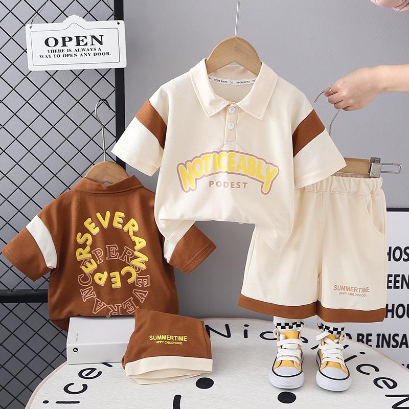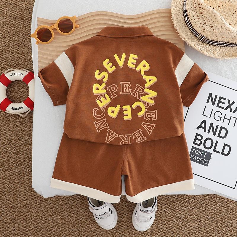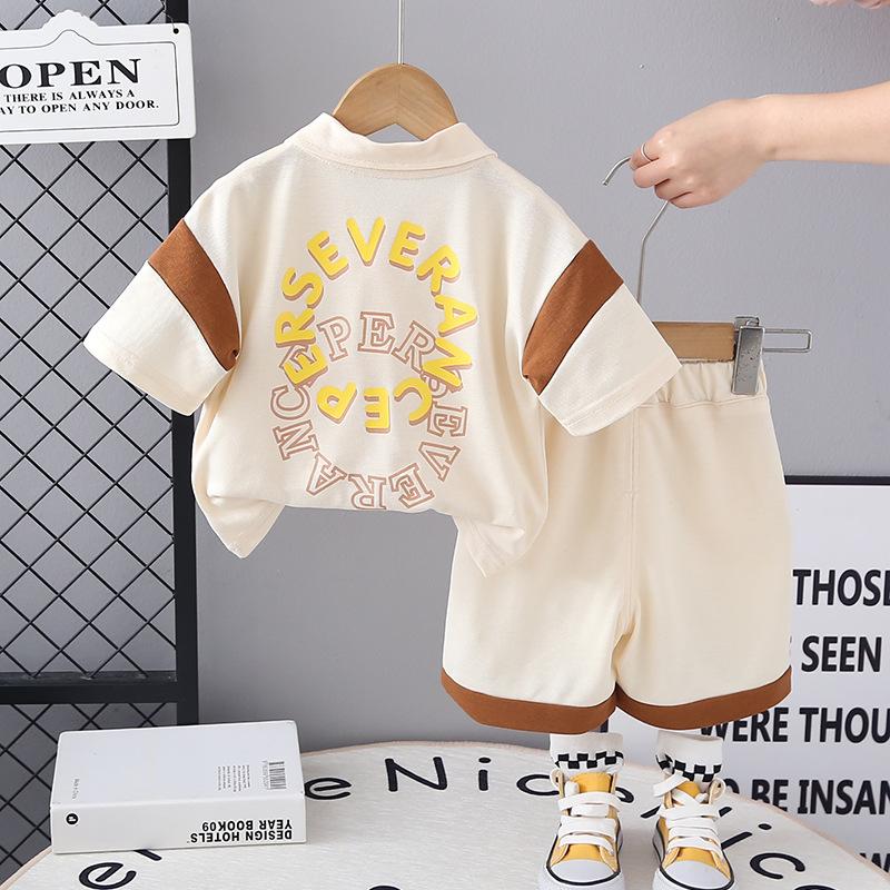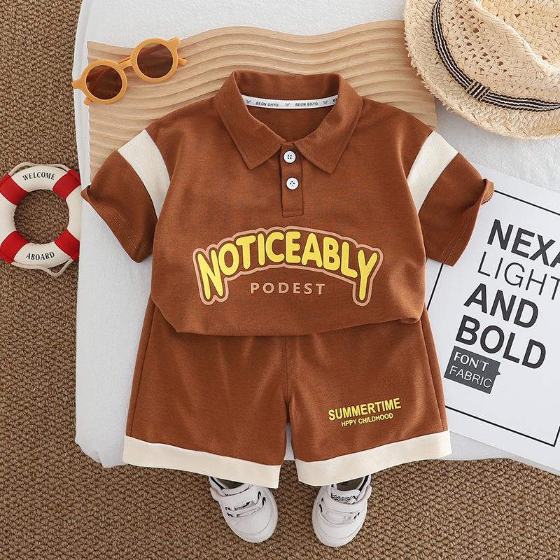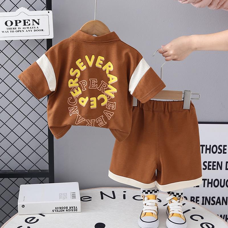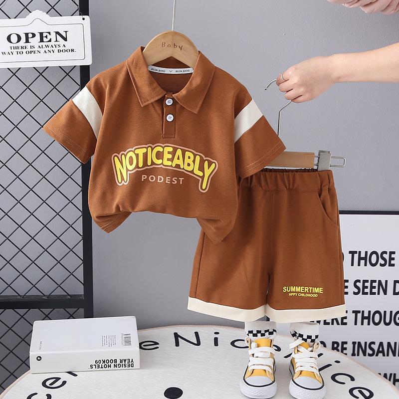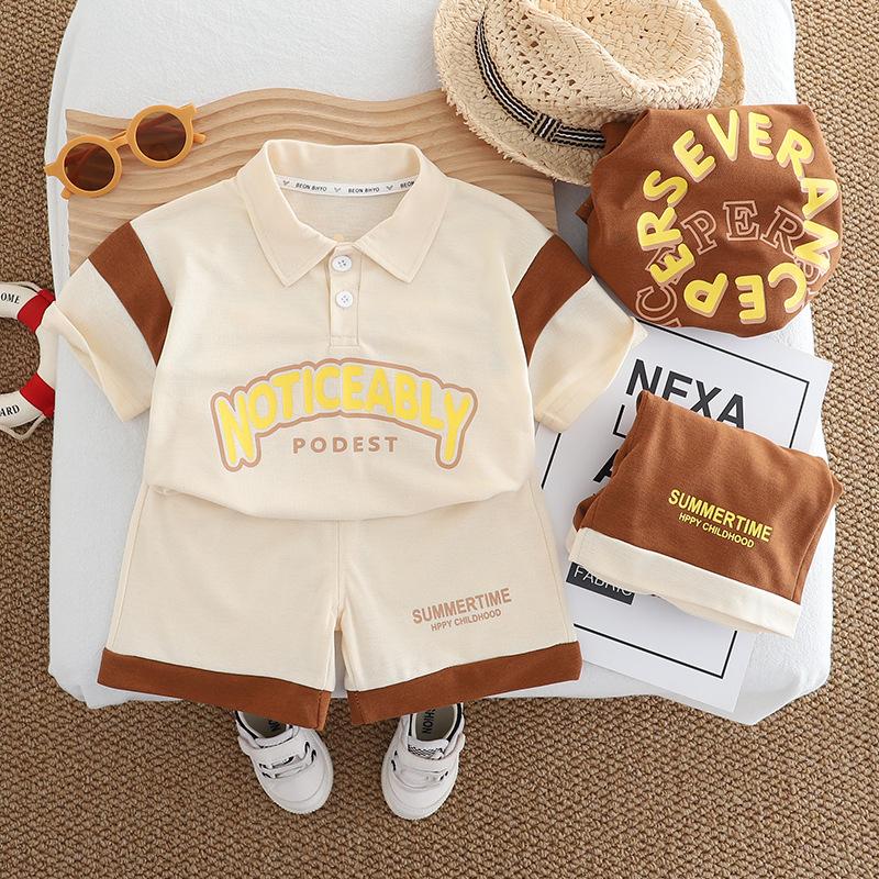 Traje de Verano de Manga Corta para Niño 2025 Verano Nuevo Conjunto Casual de Dos Piezas para Niños y Niños con Letras Camisa Polo y Pantalones Cortos