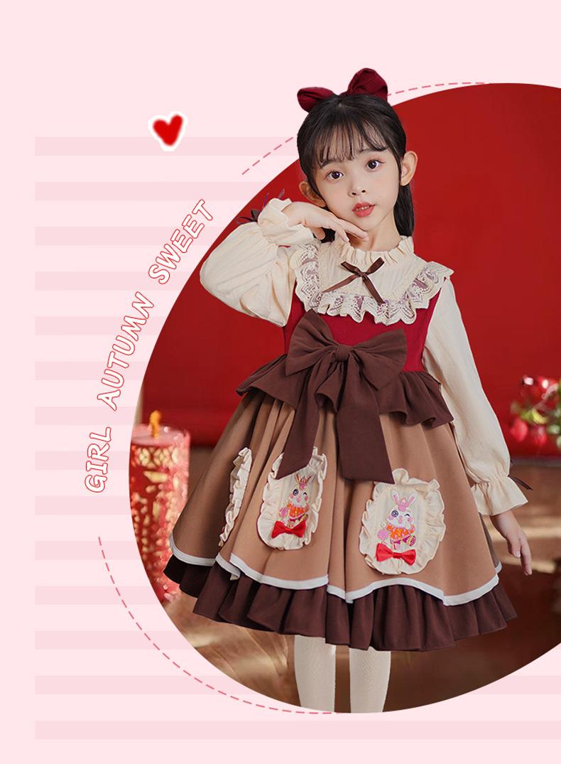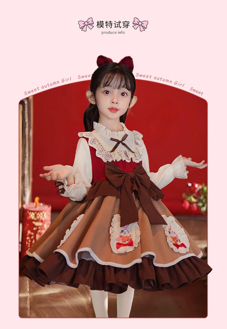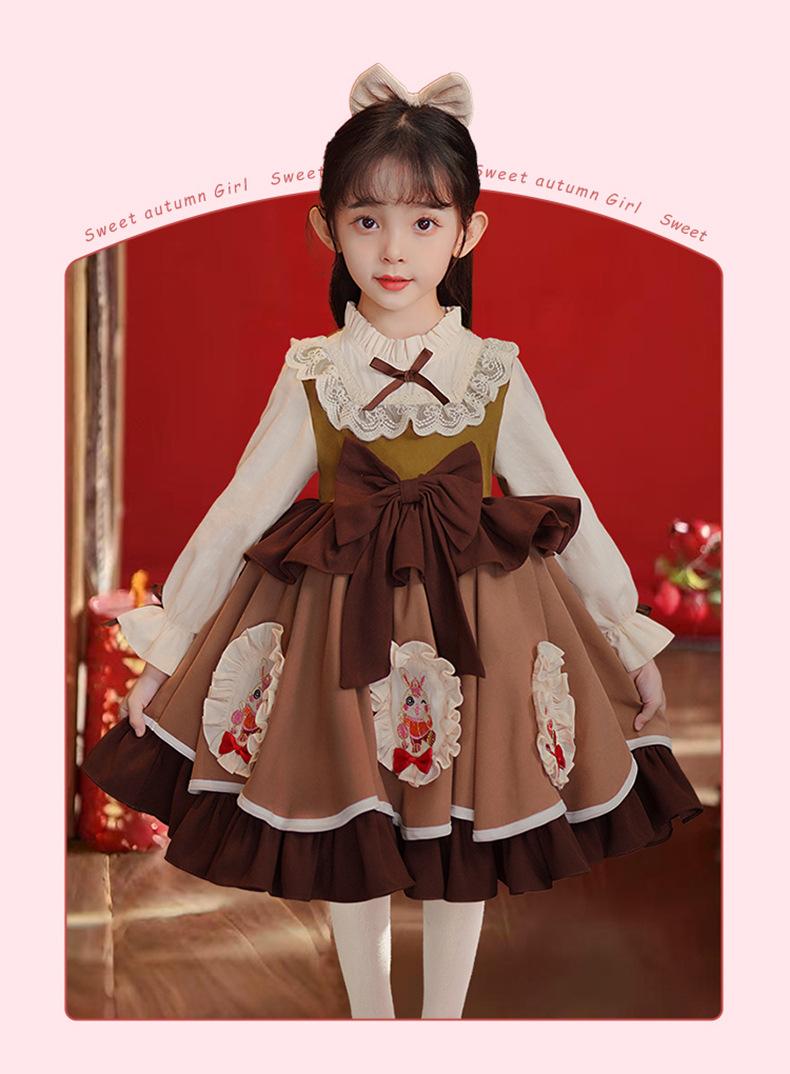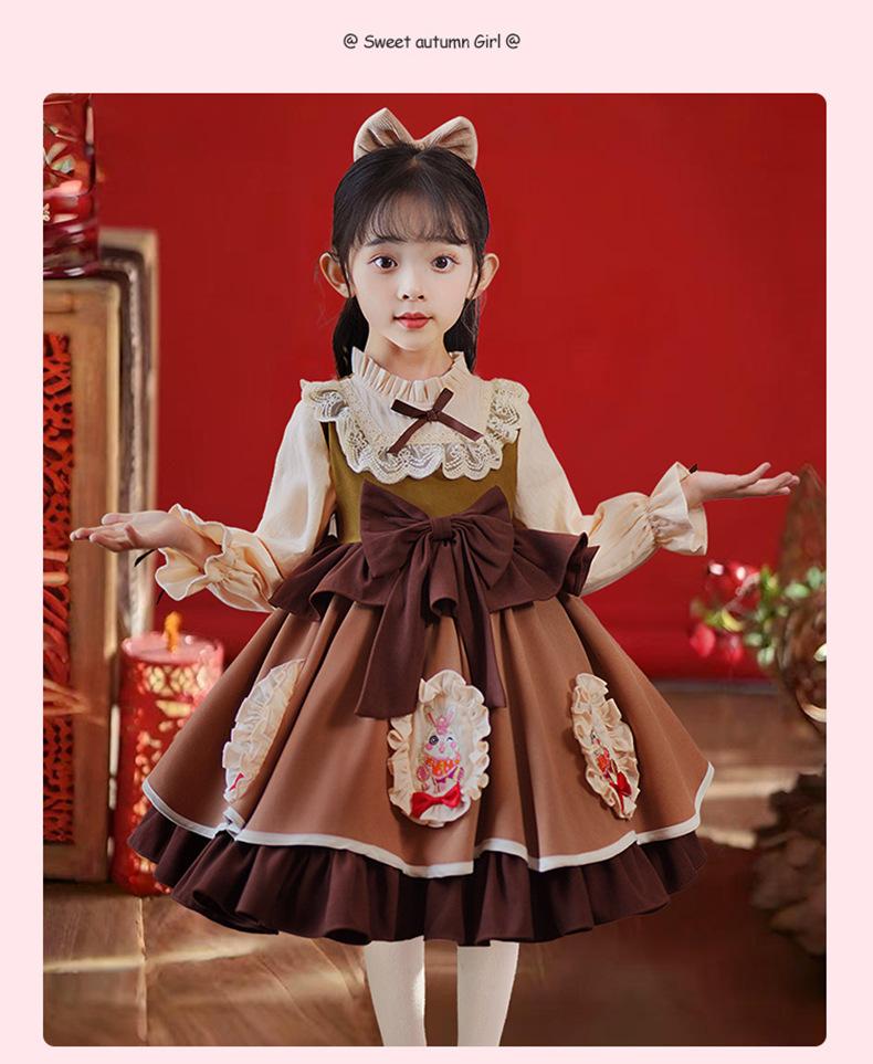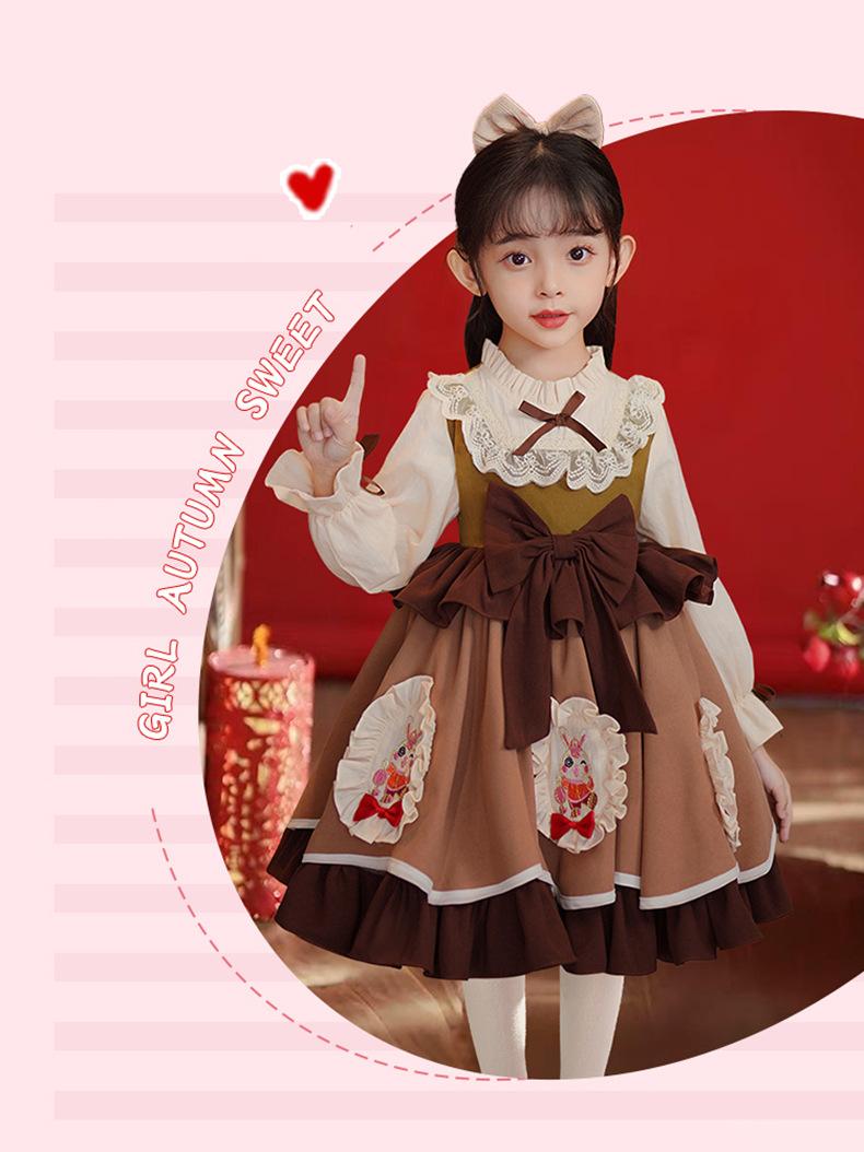 Vestido de Otoño e Invierno para Niñas Estilo Princesa 2025 Nueva Moda Lolita Ropa para Bebés y Niños Falda Elegante