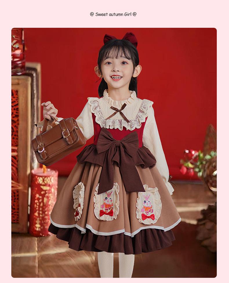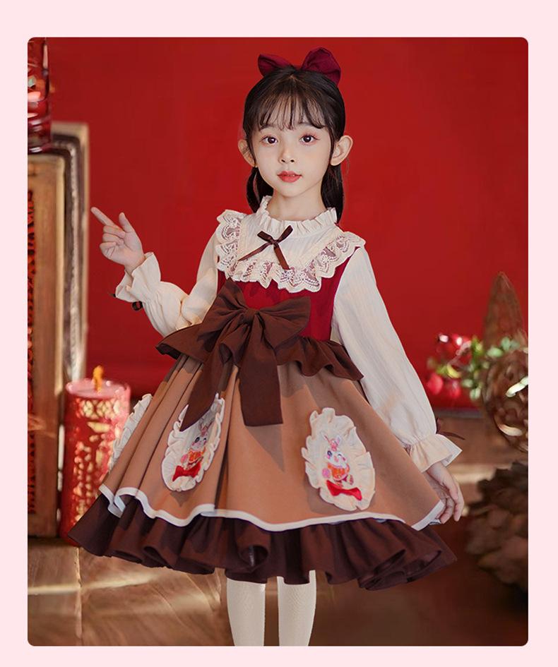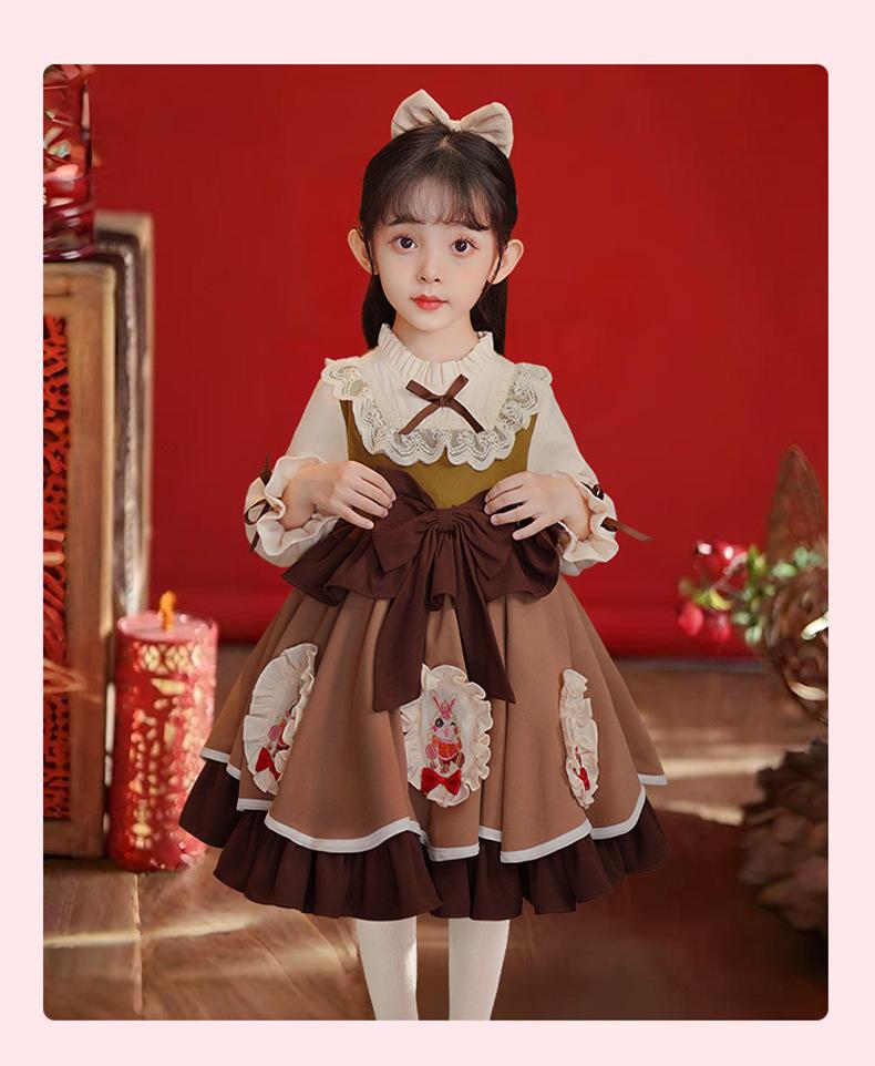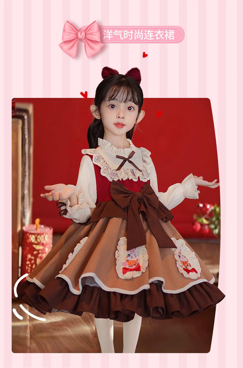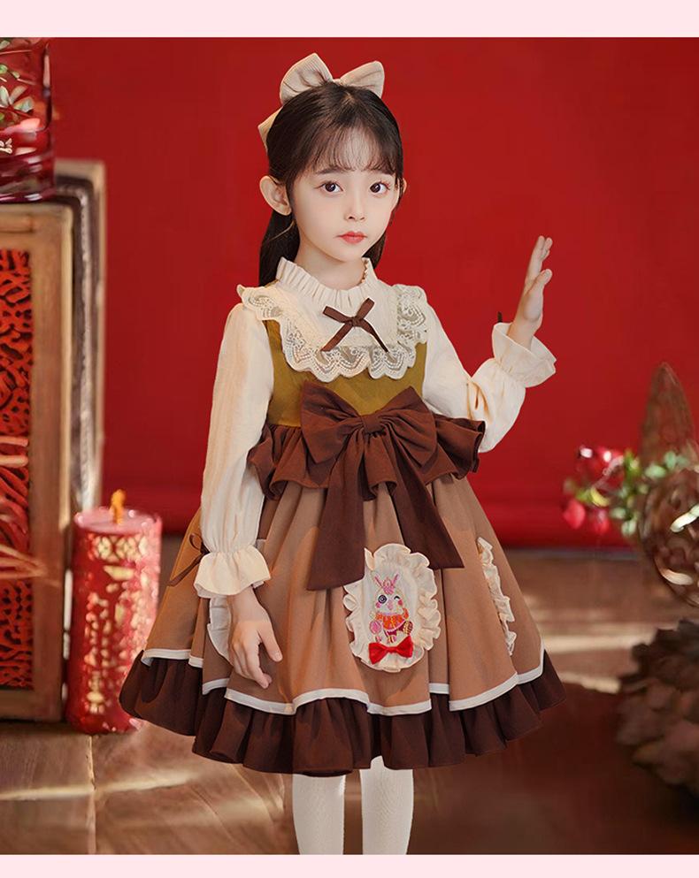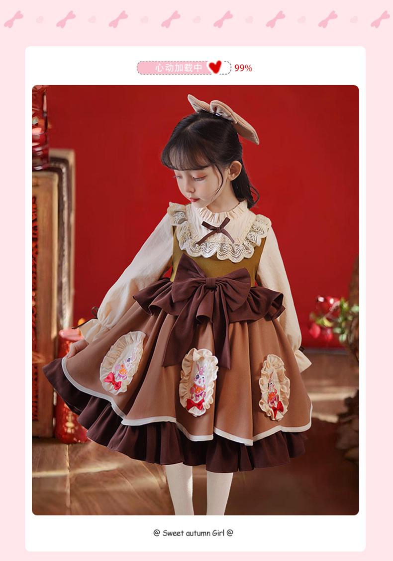Vestido de Otoño e Invierno para Niñas Estilo Princesa 2025 Nueva Moda Lolita Ropa para Bebés y Niños Falda Elegante