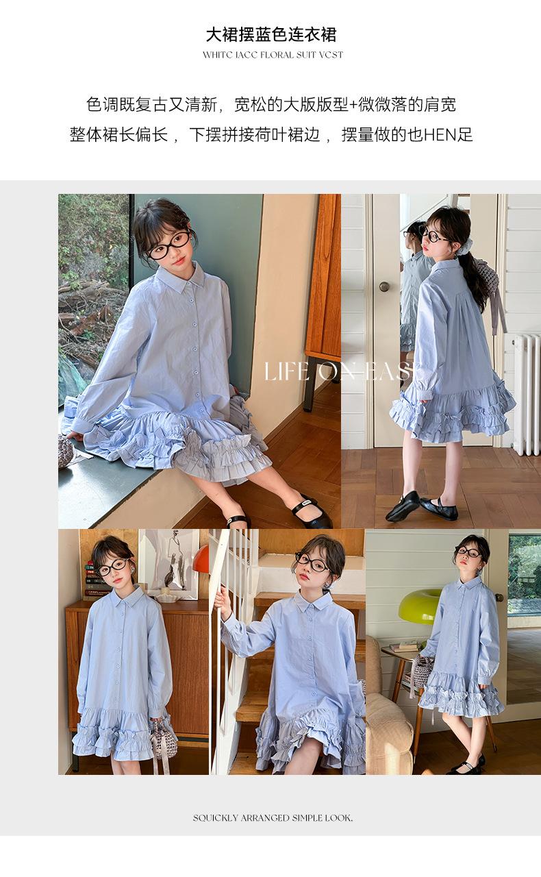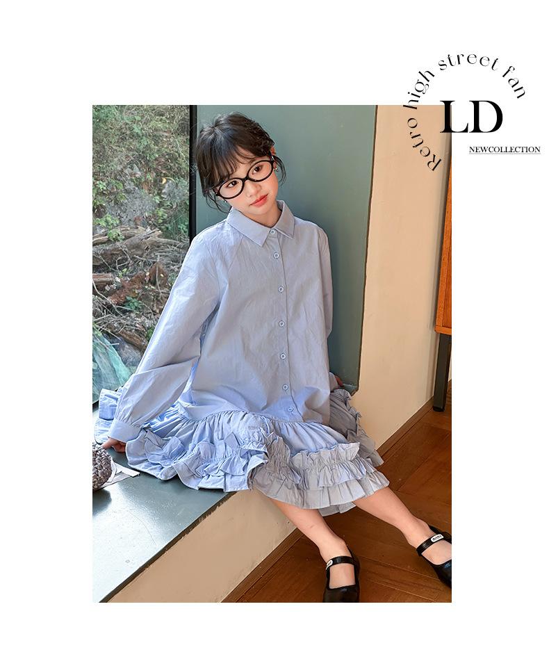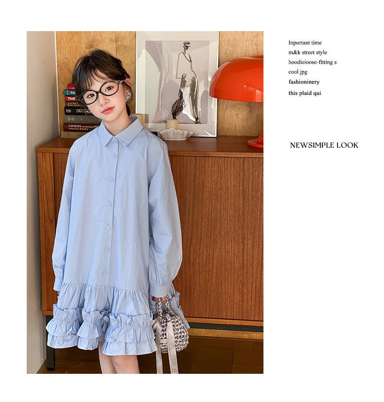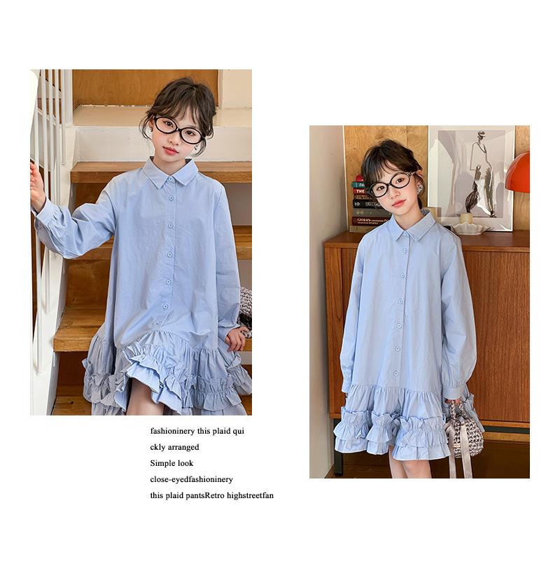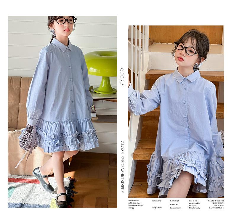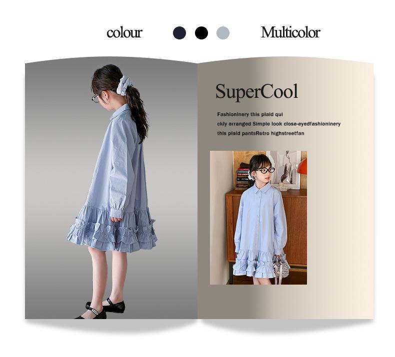 Vestido de Otoño de Manga Larga para Niñas 2025 Versión Coreana para Niños Mayores, Holgado Casual Moderno Encaje Dobladillo Grande Vestido Largo Trendy
