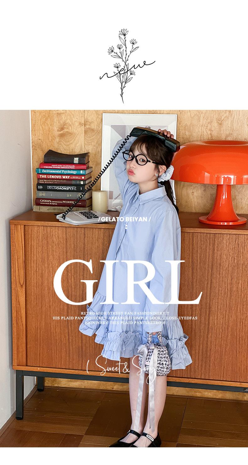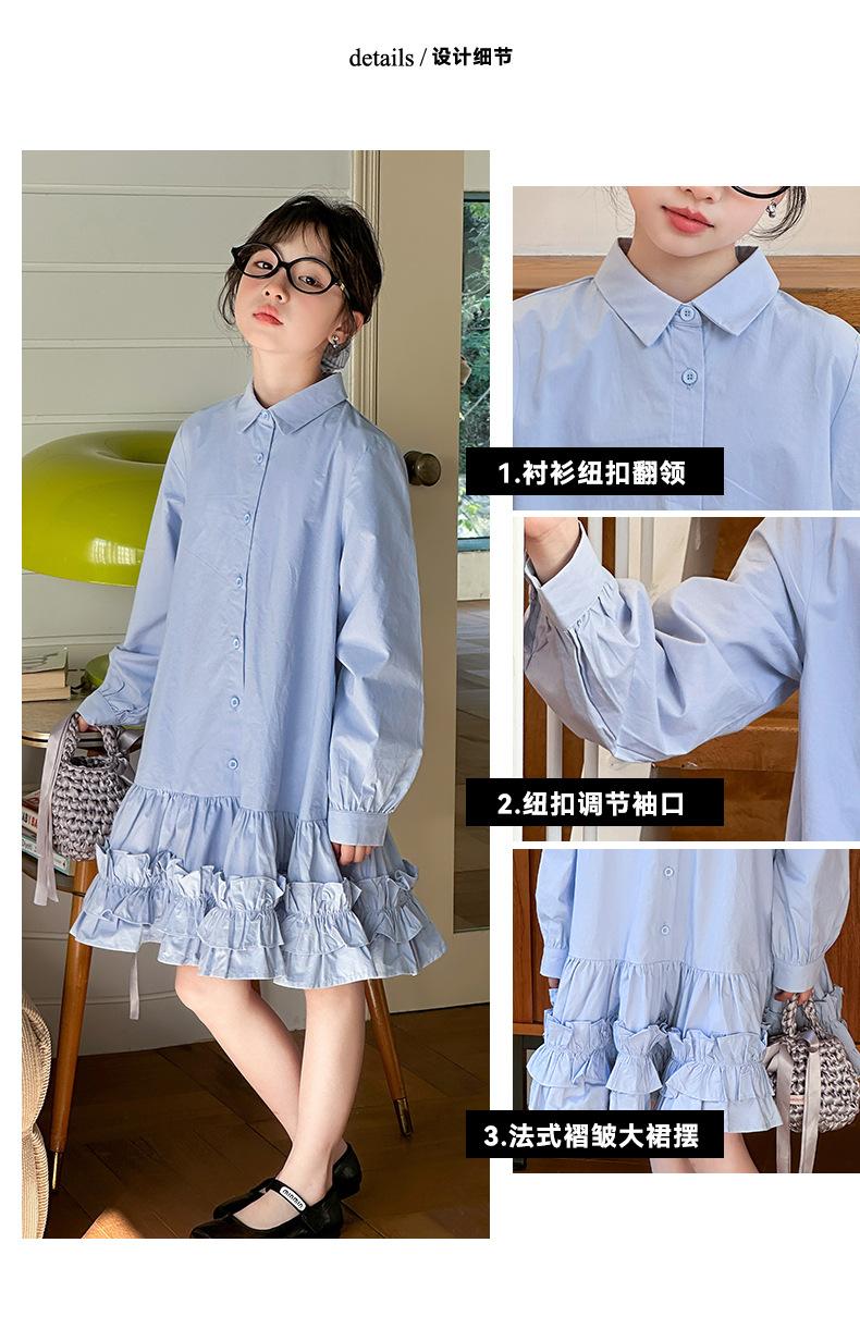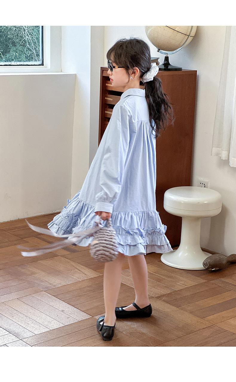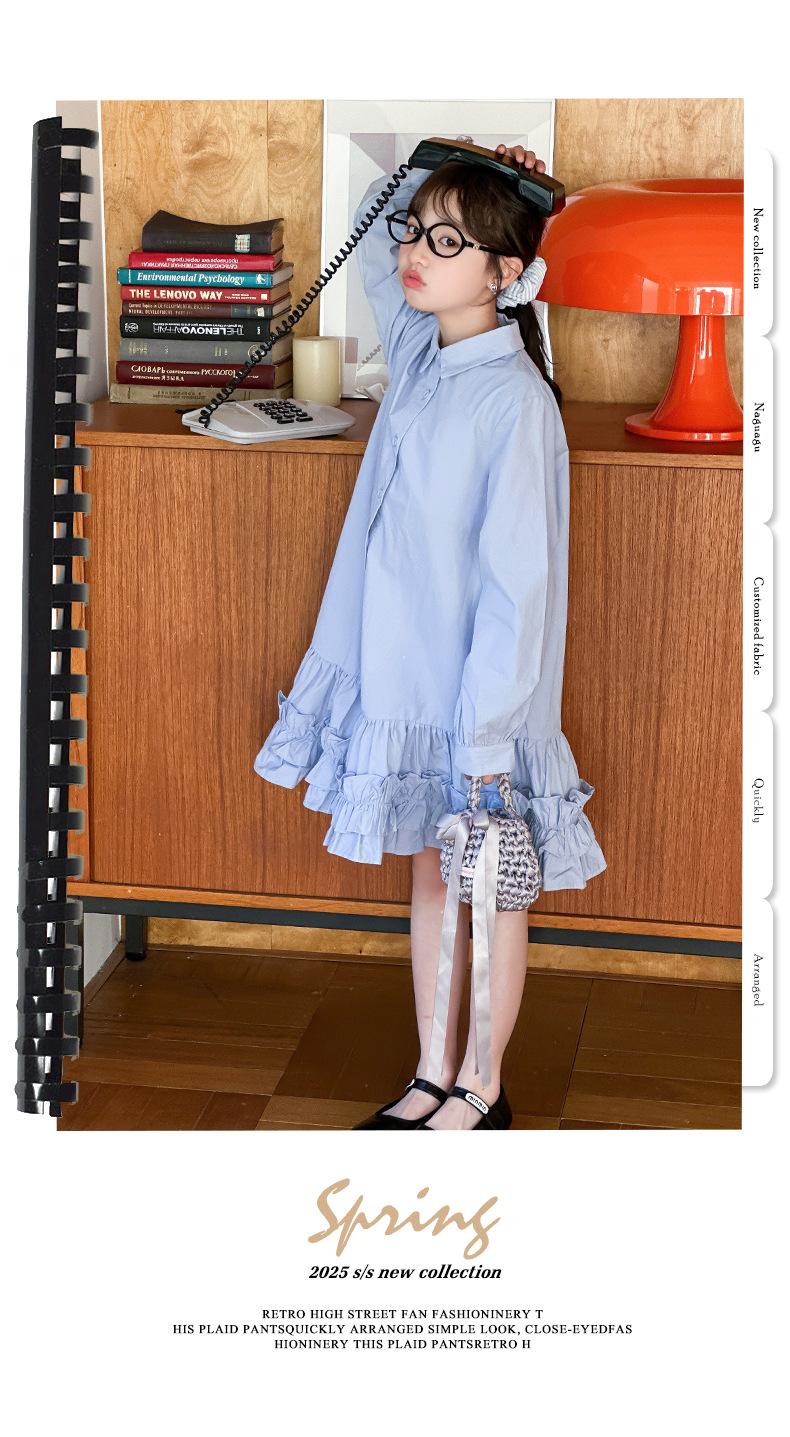 Vestido de Otoño de Manga Larga para Niñas 2025 Versión Coreana para Niños Mayores, Holgado Casual Moderno Encaje Dobladillo Grande Vestido Largo Trendy