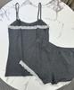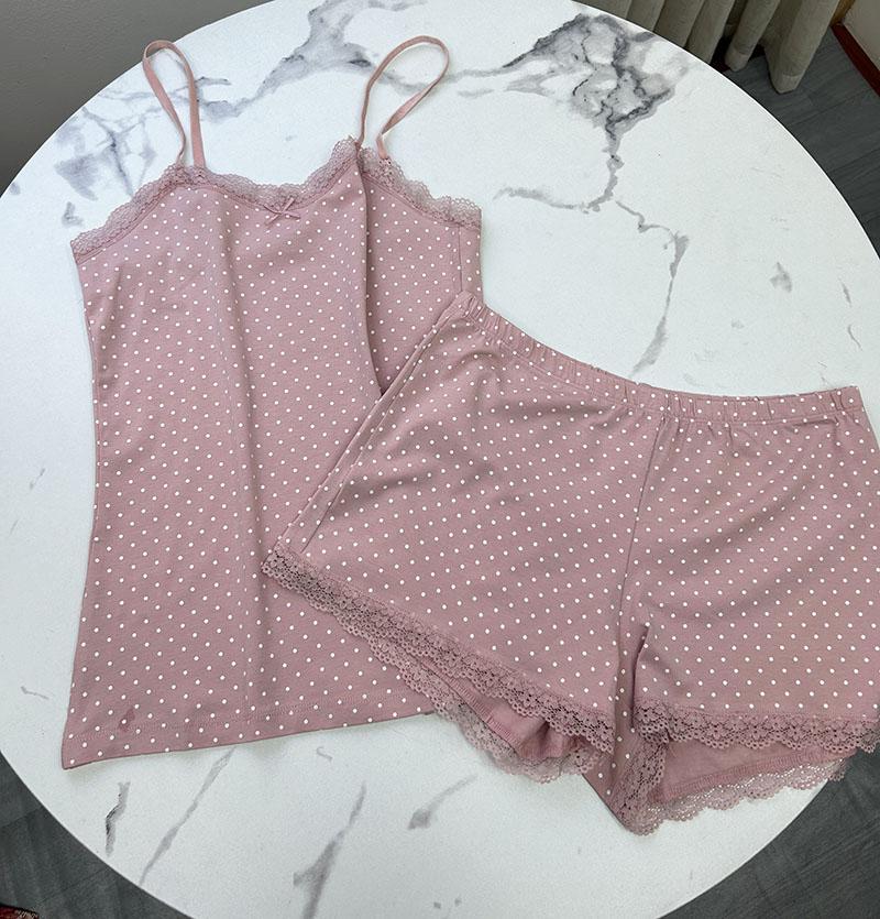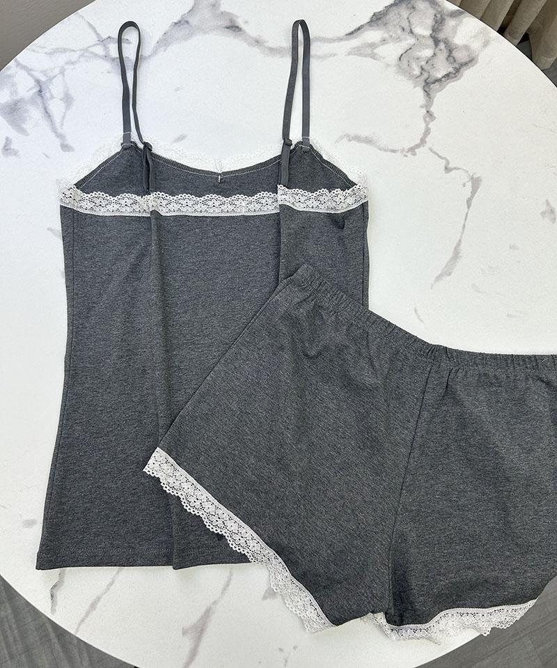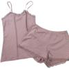 Conjunto de Dos Piezas de Camisola con Encaje de Verano y Shorts Pijama para Mujer Ropa de Casa