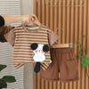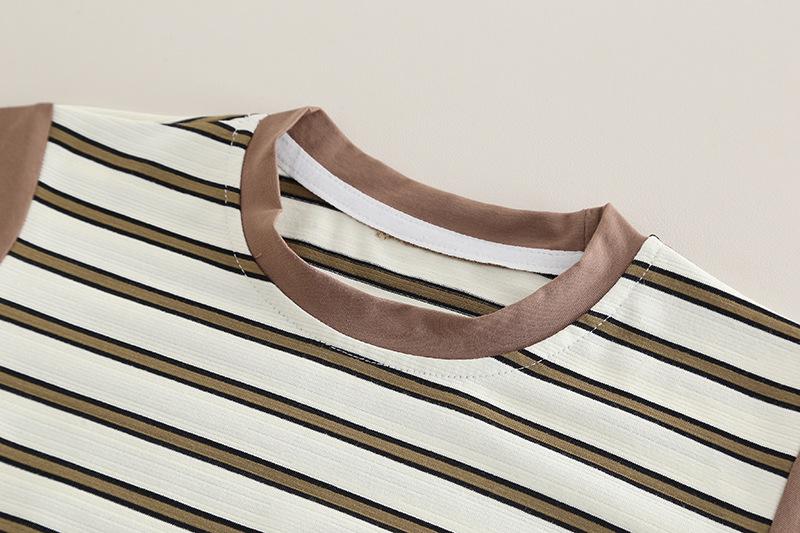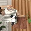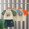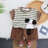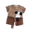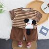 Traje de verano para niños 2025, nuevo estilo occidental, ropa de bebé de dibujos animados para niños, elegante traje de verano de manga corta de dos piezas a la moda.