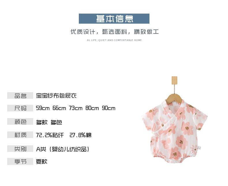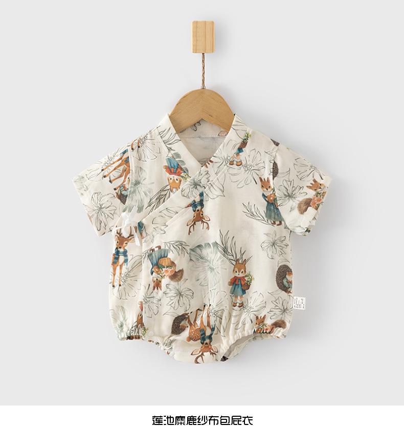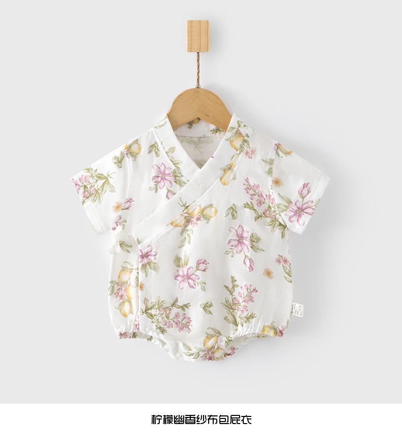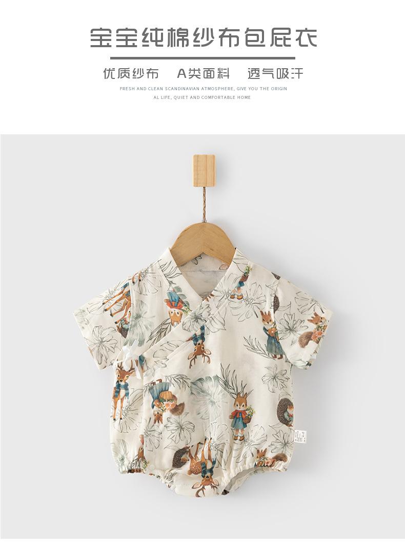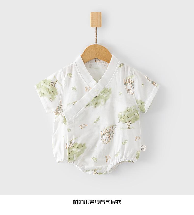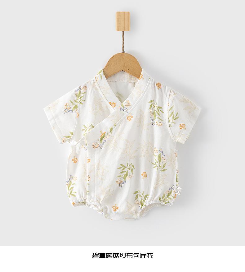 Mameluco de Gasa para Bebé Estilo Verano Ultradelgado Traje Triángulo para Bebé para Gatear Mameluco de Manga Corta Traje de Monje para Recién Nacido