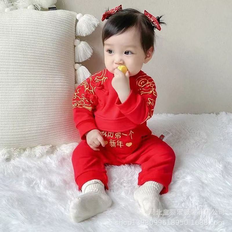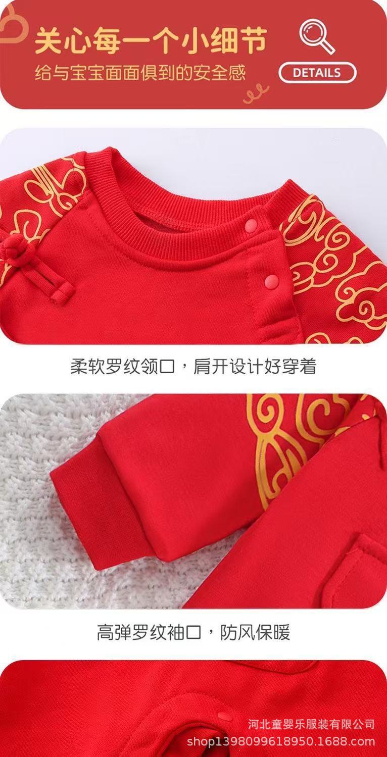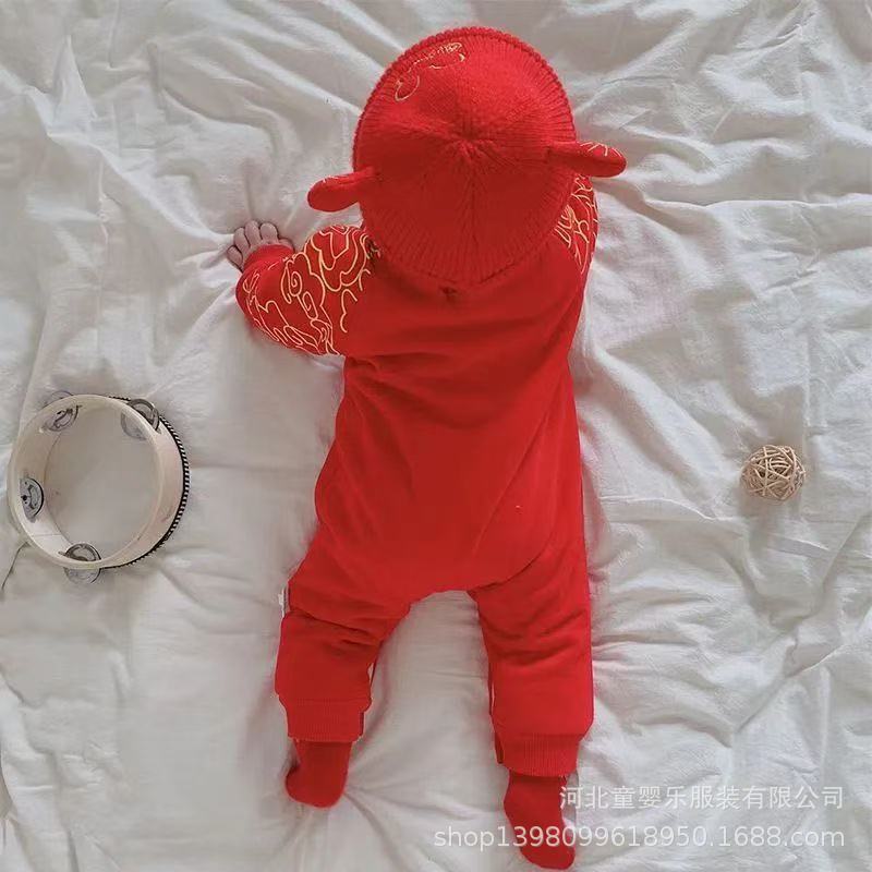 Ropa de bebé Primavera y otoño Mono de bebé Ropa de feliz año nuevo Estilo nacional Ropa roja de año nuevo Mono de bebé
