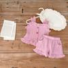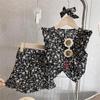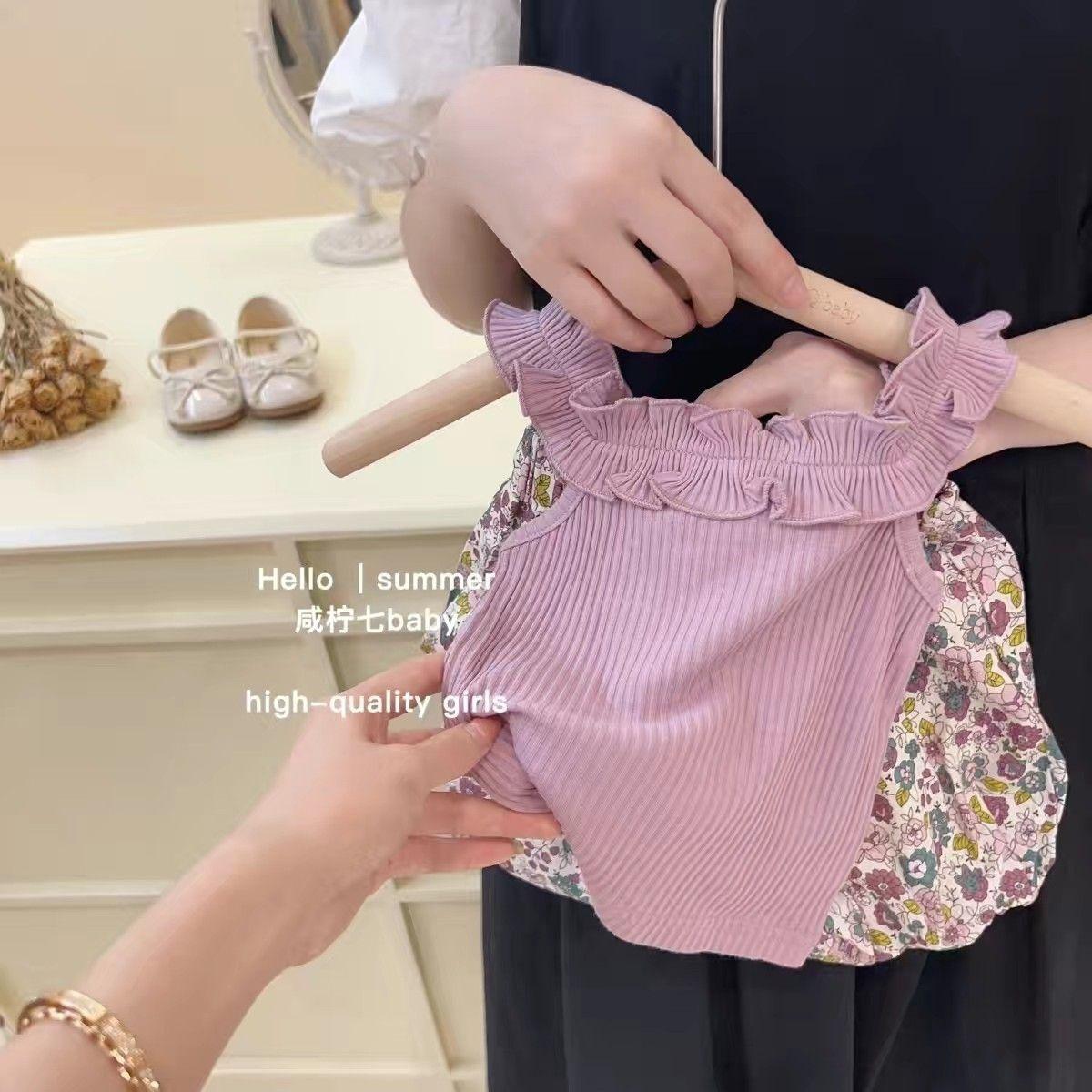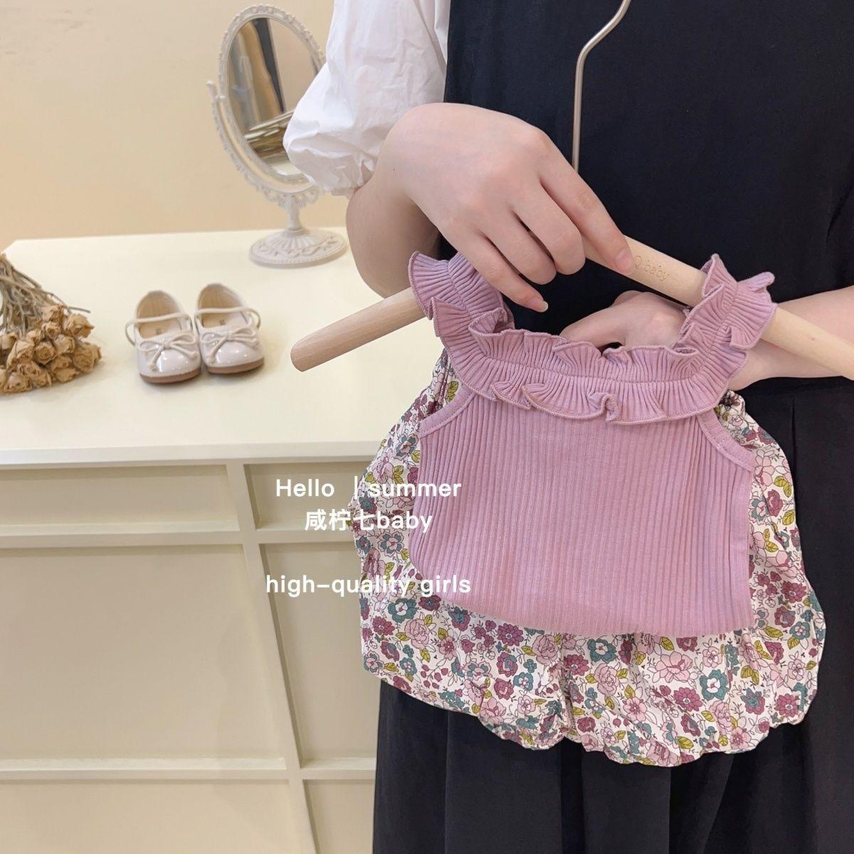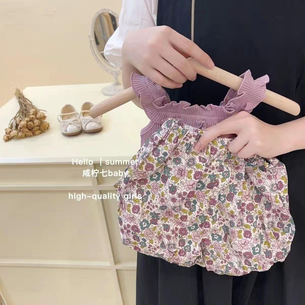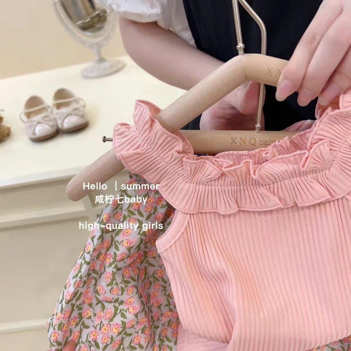 Traje de verano para niñas, elegante, personalizado, de marca de moda, estilo coreano, chaleco de encaje dulce, pantalones cortos con capullos de flores
