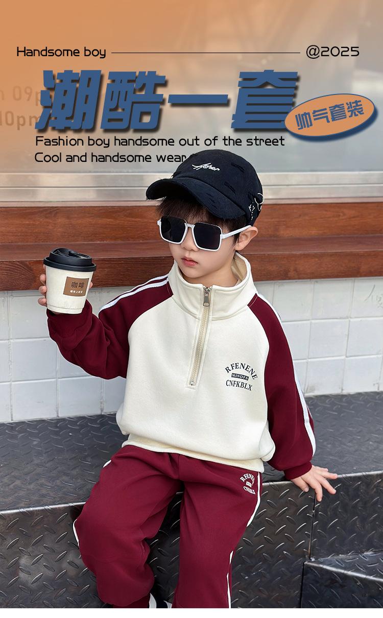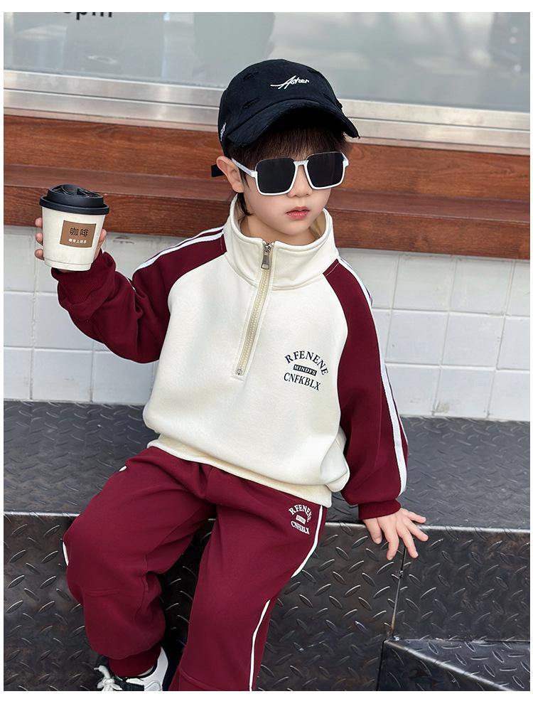 Conjunto deportivo de dos piezas con cuello y media cremallera a juego para niño, novedad de 2025, ropa informal para bebé.