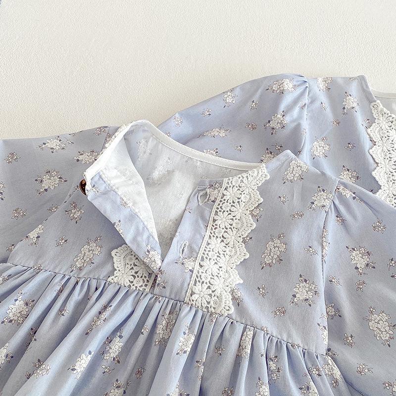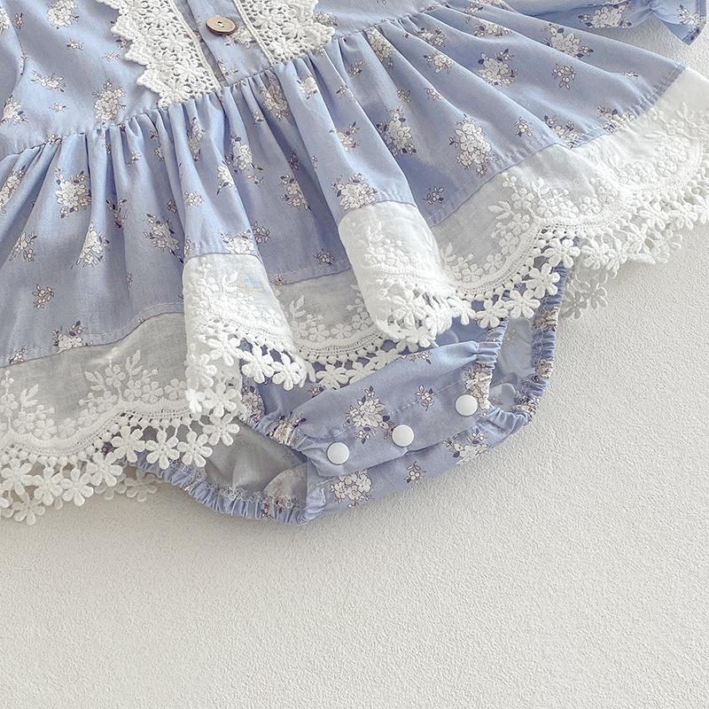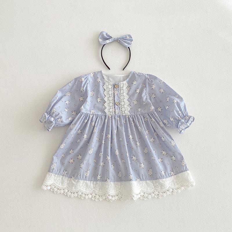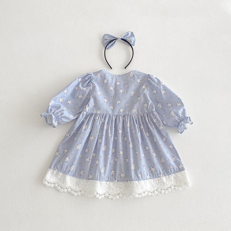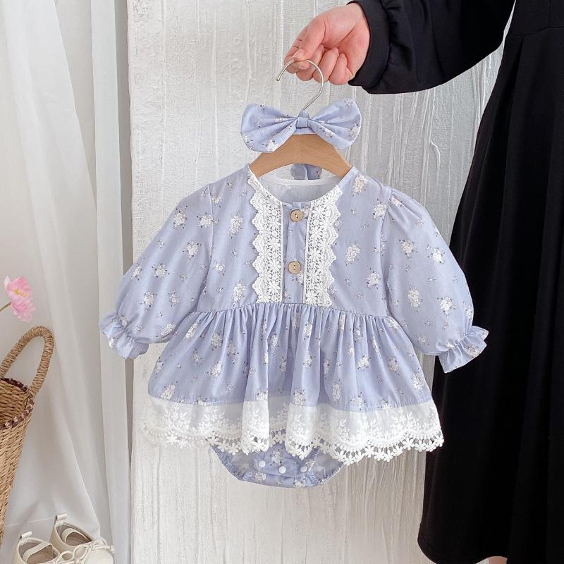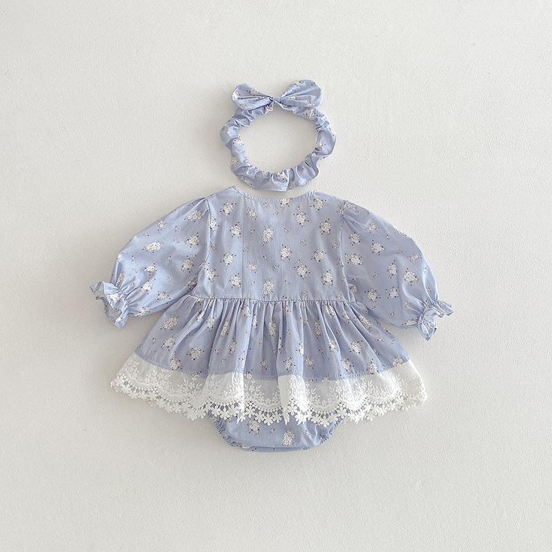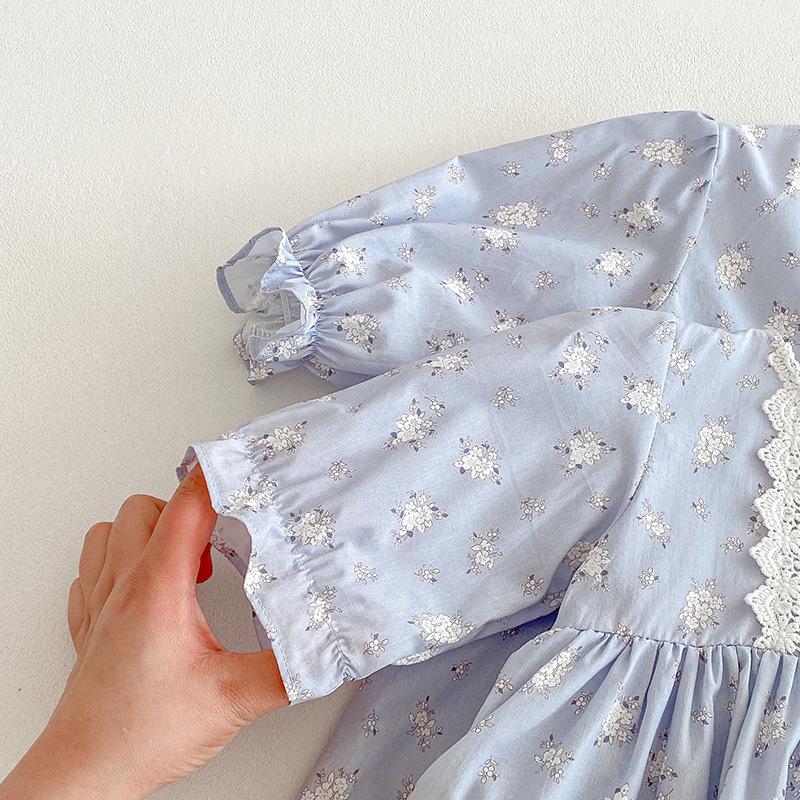2025 Otoño Nuevo Bebé Niña Manga Larga Mameluco Vestido Azul Conjunto a Juego de Hermanas