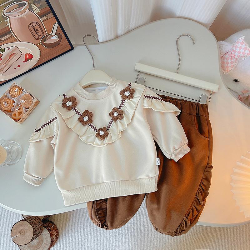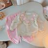 Long-sleeved two-piece floral sweater brown, Long-sleeved flower sweater two-piece pink