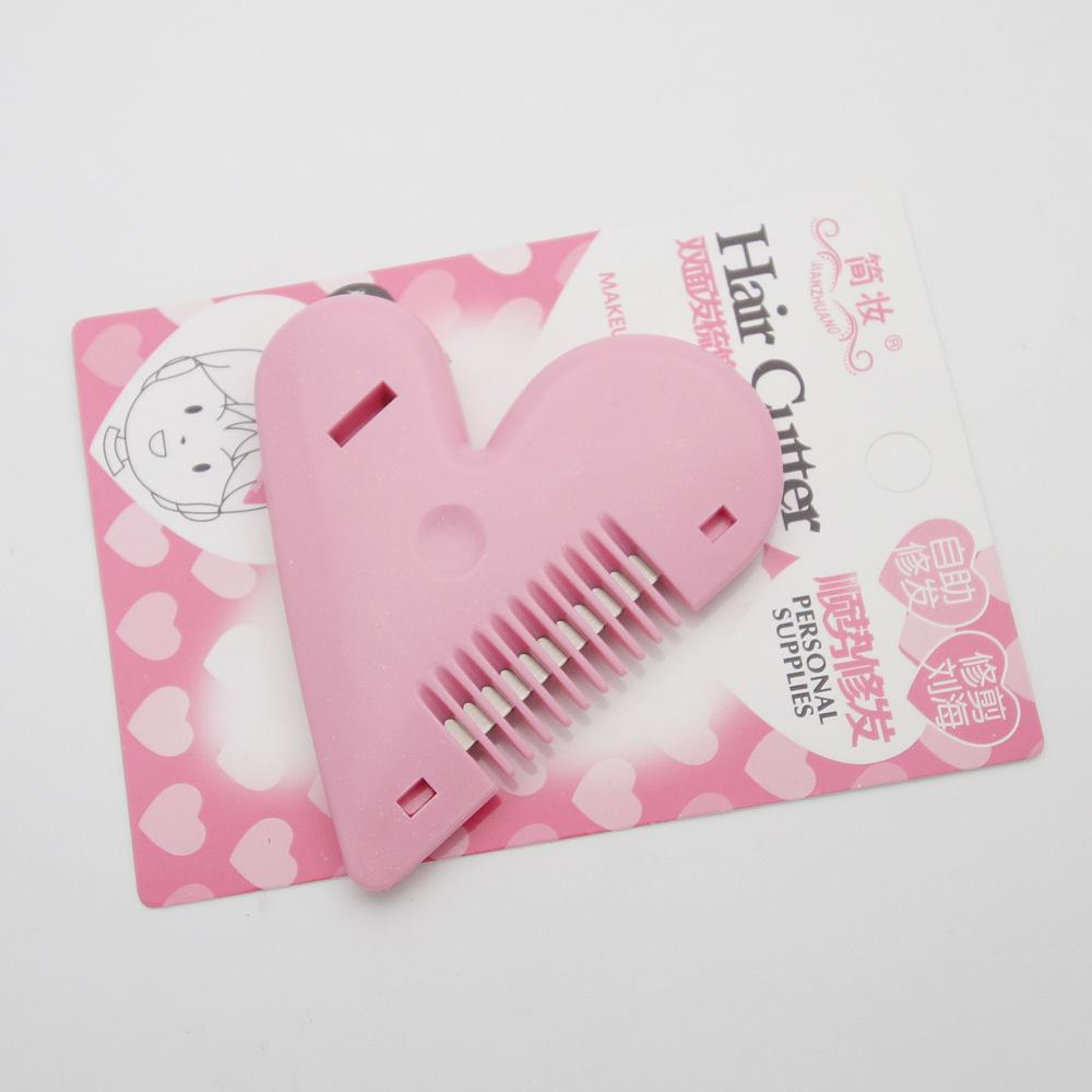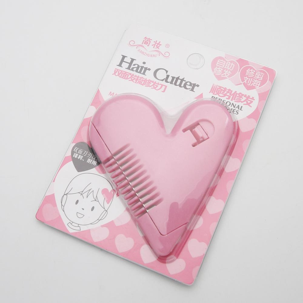 Compra Peine de doble cara con forma de corazón para maquillaje sencillo, cuchillo para recortar el cabello, recorte de flequillo de autoayuda, punta removedora para adelgazar el cabello, herramienta para puntas abiertas al por mayor en Joom.pro
