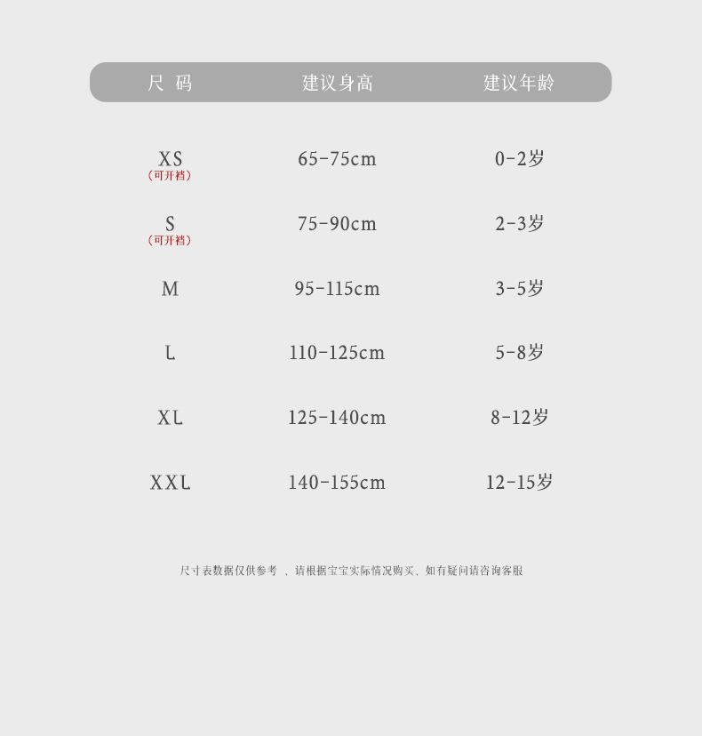 M (recommended height 95-105cm), L (recommended height 105-120cm), Xl (recommended height 120-140cm), Xxl (rec...