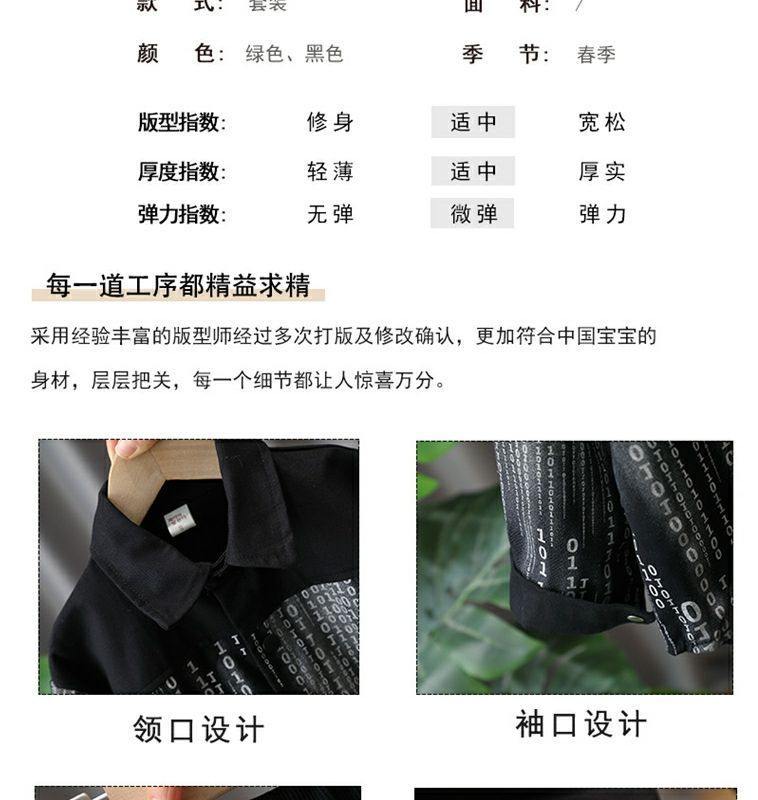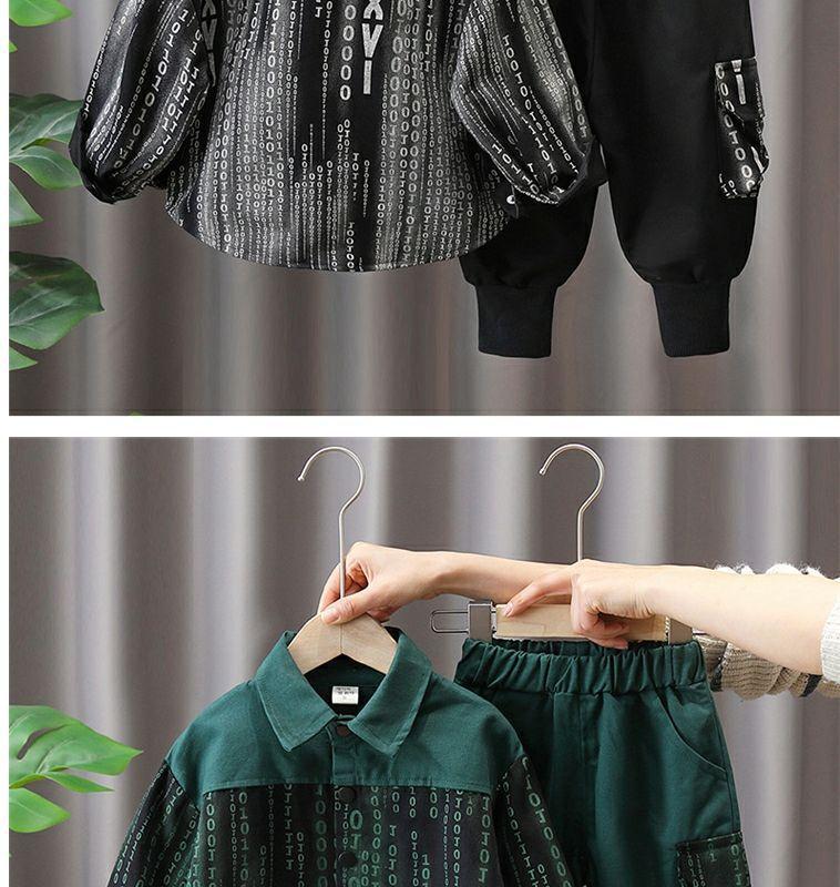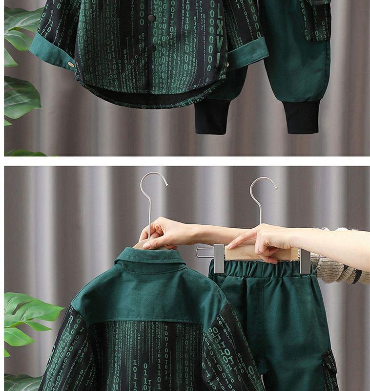 Boy's dark green printed stitching suit, Boy's Black Printed Patchwork suit