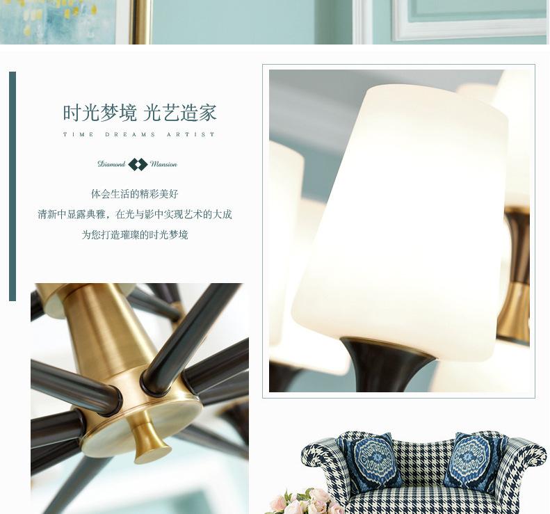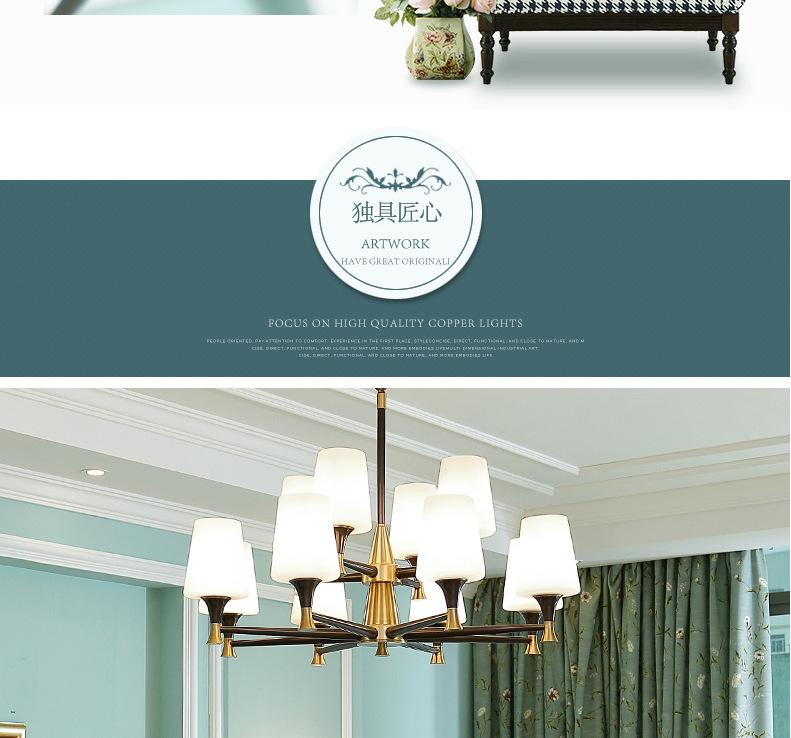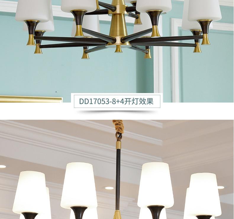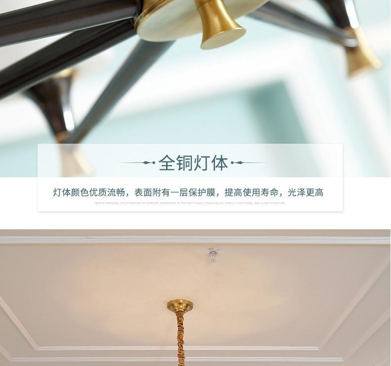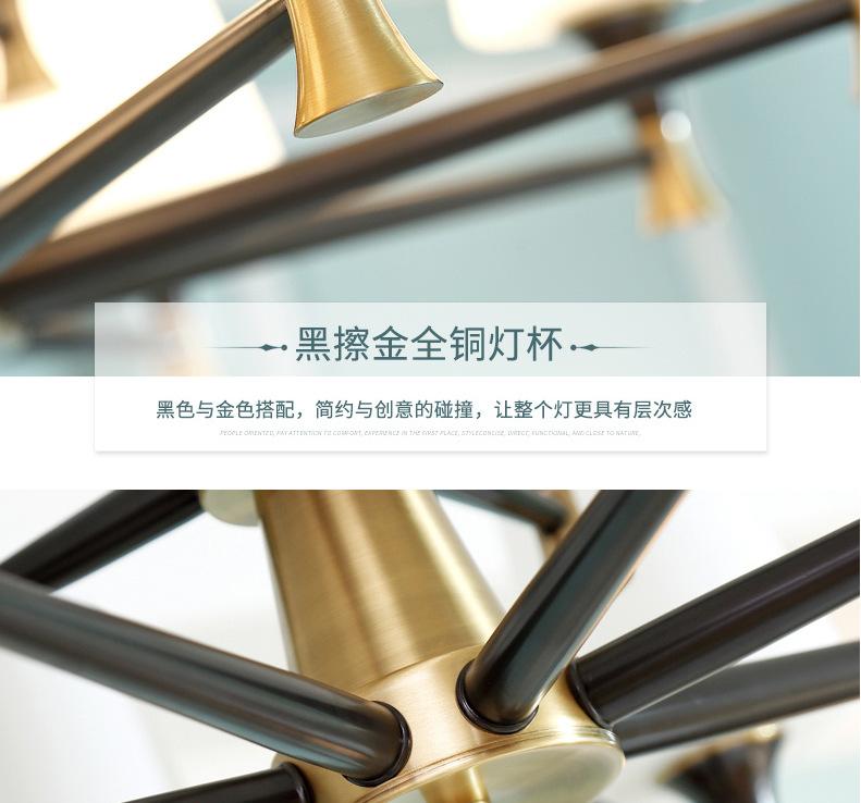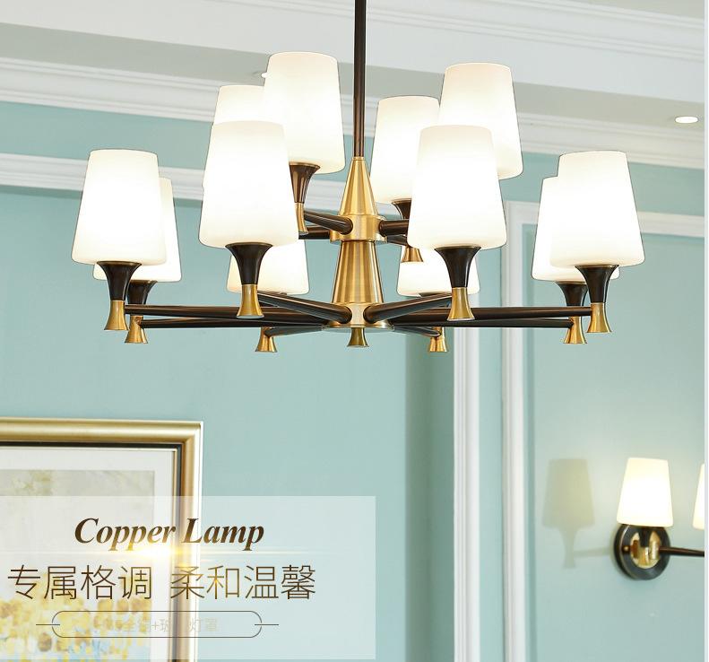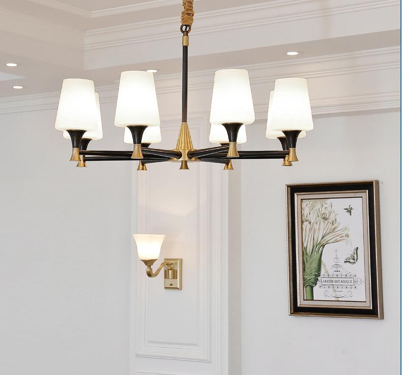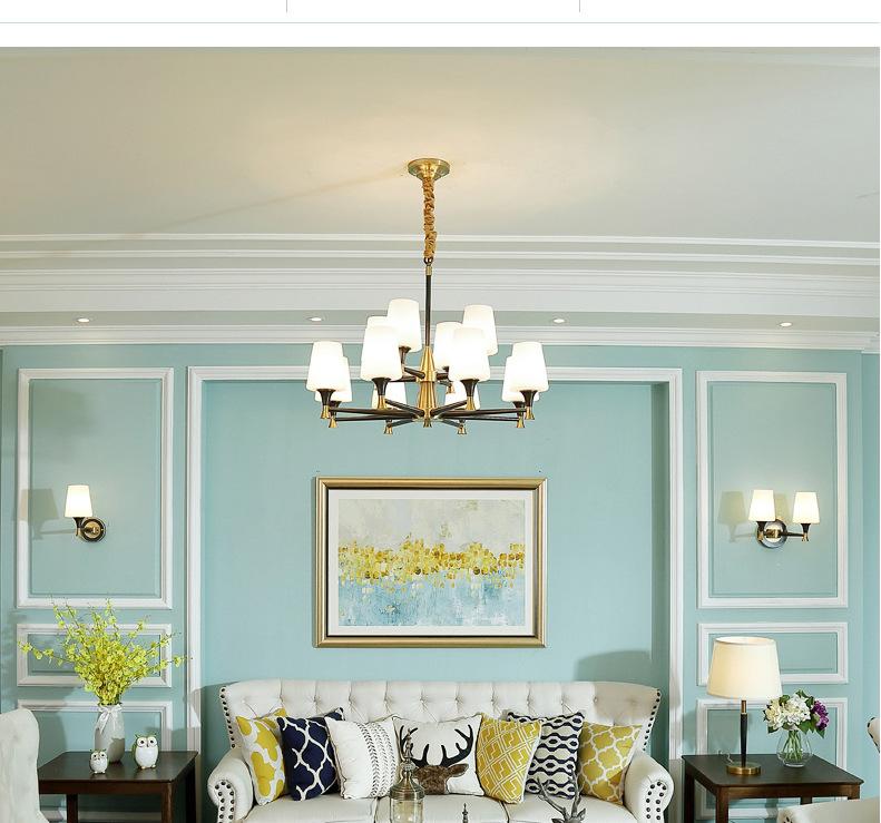 Lámpara de araña de cobre vintage para sala de estar, lámpara de cobre negra, estilo americano, sencilla, para dormitorio y comedor, lámparas de atmósfera nórdica.
