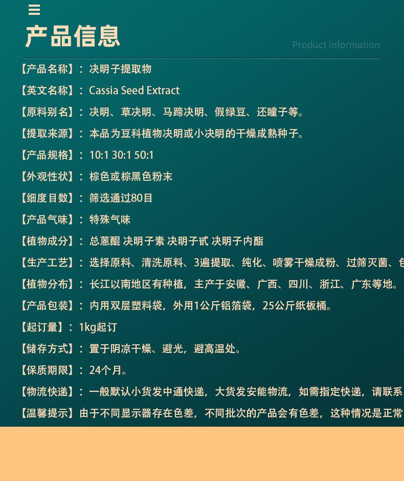 Cassia seed extract 10:1, Cassia seed extract 30:1, Cassia seed extract 50:1