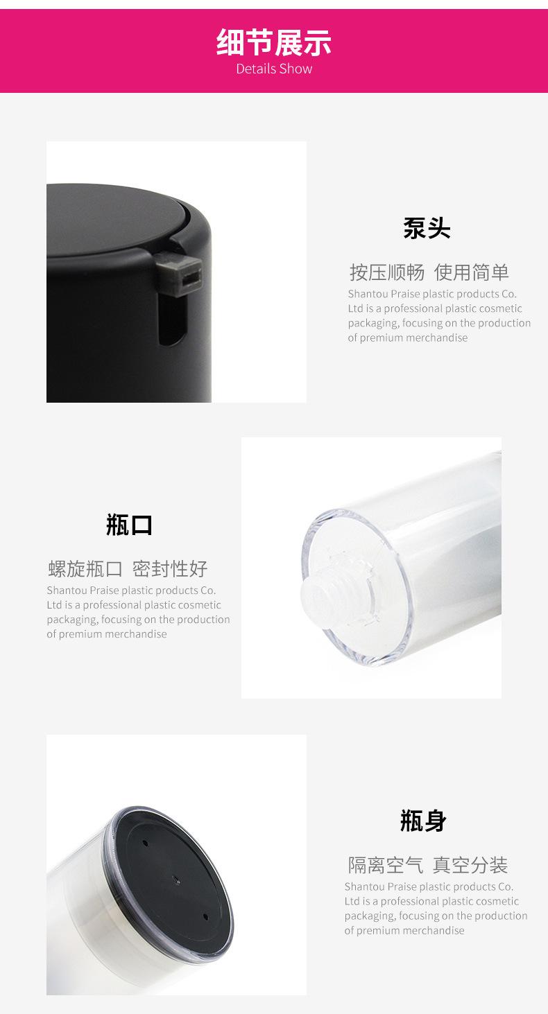 Compra Envase de productos para el cuidado de la piel, botella de vacío redonda transparente de 50 g, botella de plástico doble con bomba para loción, botella para base líquida al por mayor en Joom.pro