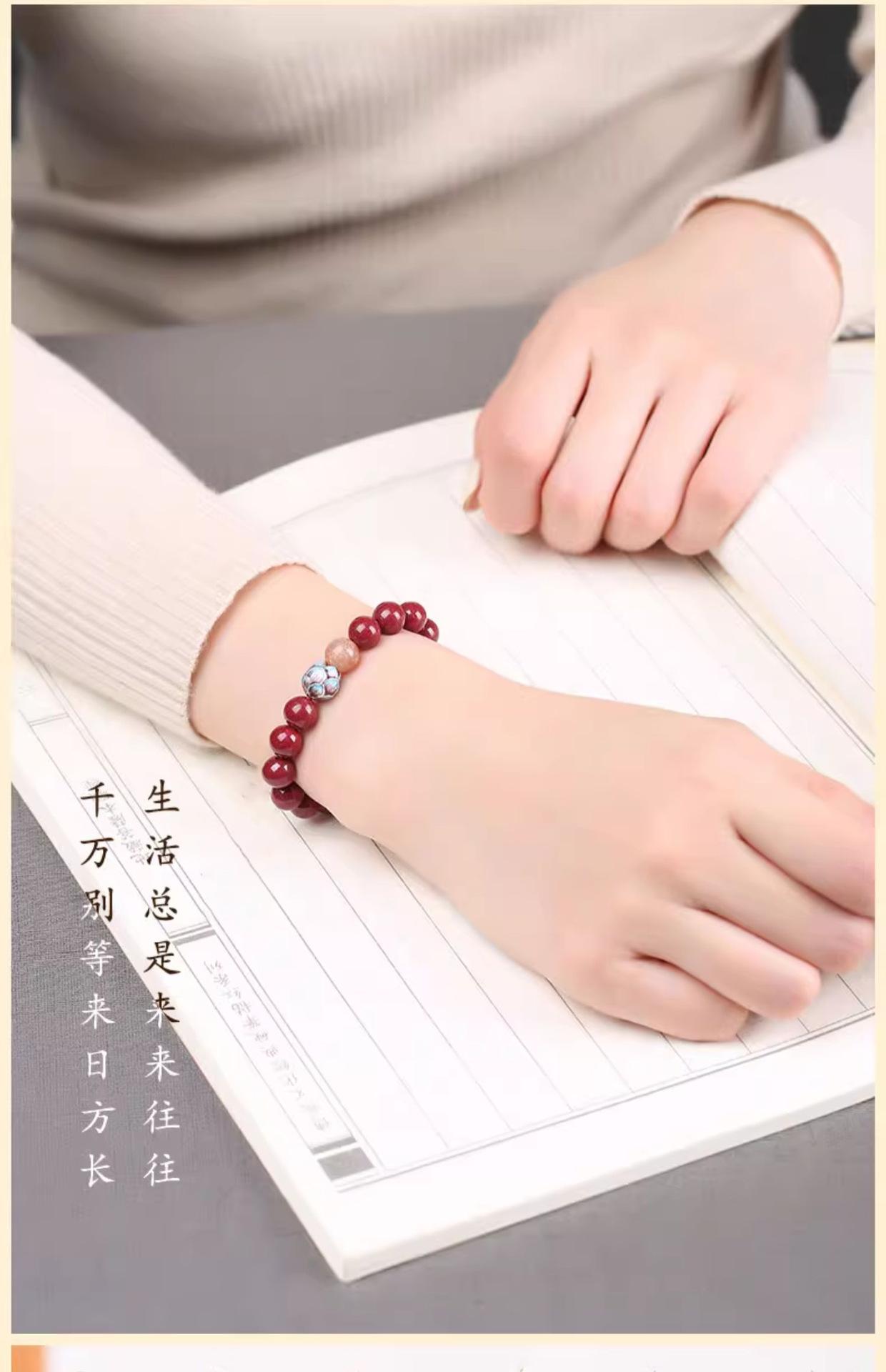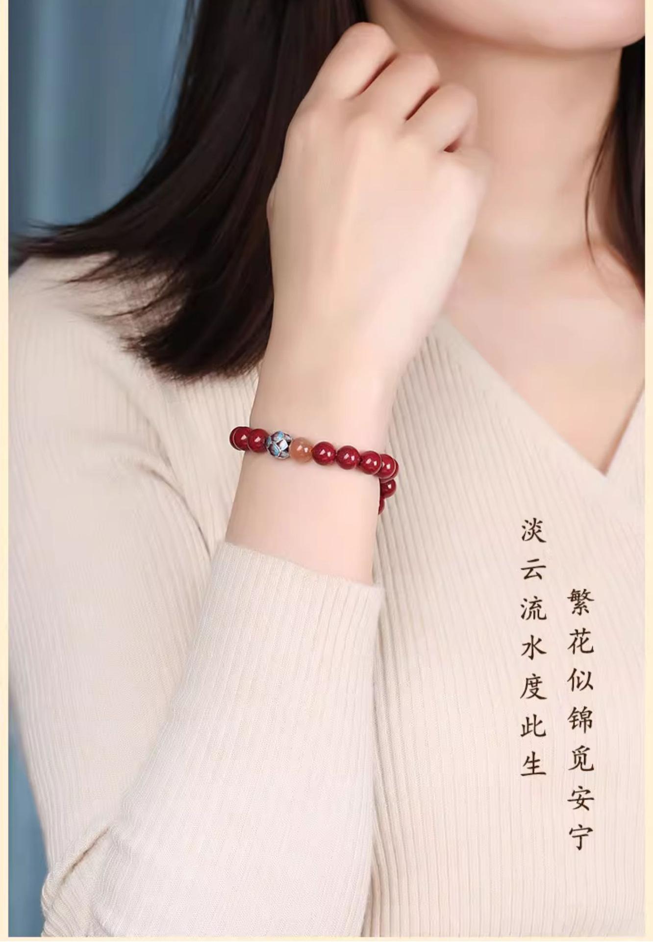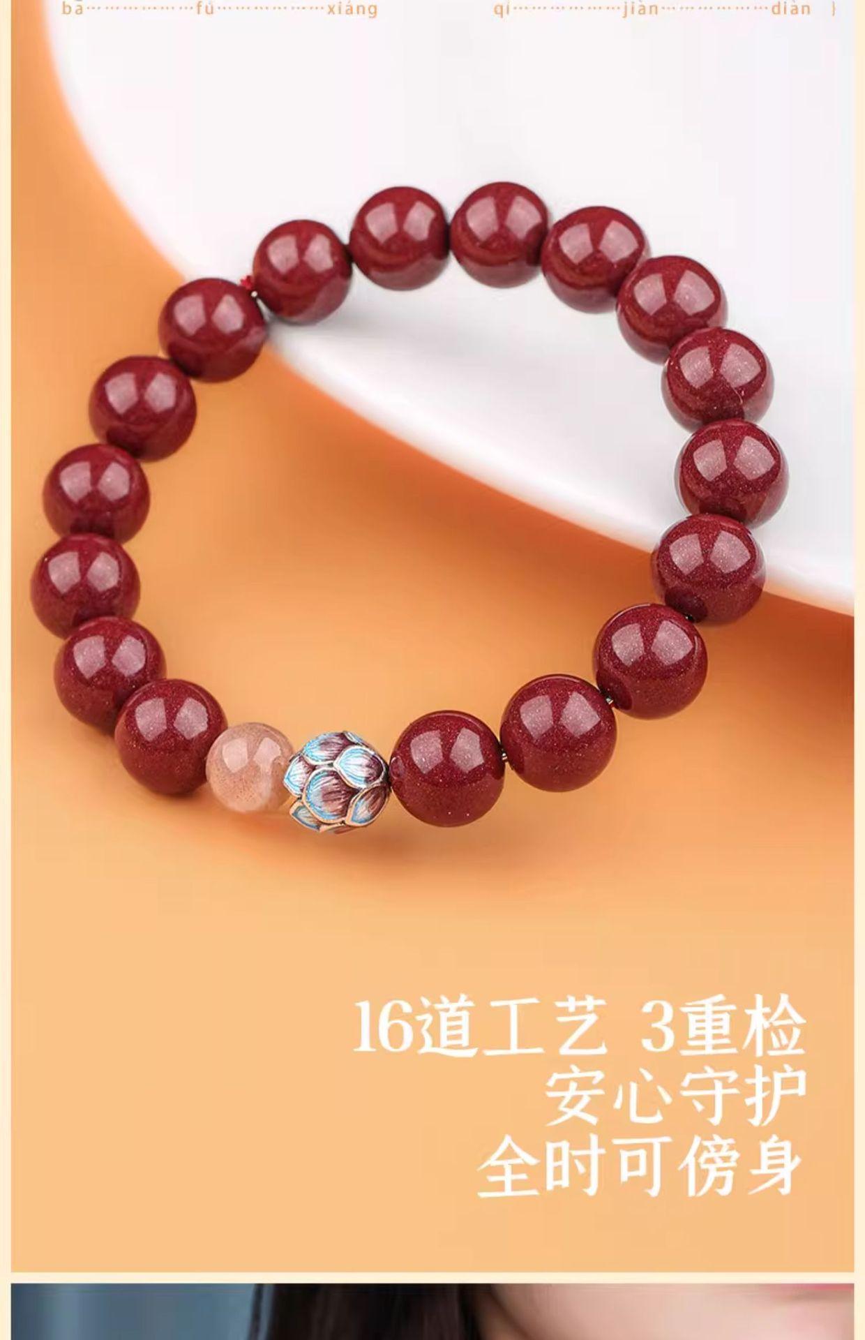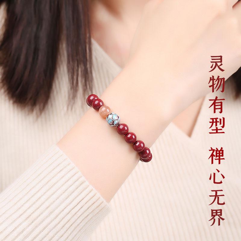 Pulsera de cinabrio para mujer, oro morado, mineral crudo, este año de vida, pulsera de cinabrio, cuenta de Buda, corazón transparente, regalo del Festival del Medio Otoño, moda