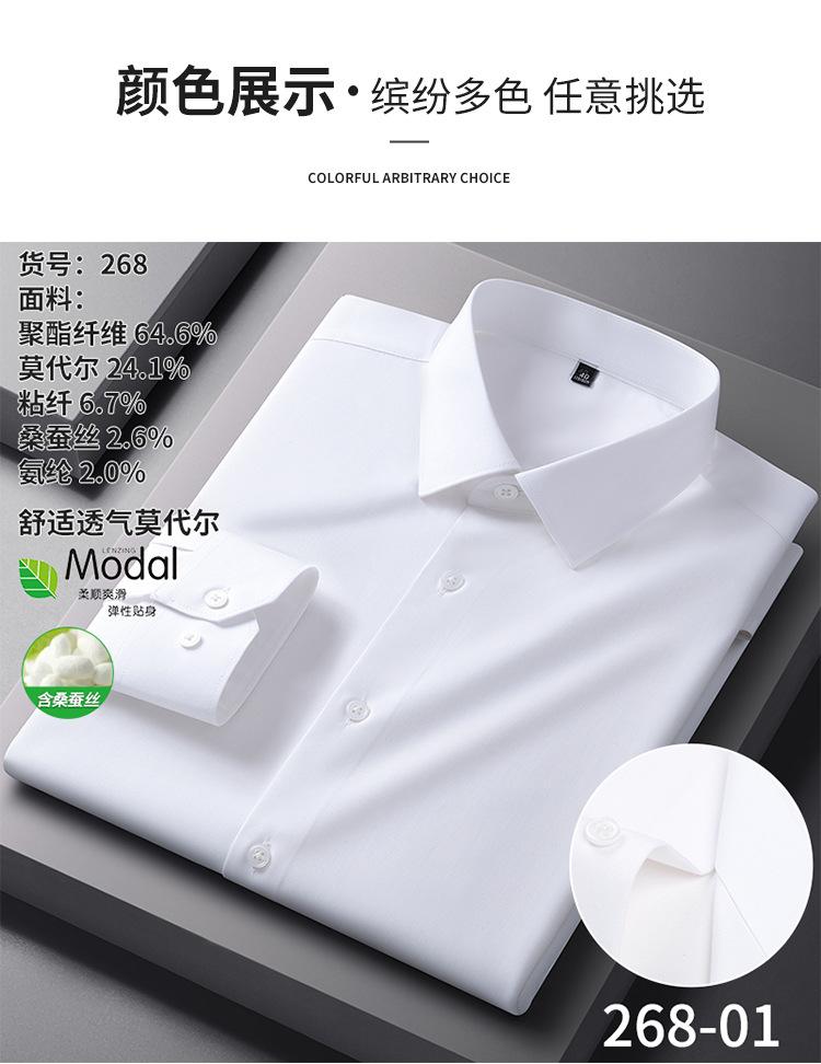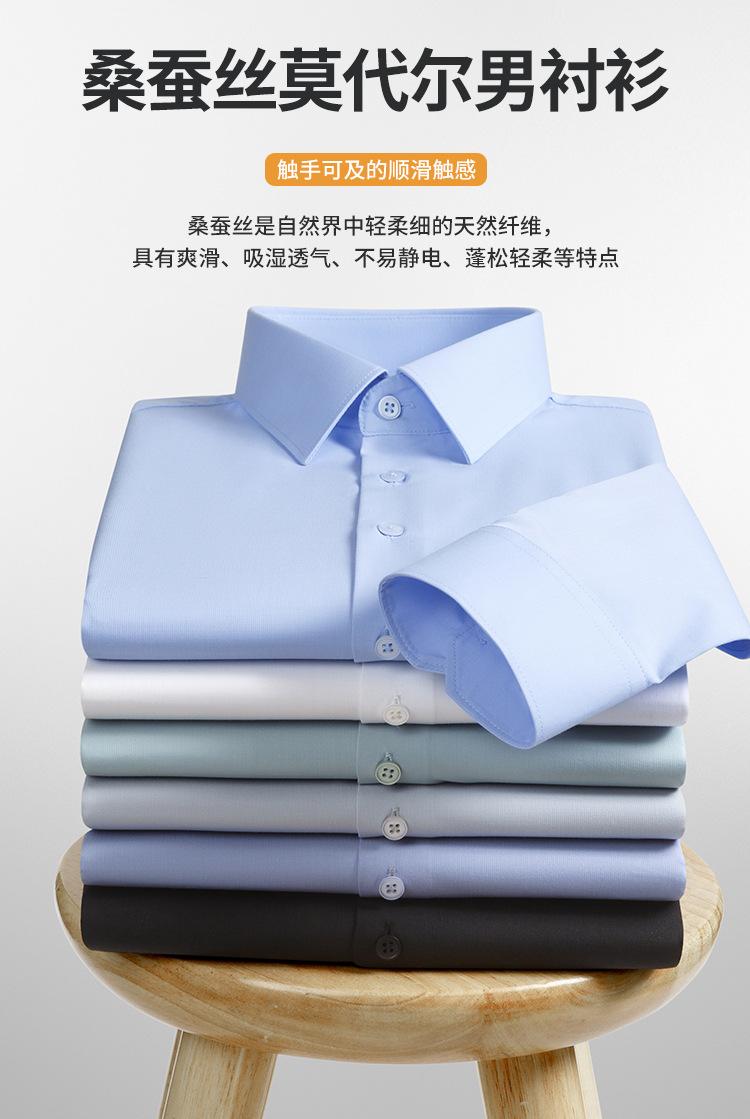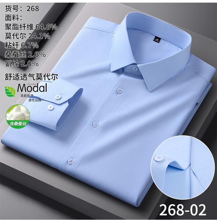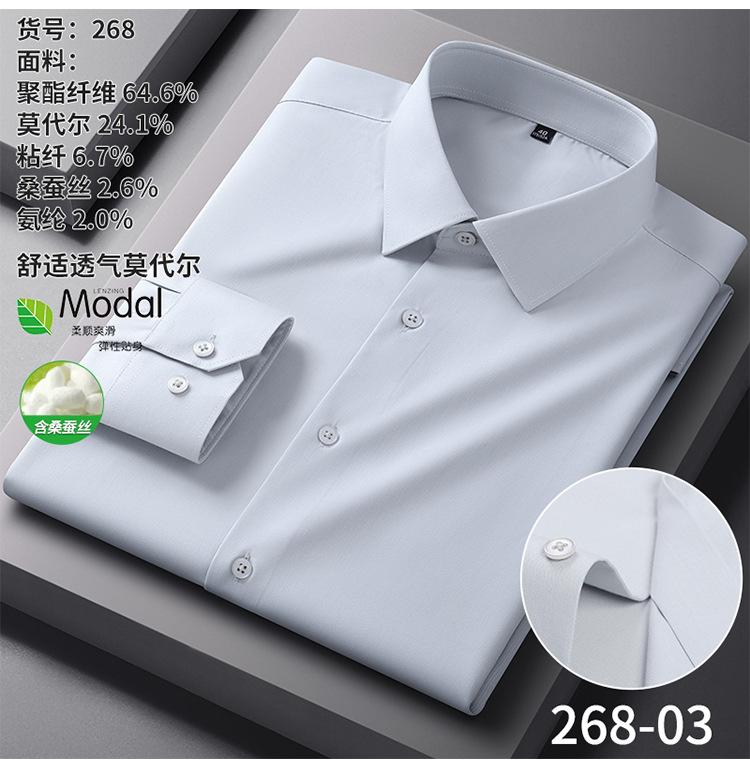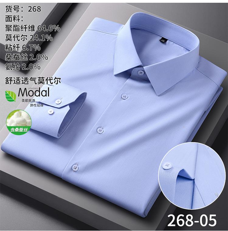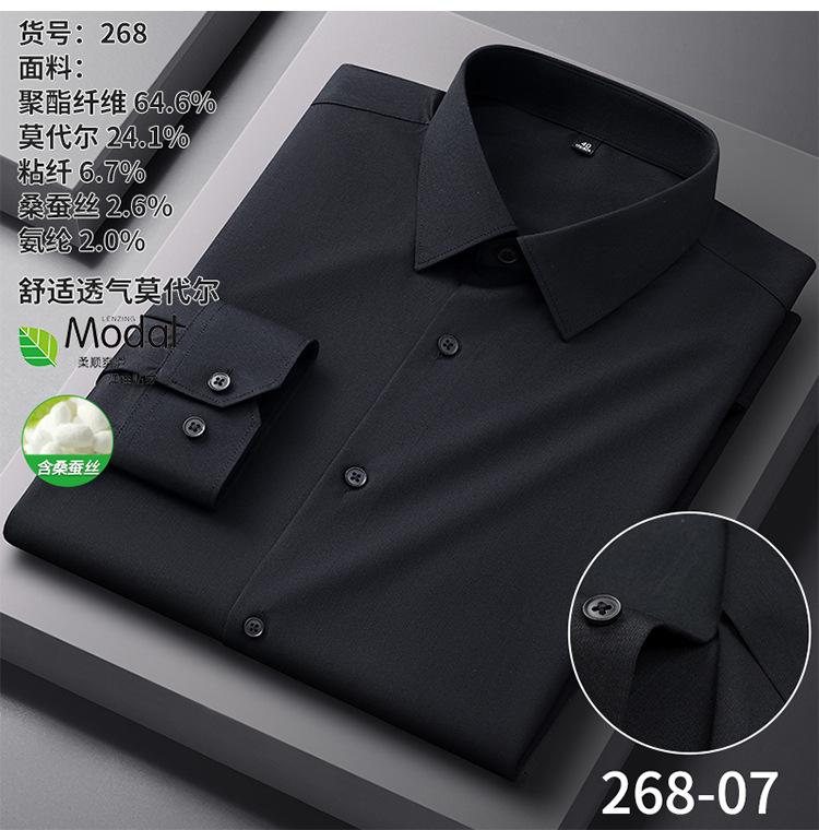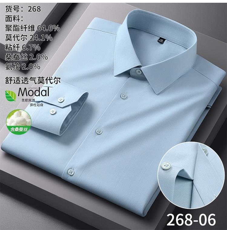 Camisa de manga larga de primavera y otoño para hombre, camisa de seda morera modal sin planchado, camisa de negocios para hombre de todo fósforo.