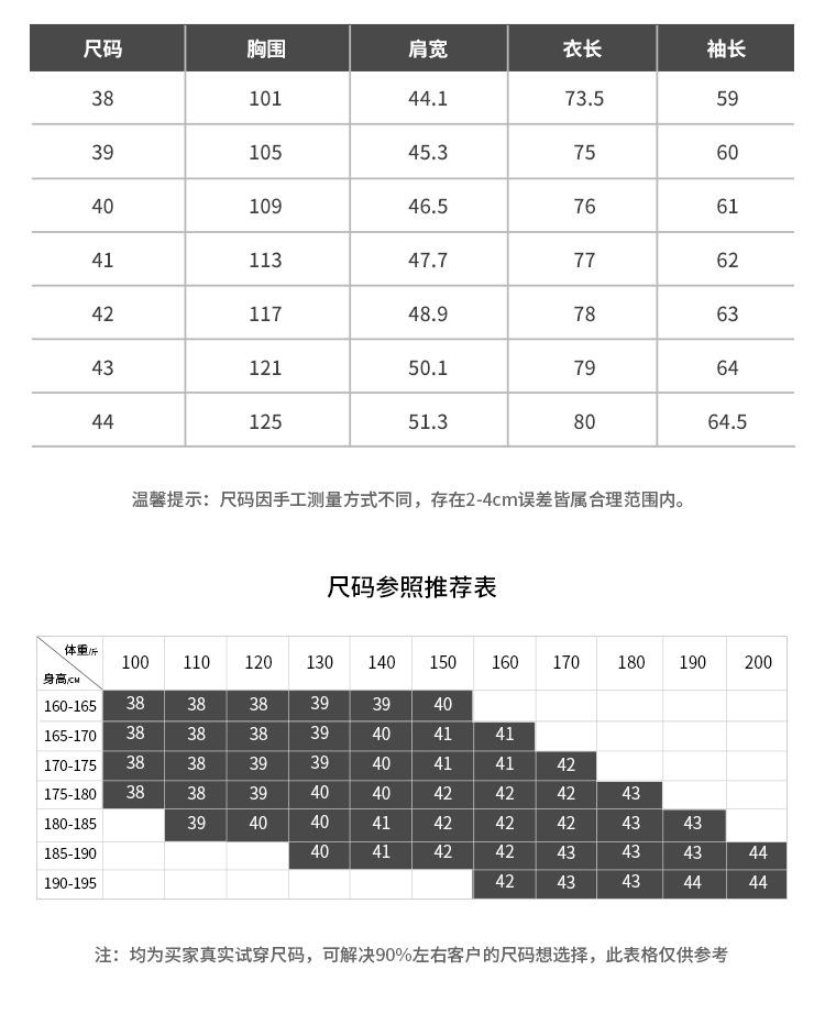 38/S, 39/M, 40/L, 41/XL, 42/XXL, 43/XXXL, 44/XXXXL