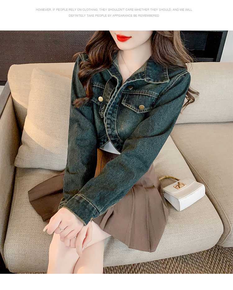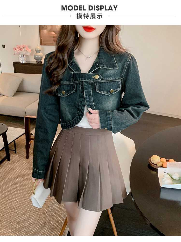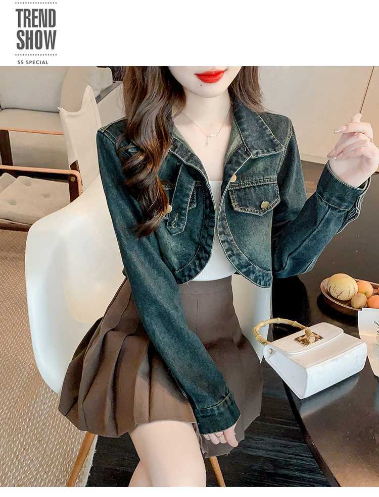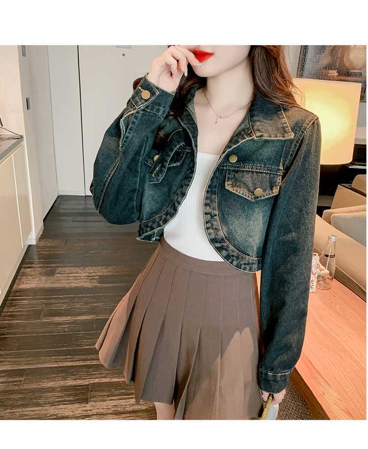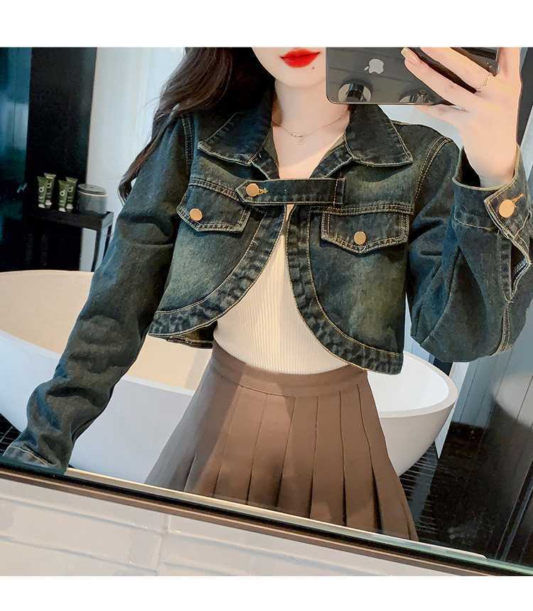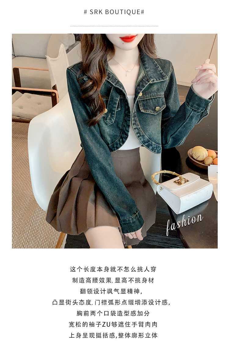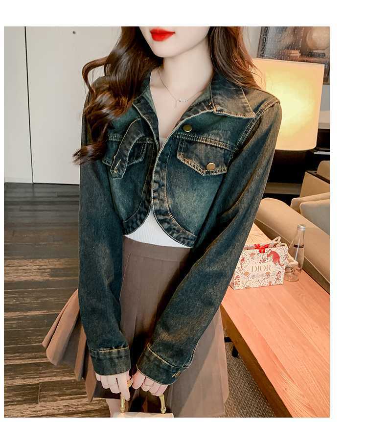 Real shot 2024 Denim mujer primavera y otoño nuevo desgaste todo-fósforo estilo extranjero espalda Denim abrigo
