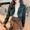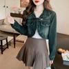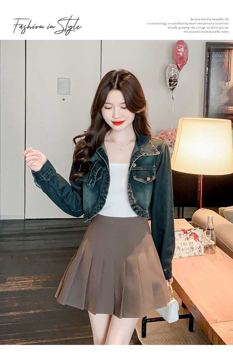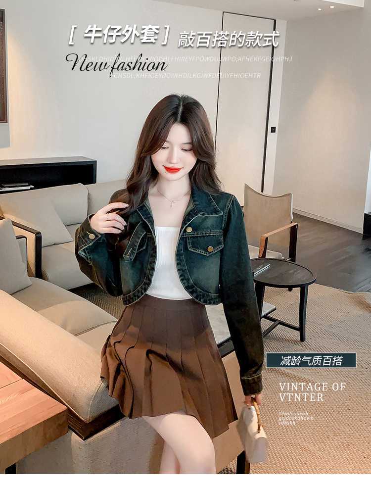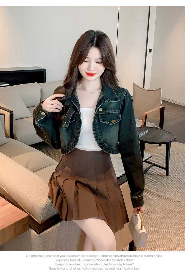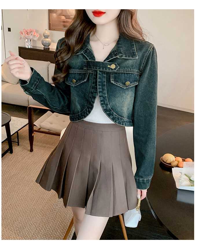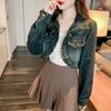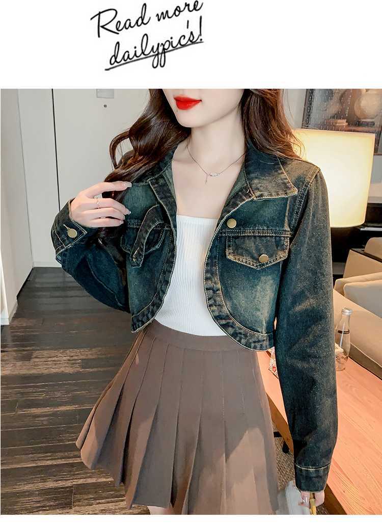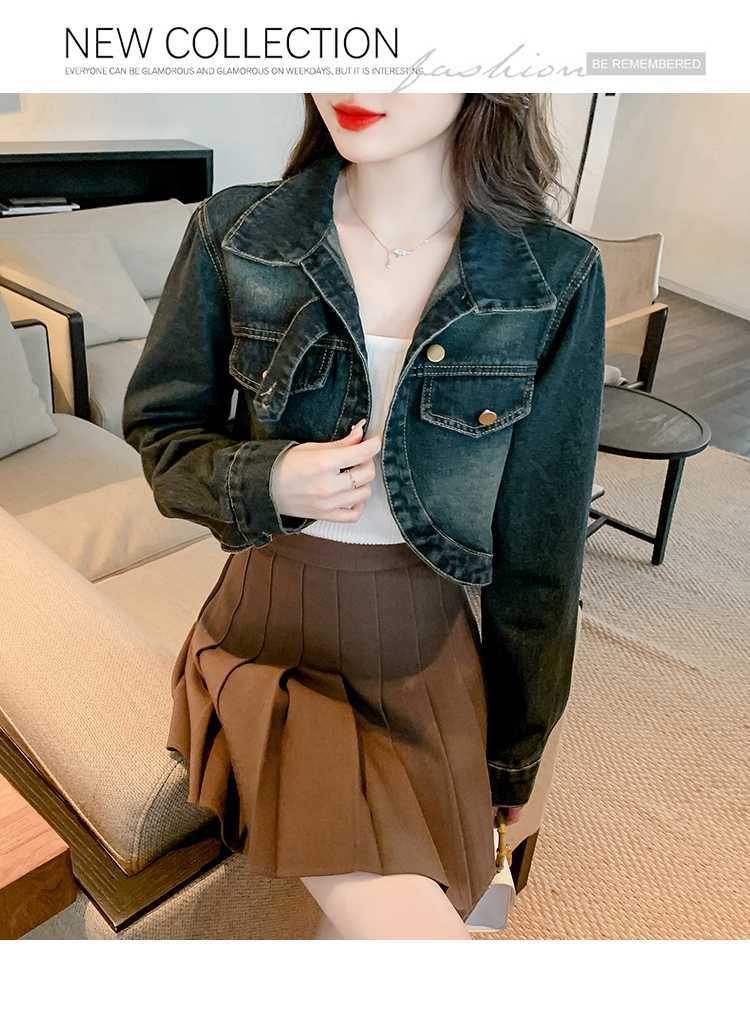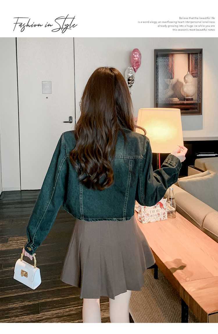Real shot 2024 Denim mujer primavera y otoño nuevo desgaste todo-fósforo estilo extranjero espalda Denim abrigo