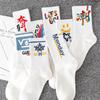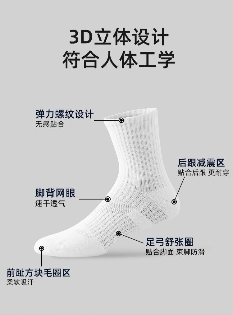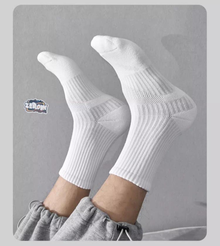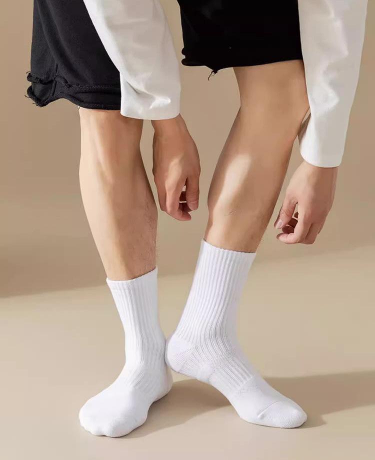 Calcetines deportivos de tubo medio en blanco y negro de color liso para primavera y otoño para hombres y mujeres, calcetines para correr con parte inferior de toalla, calcetines para pies, calcetines de tubo largo.