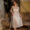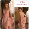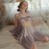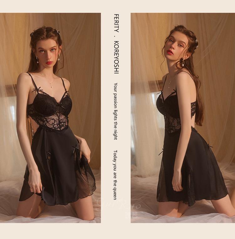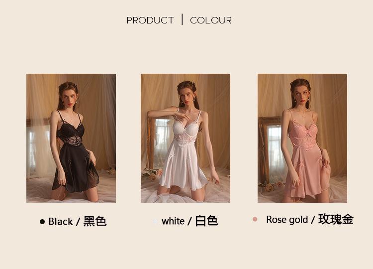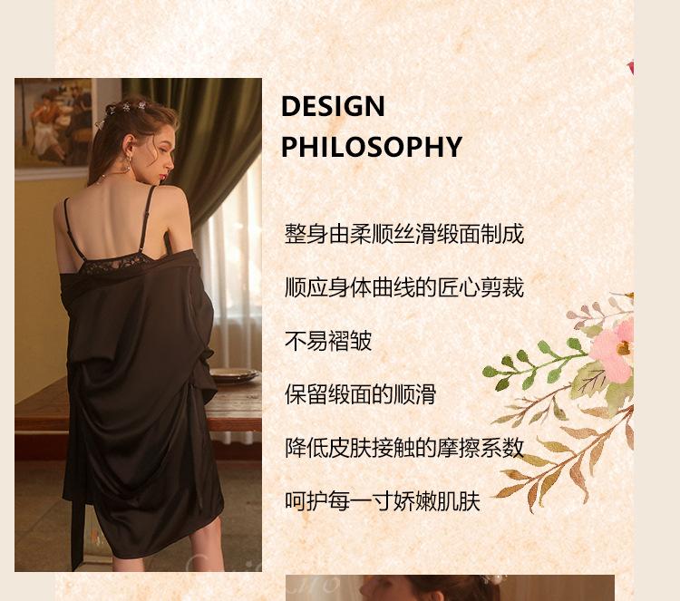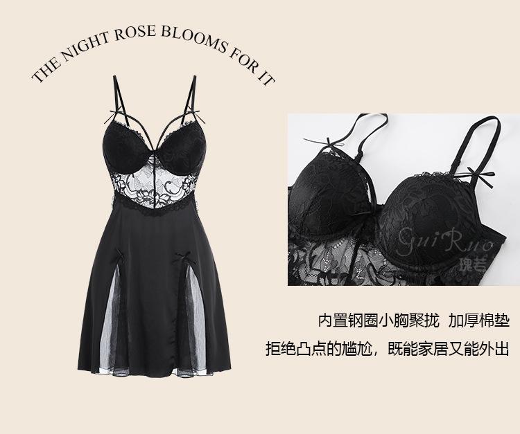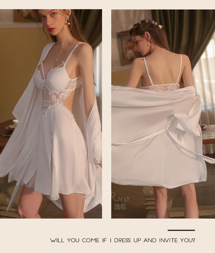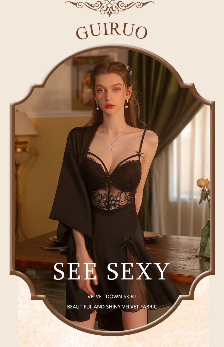 Guiruo Hilo de Satén Hilado y Almohadilla para el Pecho Escote Bajo Tentación Espalda Descubierta Bata de Noche con Tirantes Ropa de Casa para Mujer traje 2668