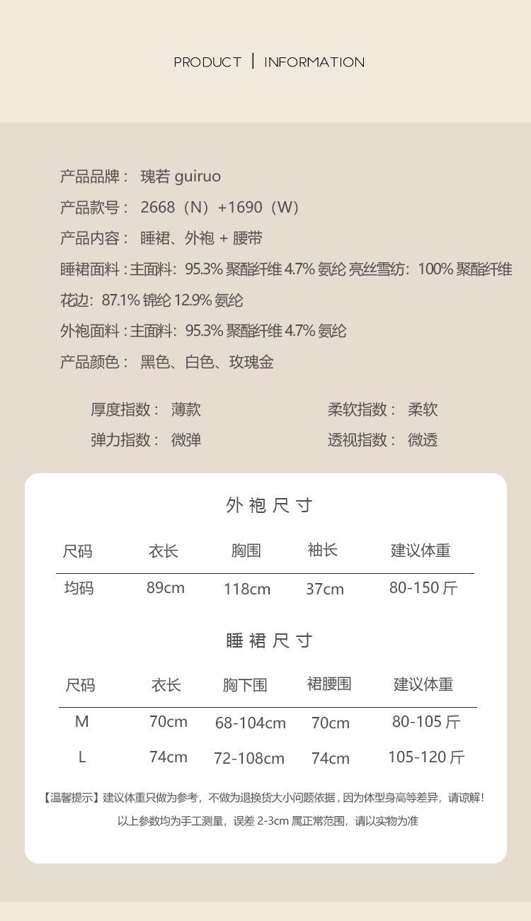 White (nightgown), 1690 white (robe + belt), Rose gold (nightgown), 1690 rose gold (robe + belt)