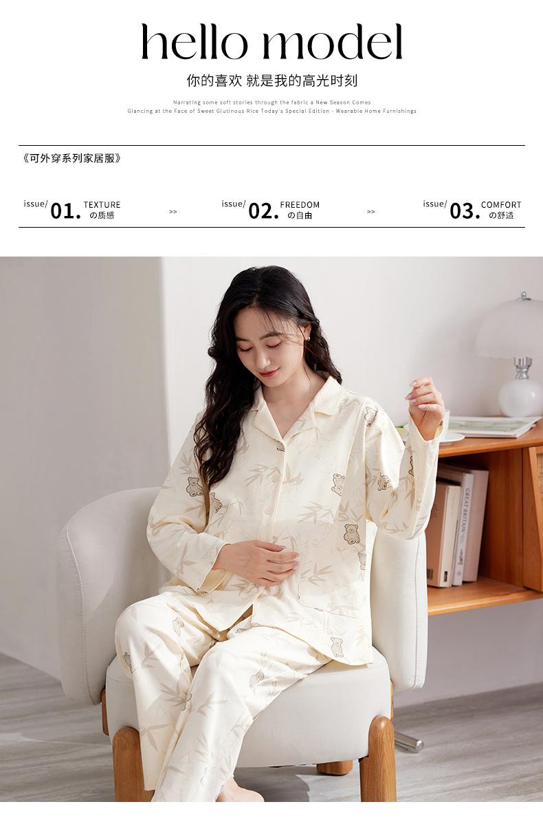 Pijama para Mujeres Embarazadas Xiyue Primavera y Otoño Manga Larga Imitación Algodón Ropa Dulce para el Hogar Cárdigan para Mujeres Embarazadas Lactancia Postparto Ropa Maternal