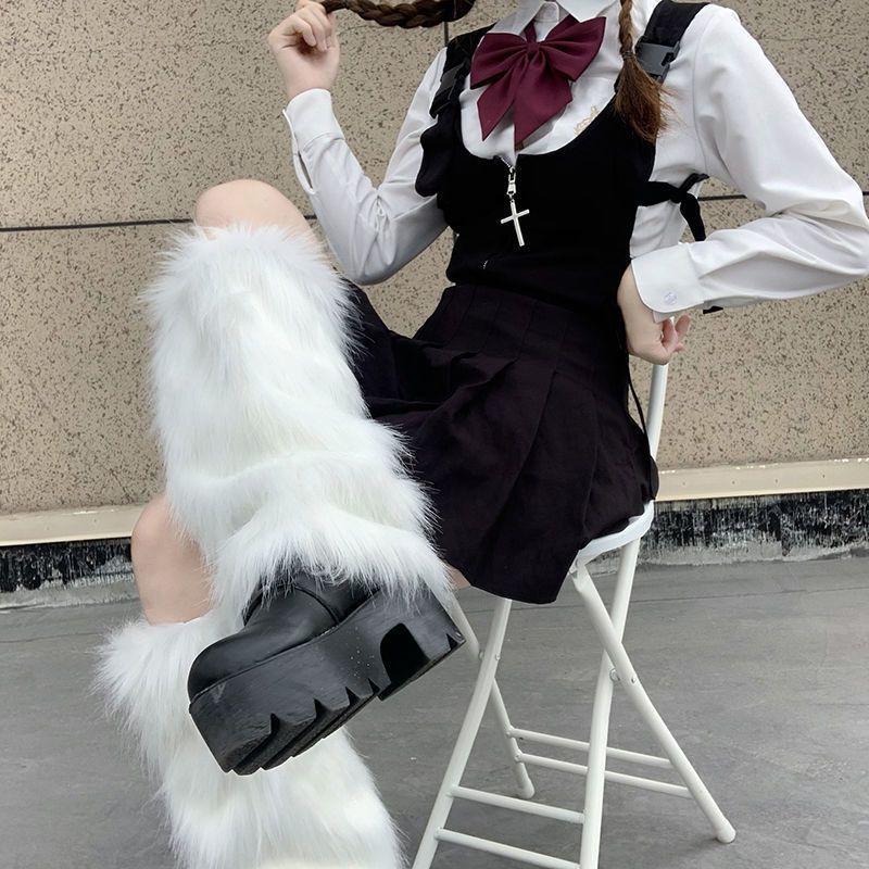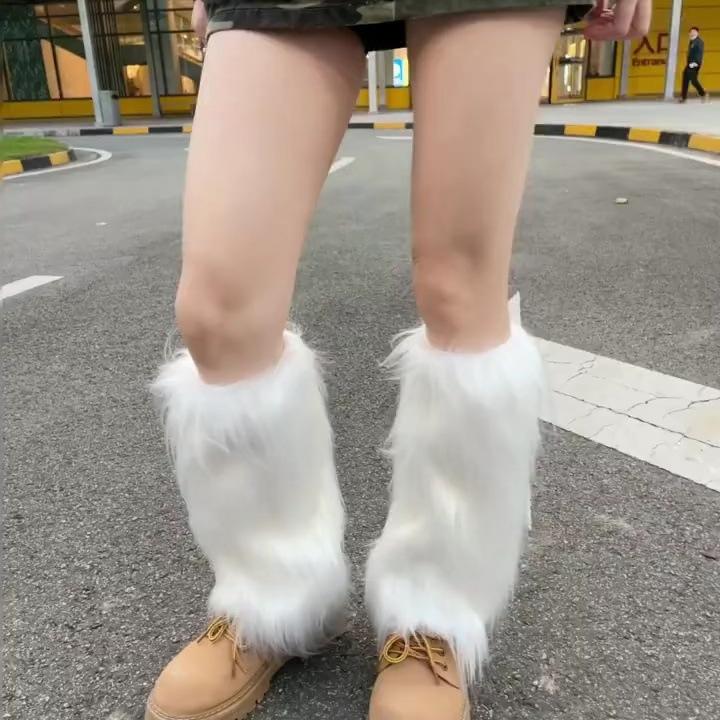 Calcetines Mao Mao para mujer invierno felpa cálidos calcetines de felpa para chica caliente blancos cubre pantorrilla forro polar peludos calentadores de pierna cubre pies
